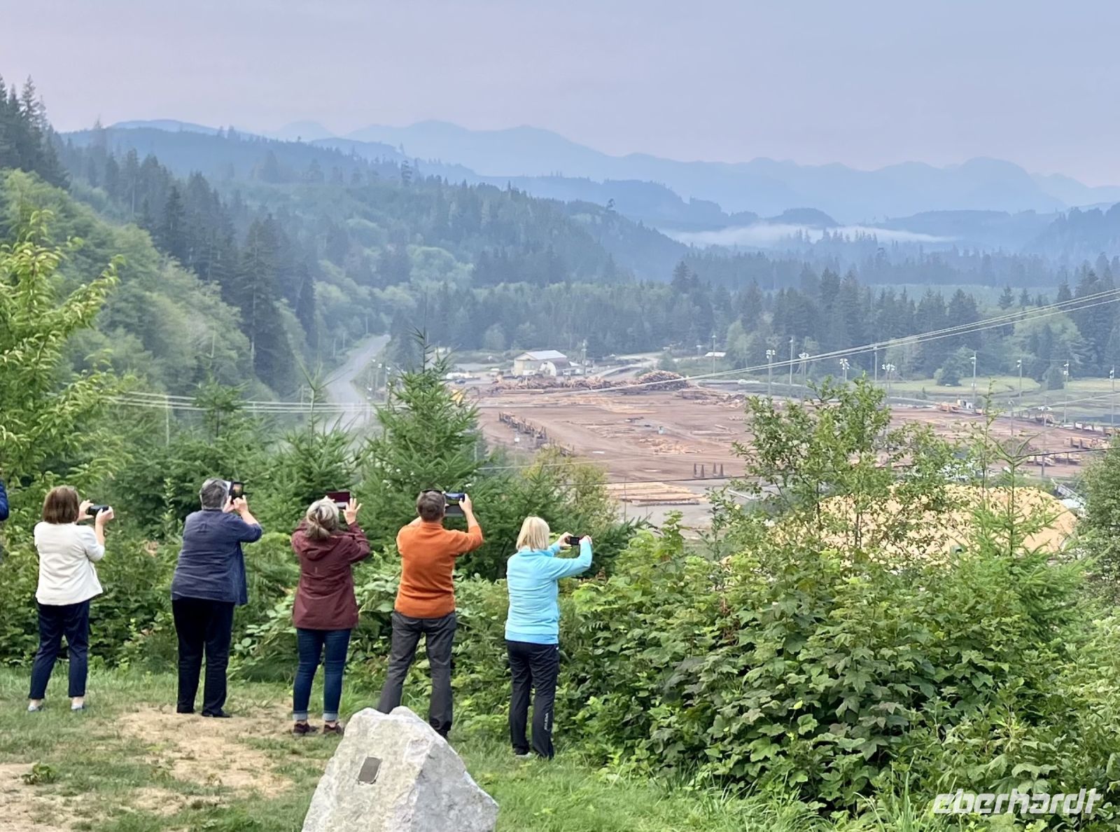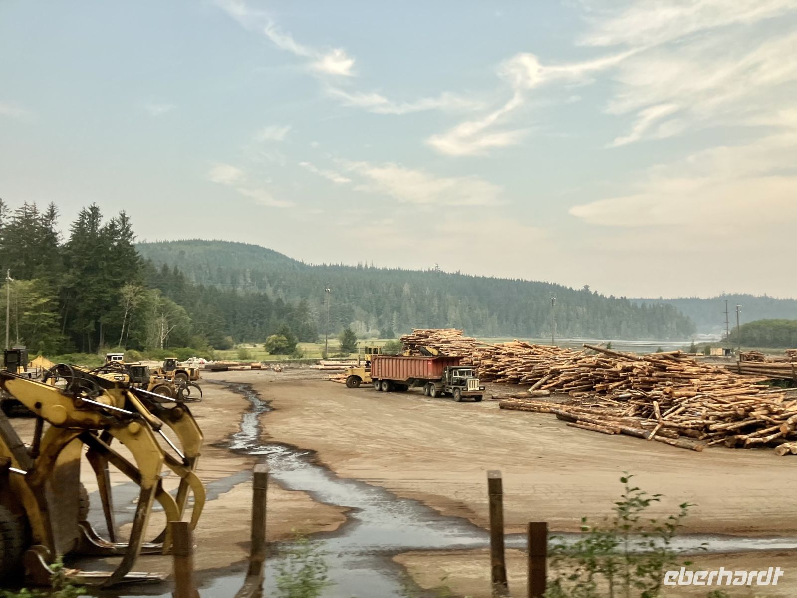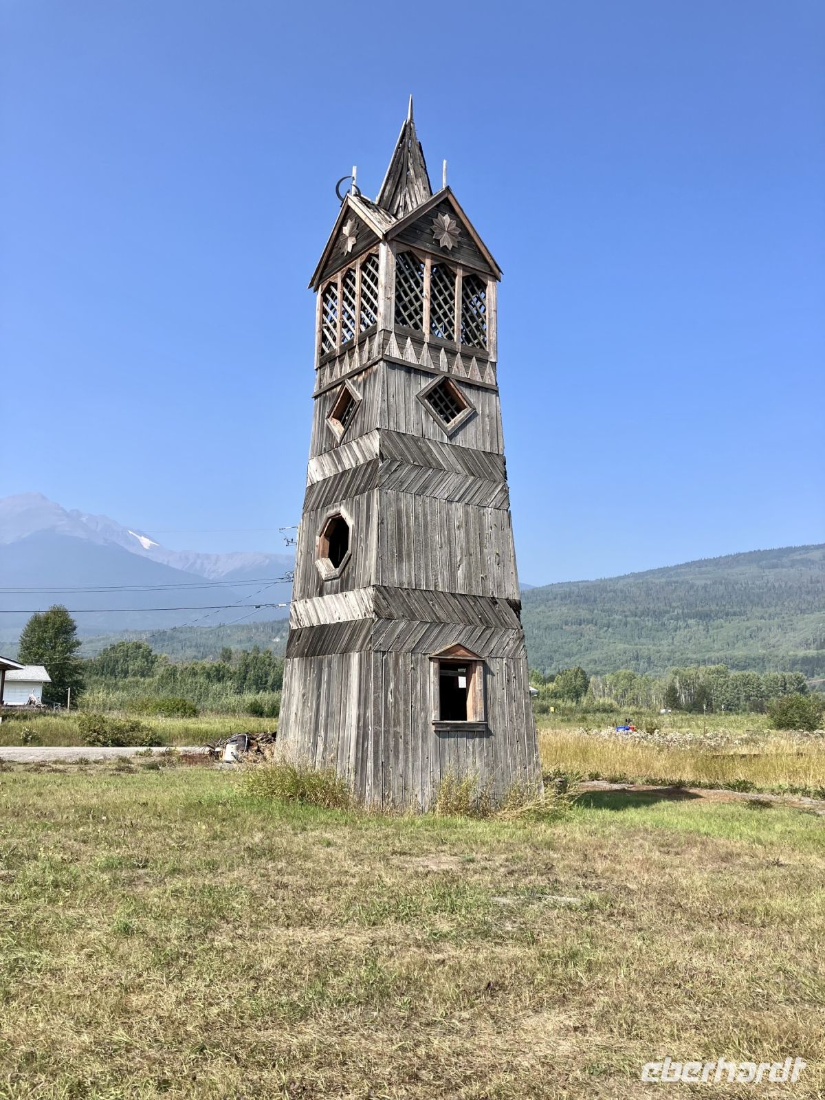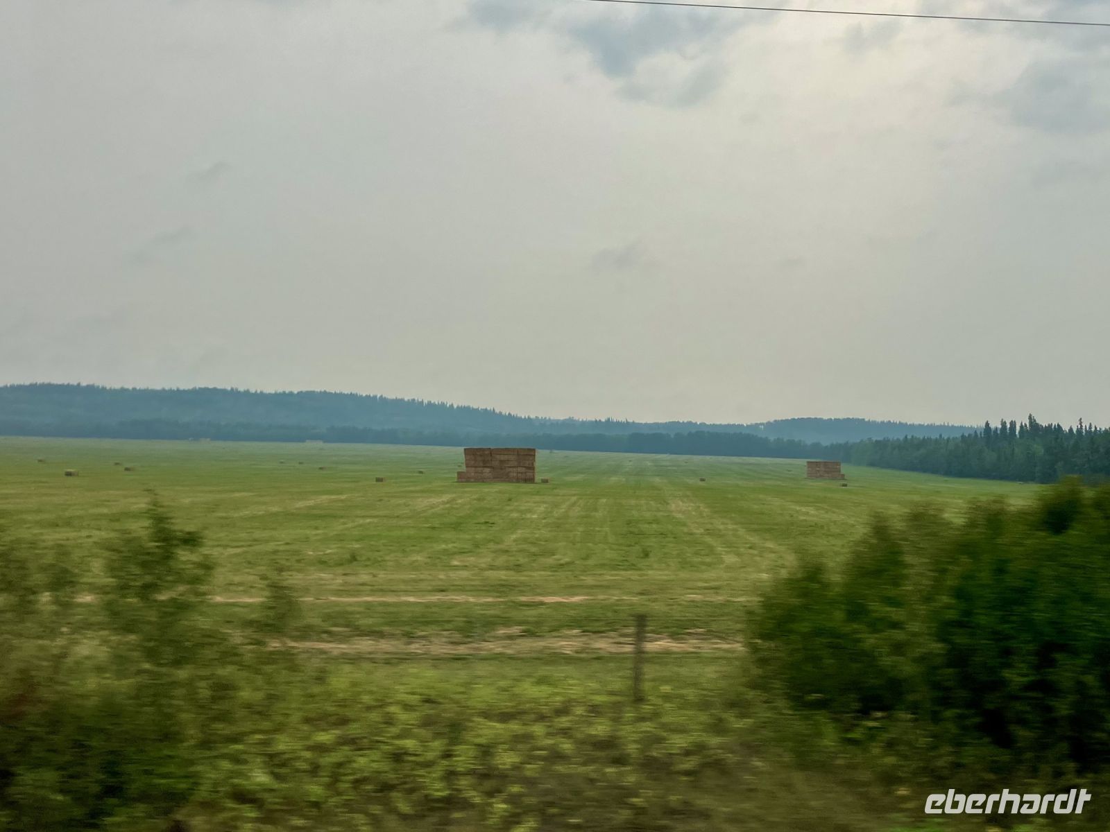 Heute ist unser Pioniertag und wir fahren nach Fort St James. Auf der Reise dorthin erfahren wir viele Geschichten ueber verschiedene kanadische Pioniere, die Polizei und die Forstwirtschaft. Schoen ist der grosse Norden mit seinem weiten Himmel. Fort St James ist eine Pelzhandelsstelle der Hudson Bay Company und nun ein Freilichtmuseum. Es ist aeusserst interessant an dem schoenen Stuart Lake gelegen. Ehe wir die verschiedenen Haeuser dieses Forts anschauen, machen wir lauthals am “weltbekannten” Haehnchen-Rennen mit. Viele unter uns gewinnen auch bei der Wette und ein schoener Knopf mit Huhn ist nun unser Markenzeichen. Nun aber zum Museum-Teil dieses Aufenthaltes. Das Hudson Bay Lagerhaus strahlt eine wunderbare Ruhe aus die wir einfach geniessen. Vieles lernen wir hier ueber die Trapper und ihre Gepflogenheiten, die Haendler mit ihren Tauschgeschaeften, die Fort Managers und ihre Einsamkeit fernab ihrer Heimat und die Ersten Nationen dieser Gegend. Auch das Maennerhaus mit seinen Geschichten versezt uns in die schwierige Zeit der damaligen Trapper und im Handelshaus sehen wir die Gueter die man hier einkaufen konnte gegen das “Bibergeld”. Wir bleiben auch lange da und schiessen viele Bilder. Zu Mittag hat Elisabeth uns eine lokale Spezialitaet bestellt. Es gibt Suppe und danach Bannock mit Schinken und Kaese dazu ein super kuehles und feines, von Eberhardt offeriertes Bierchen. Essen koennen wir draussen mit schoener Sicht auf den Stewart Lake. Was fuer ein schoener und gelungener Ausflug. Eine lange Strecke bis nach Smithers erwartet uns jedoch, also muessen wir nun aufbrechen. Auf der Highway no 16 fahren wir weiter in Richtung Westen an wunderschoenen Seen vorbei. Sie liegen einsam in den endlosen Waelder versteckt, genau wie es uns versprochen wurde. Doerfer die knappe 200 Personen zaehlen sehen wir. Wir doesen ein bisschen vor uns hin und schauen gleichzeitig einen Baeren-Film. So treffen wir problemlos 3 einhalb Stunden spaeter in Huston ein. Nein, nicht Houston, Texas. Hier halten wir kurz an, da wir ins Info Centre gehen- und den preparierten Grizzly sehen moechten. Nun dauert es nicht mehr lange bis nach Smithers. Wir lernen unterdessen, wie man einer hausgemachten Fliege das fliegen lehrt und wie man damit Fische fangen kann. Einmal in Smithers gibt es eine kurze Stadtrundfahrt ehe wir in unsere Lodge einchecken. Nun kaufen wir noch unser morgiges Picknick ein und kehren dann wieder zu unserem Hotel zurueck zum Abendbrot. Das Hotel ist schoen, das Restaurant auch und die Bar ist mit ihren vielen Fernseher und Einheimischen sehr autentisch. Wir aber haben einen eigenen Raum zum Essen, er ist nun echt nicht schoen. I am so sorry ! Wir sind alle recht muede nach dem langen Tag und freuen uns auf die gute Nacht mit frischer Luft ohne Rauchgeschmack. Nur gut, dass wir den Norden der Provinz Britsch Columbiens bereisen. Denn wir sind von den vielen Waldbraenden bislang verschont geblieben. In der Nacht regnet es wieder und Blitze erleuchten unsere Zimmer. Der Donner trommelt uns danach wieder in den Schlaf.