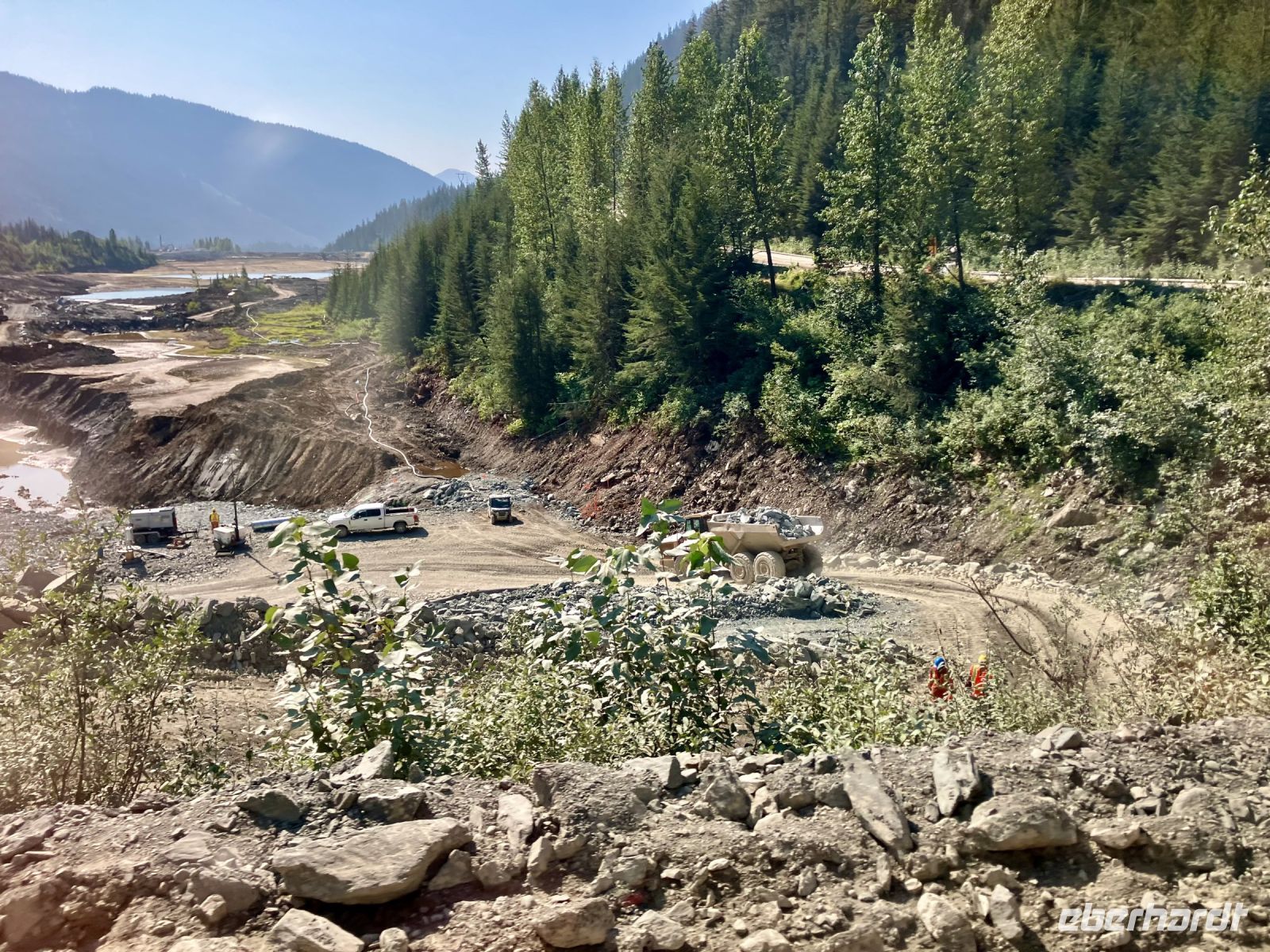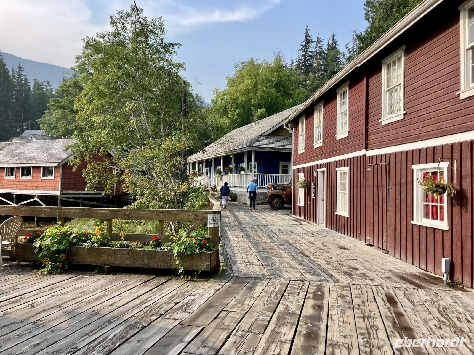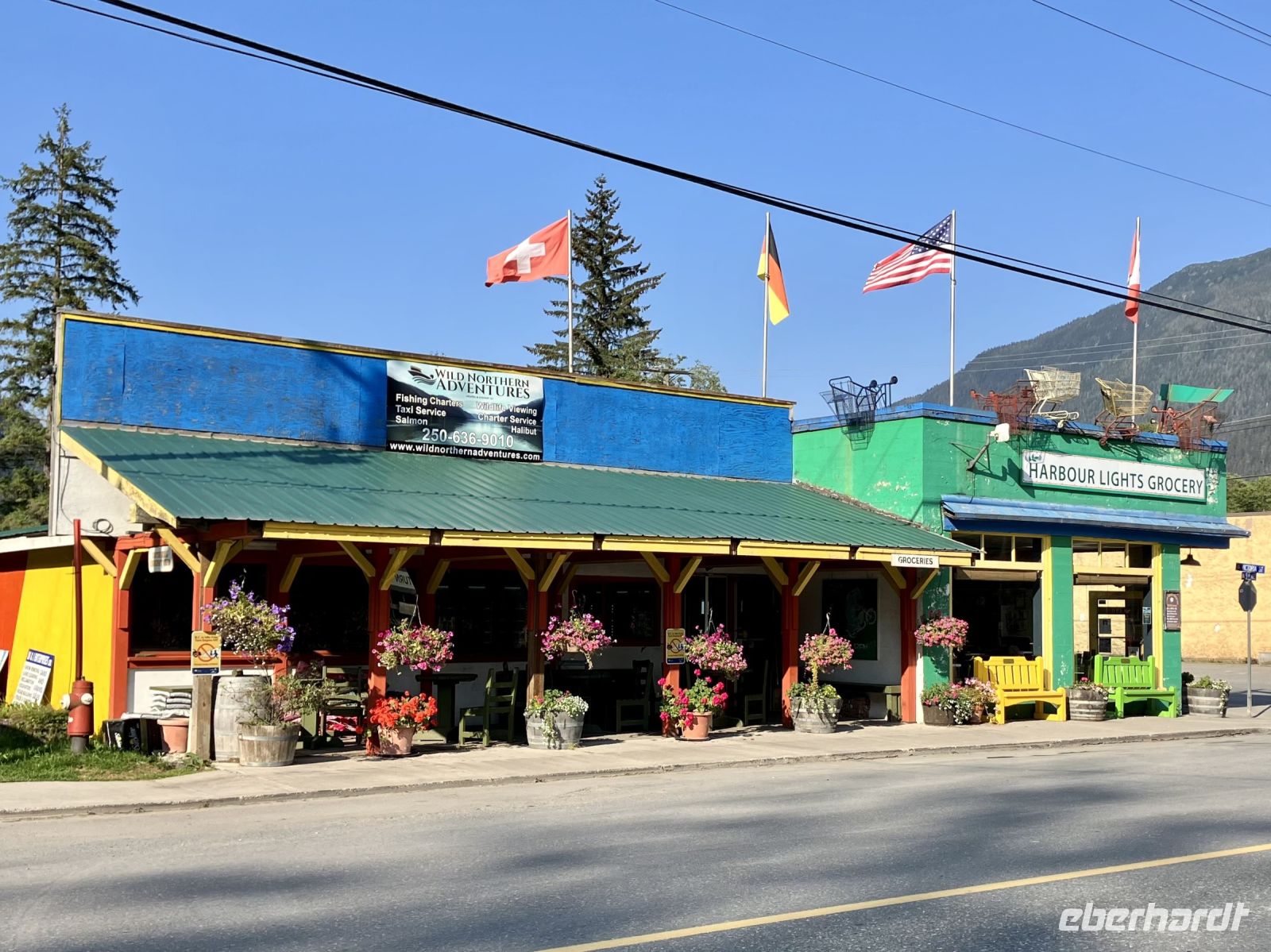 Die Lachskontrolle wird natuerlich festgehalten. Bei einem Fischfang sind oft gleich 3-5 Lachse auf einmal im Netz, was fuer ein Glueck. Aber nicht alle sind “richtige” Lachse, die meisten sind viel zu klein da es sich um Jacks handelt. Das sind sozusagen die Vorreiter der grossen Lachsschule. Alle 10 Minuten machen die Fischer der Ersten Nationen Pause in einem extra dafuer aufgestellten Zelt Pause. Nach einer 1/2 Stunede Aufregung, sind wir nun wieder im Bus und sprechen ueber die ererbte Fischrechte, die Gepflogenheiten und Sitten der einheimischen Bevoelkerung. Bald verlassen wir den tobenden Bulkley denn wir wollen nach Ksan um die Geschichte der Giksan-Sippe kennenzulernen. Ksan ist ein Indianer Museums Dorf und wir duerfen in die verschiedenen Lang-Haeuser hinein wo wir ueber das Leben und die Feste der Giksan aufgeklaert werden. Nun machen wir noch einen kleinen Abstecher nach Old Hazelton wo nun fast keine Leute mehr wohnen. Diese fast- Geisterstadt schaut aus, als wuerde gerade ein Film gedreht, der echte Wilde Westen. Unser Picknick nehmen wir am Skeena Fluss ein. Die Leute der Hudsons Bay Company die im 1840 Old Hazelton gegruendet haben, mussten alle ueber den tobenden Bulkley Fluss mittels einer Haengebruecke aus Zedernholz. Nun gibt es eine sehr hohe Stahlbruecke mit Durchsicht, ueber die einige mutige unter uns zu Fuss hinuebergehen. Auf dem Weg nach Stewart schlafen wir alle wie die Herrgoettchen. So kommen wir in Stewart an, checken ein und unternehmen gleich einen Spaziergang durchs Dorf und weiter auf dem Holzweg bis zum Meer. Feine Linguini mit Garnelen und Jakobsmuscheln gibt es heute als Abendbrot. Wieder neigt sich ein ereignisreicher Tag dem Ende zu und voller Erwartung auf den naechsten Tag verfallen wir dem Tiefschlaf..