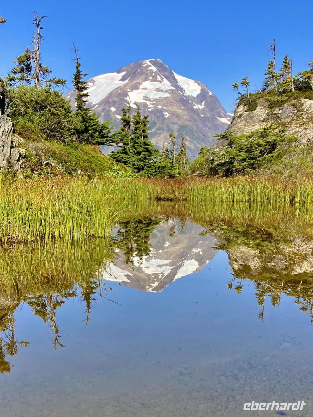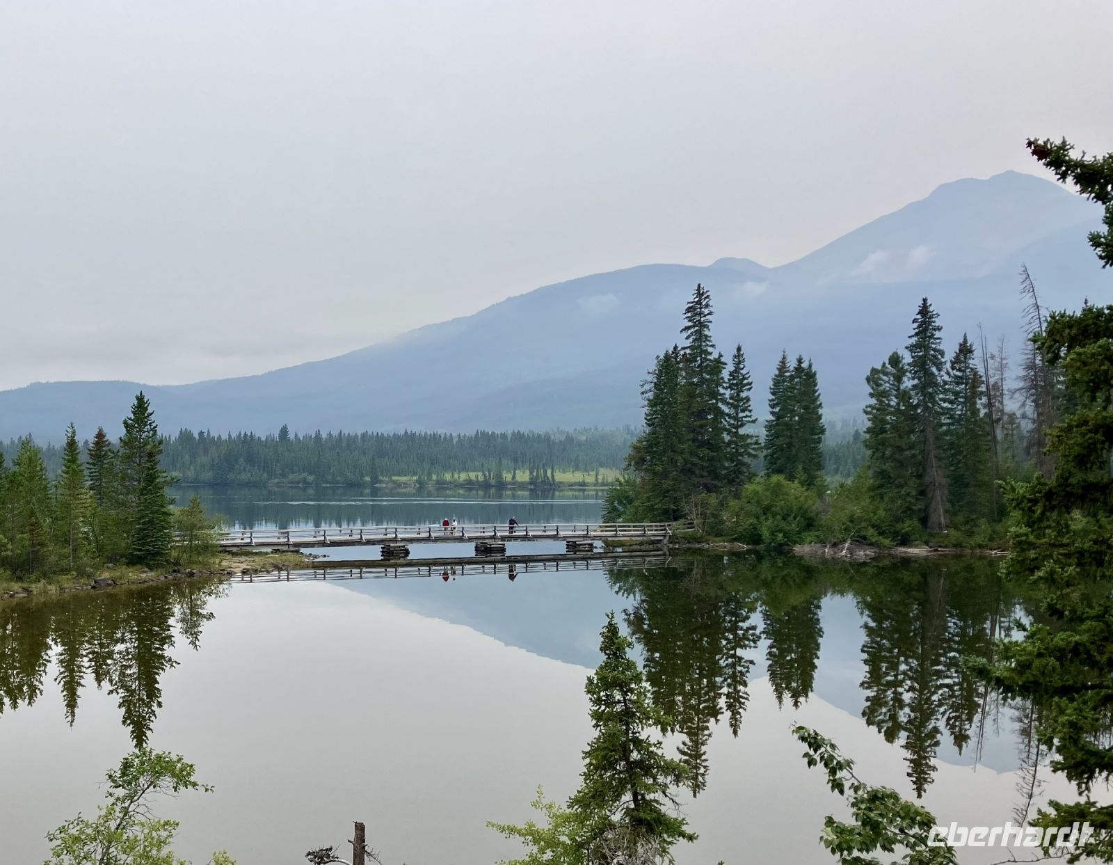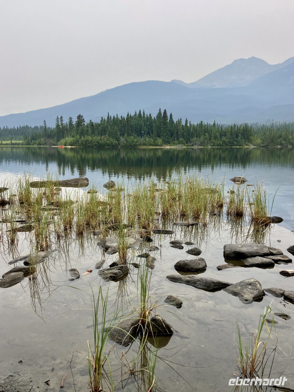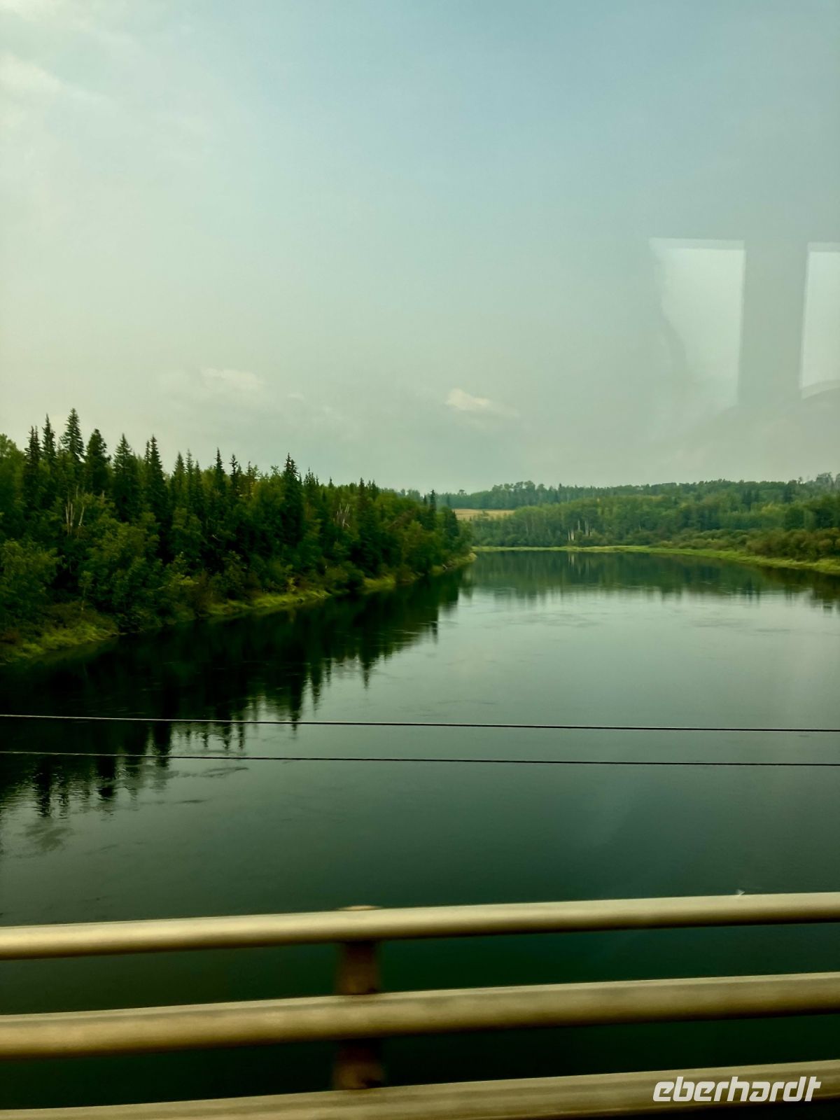 Ein wunderbarer Tag bricht an, die Sonne lacht und die Nacht war gut. Es hat sogar geregnet sodass heute die Rauchschwaden lockerer sind. Schoen ist es abseits von Verkehr, Internet und Telefone aufzuwachen. Es ist erst 7 Uhr in der Frueh und die kurzen Hosen lachen uns trotzdem schon aus dem Koffer an, denn die Wettervorhersage meint, es wuerde heute schoen warm. Auf dem Weg nach Jasper sehen wir leider weder den gestrigen Wapiti noch einen Baeren. Es ist einfach zu warm und da halten sich die Tiere nicht in den unteren Regionen auf. So sorry ! Aber da wir die Suche nicht aufgeben wollen, besuchen wir vorerst Patricia Lake mit der schoenen Spiegelung und dem tollen Pyramid Mountain im Hintergrund. Die Habakuk Geschichte mit der Werft laesst uns kopfschuettelnd staunen. Nun gehts weiter zu Pyramid Lake oberhalb Jasper. Da spazieren wir auch um diese kleine Insel die mittels einer Bruecke mit dem Festland verbunden ist. Die Aussicht ist gut, und der gute Pyramid Mountain schaut leicht blau gefaerbt hinter dem glitzernden See heraus. Ein lustiges Gruppenfoto schiessen wir hier um, und in, einem umgedrehten Wurzelstock. Es ist ganz privat und nicht in der Bildergalerie, kommts einfach naechstes mal auf die Reise mit, dann seht Ihr wie toll es hier ist. Zurueck in Jasper machen wir einen kleinen notwendigen Halt ehe wir unsere heutige Reise auf der Gelbkopfstrasse fortsetzen. Auf der Yellow Head Highway fahren wir nun gemuetlich dahin bis wir nicht die Grenze zwischen Alberta und Britisch Columbien ueberschreiten und die Uhr umstellen. Der heutige Tag hat 25 Stunden, also haben wir 1 Stunde mehr Spielzeit. Judihui. Mittagessen tun wir bei Mount Robson bei strahlendem Sonnenschein. Mount Robson ist heute ganz wolkenfrei, was nur sehr selten vor kommt. Also knipsen wir Fotos wie wild. Nun muessen wir aber noch viele Km fahren bis nach Prince George. Aber 8 Km nach der Mittagspause halten wir, steigen aus, gehen einen Pfad im Wald hinunter zum Fraser Fluss und…..sehen einen wunderschoenen Wasserfall indem heute jedoch keine Lachse hochspringen. Die ersten Lachse sind anscheinend bereits gesichtet worden, sie nehmen hier ihre letzte Huerde, ehe sie endlich laichen und sterben koennen. Die Wasserfaelle sind sehr breit aber auch hoch mit sprudelndem Wasser. Wie das die Lachse schaffen koennen ist uns ein Raetsel auch sind wir hier rund 1300 Km vom Meer entfernt ! Zurueck im Bus gibt es nun die Geschichte ueber die Lachse und wir wissen nun, dass wir eine Wilde Socke (wild sockey) mit nach Hause nehmen werden. Ein Nickerchen leitet uns zur Kaffeepause in McBride. Beim Bahnhof hat Donna ihr Coffeehouse mit Capuccino, Expresso, Lattes und normalem Kaffee, dazu selbstgemachte Suesspeisen. Bald muessen wir jedoch wieder weiterfahren und wir sprechen ueber die vielen Allgemeinfragen. Waerend wir gerade ueber die Pensionskasse Kanadas sprechen bremst unser gute Tracy ploetzlich und kommt auf der Autobahn zum Stillstand. Wir schauen, er laechelt und meint schmunzelnd : there is a bear ! Ohne zu zoegern faehrt er nun rueckwaerts bis wir nicht alle den wunderschoenen Baer im Grass fressend sehen. Sein glaenzendes Fell verraert sein junges Alter aber ausgewachsen ist er. Er laesst sich ueberhaupt nicht stoeren und frisst genuesslich weiter an den gelben Bluemchen und den zarten Graeser. Wir bleiben eine Weile bei ihm und schauen ihm zu. Viele Antworten auf Allgemeinfragen spaeter, kommen wir bei einem kleinen Park mit Urbaeumen vorbei. Das laedt auf eine einstuendige Wanderung ein. Wir staunen ueber die Riesen die man hier hat stehen lassen. Die Zedern sind gigantisch und das Unterholz tiefgruen, kleine Baeche veredeln das perfekte Bild. Endlich, am Spaetnachmittag, kommen wir in Prince George, auch liebevoll PG gnannt (gleiche Abkuerzung wie fuer Pijama!) an. So koennen wir auch schon gleich in unser schoenes Coast Hotel einchecken und ein Weilchen spaeter das feine Abendessen im Privatsaal geniessen. Gute Nacht PG