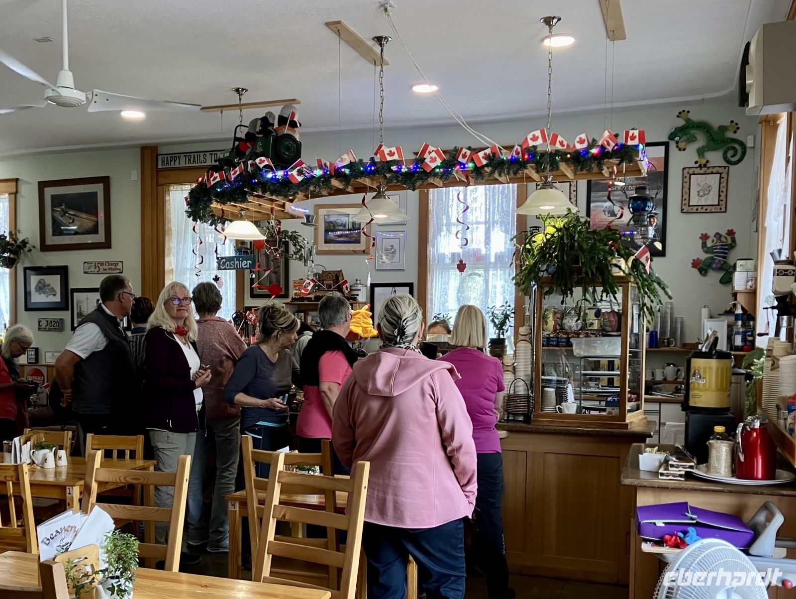 Wir haben einen Geburtstag zu feiern. Kirstin ist die Glueckliche und wir helfen ihr gerne beim Ueberschreiten dieser Huerde mittels ihrem kanadischer Whisky. Wir sind eine lustige Gruppe, lachen viel und amuesieren uns koestlich. Spaeter gehen wir Abendessen in das Canoe Cafe und lassen so den Abend ausklingen. Noch ein Nickerchen und wir gelangen nach Port Hardy. Nun fahren wir in das nahegelegene Hotel und verschwinden lautlos in unsere Zimmer. WOW die sind echt schoen. Aber die Augenlider wollen nun von innen betrachtet werden. Es war ein sehr gemuetlicher Tag und die Nacht ist etwas kurz aber gut.