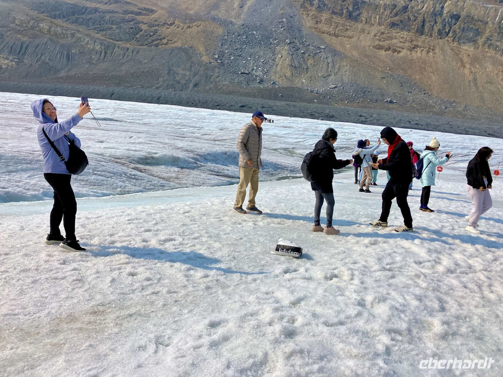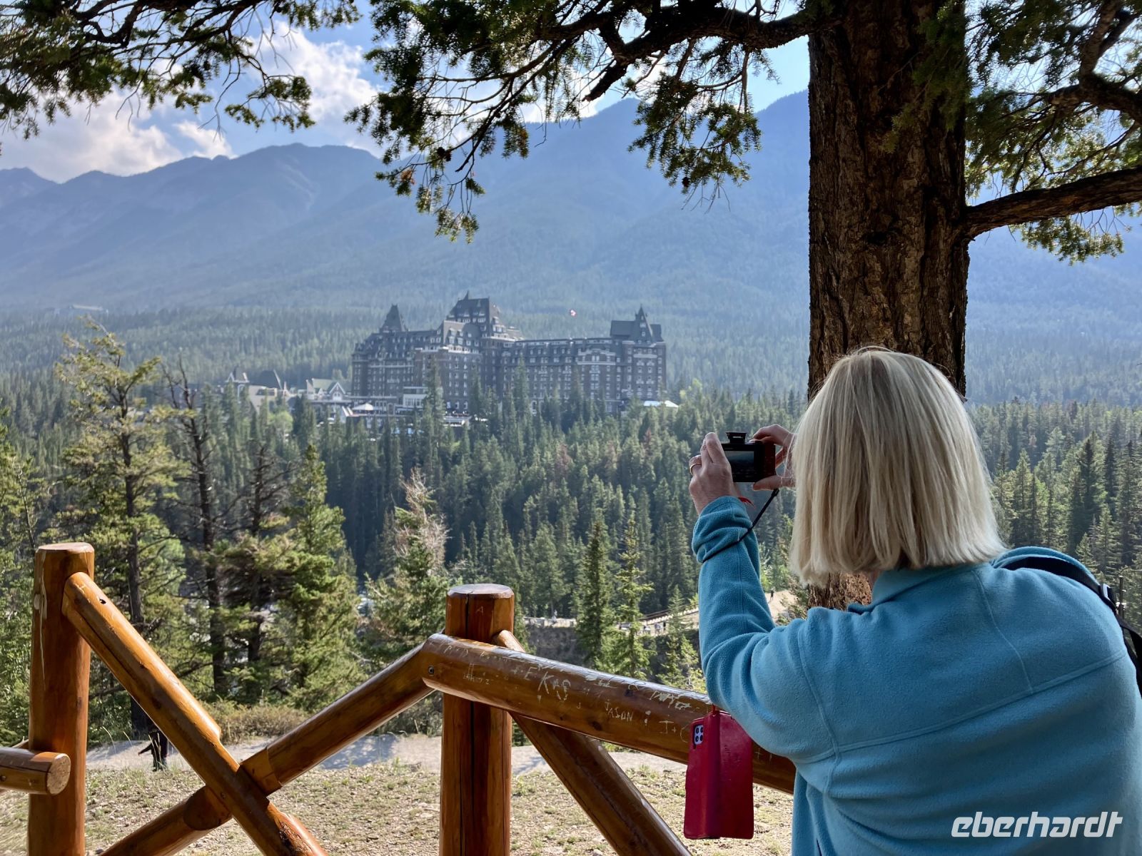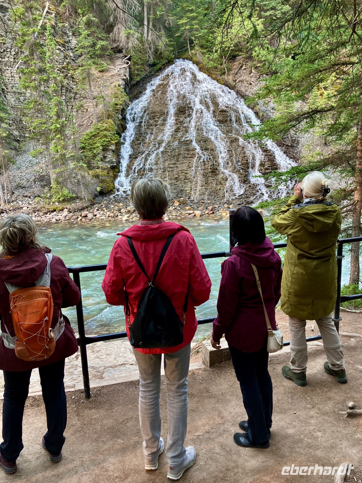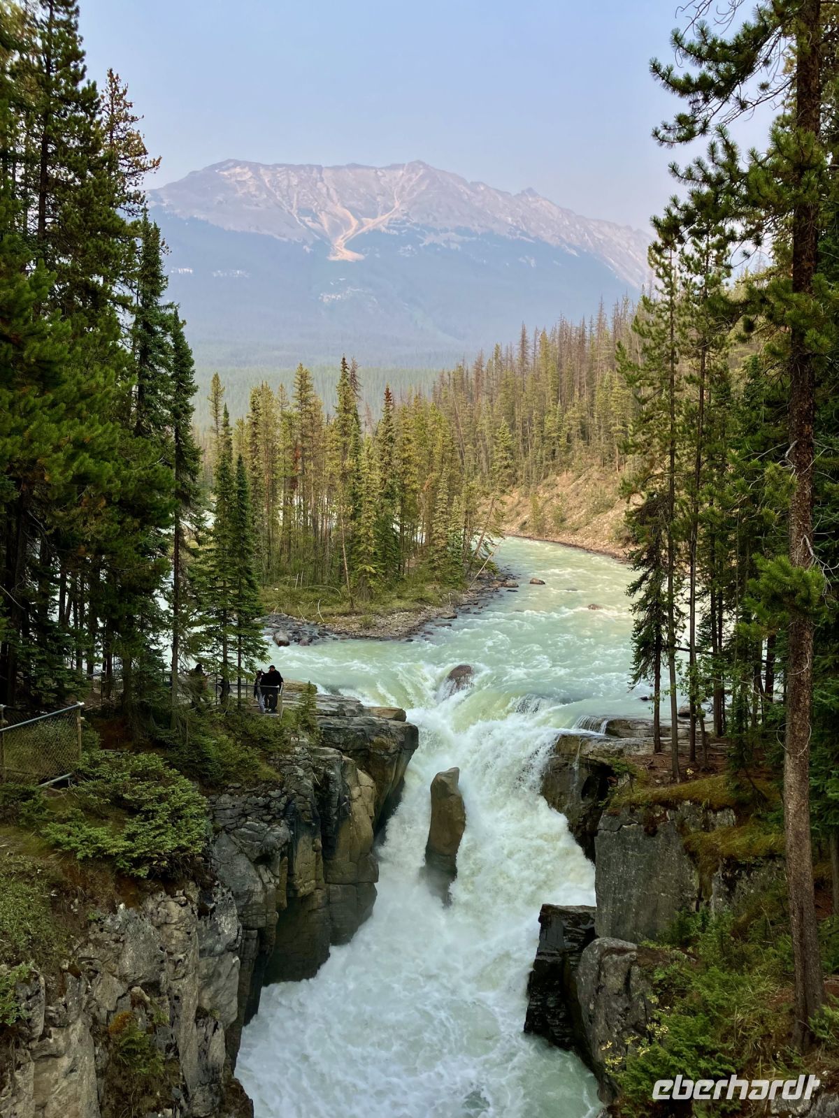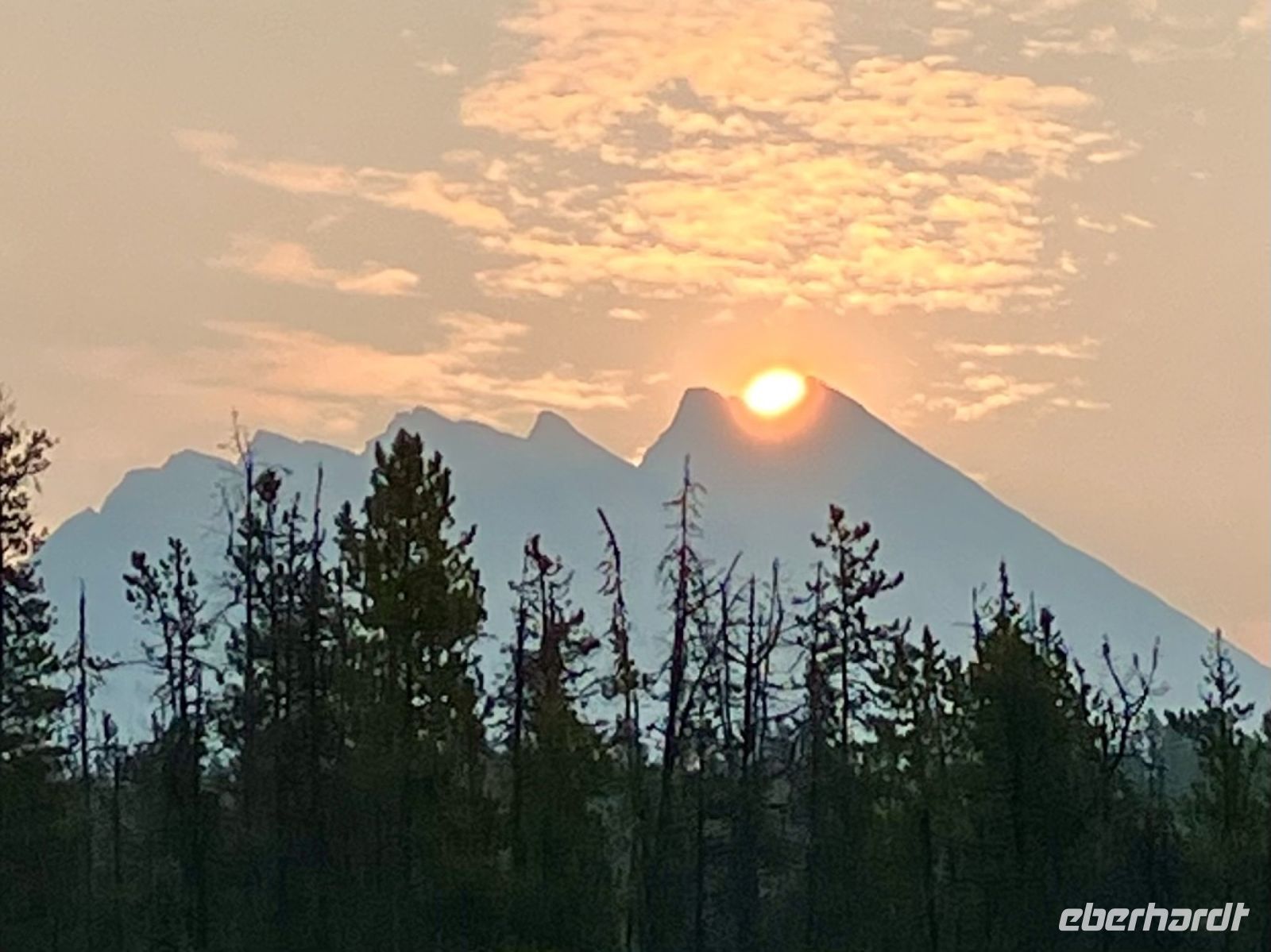 Vorhang auf, strecken, gaehnen und schauen. Ach wie schoen in Banff aufwachen zu duerfen und das Wetter meint es auch gut mit uns. Die Sonne lacht hinter den Rauchschwaden die noch immer von den grossen Waldbraenden in Britisch Columbien rueberkommen. Fenster auf….und gleich wieder schliesen, es ist ganz schoen kalt, 4 Grad, also wird die Hose heute verlaengert. Die Berge sieht man in verschiedenen blautoenen, es schaut alles sehr romantisch aus und wir hoffen natuerlich, dass wir von weiteren Waldbraenden verschont bleiben. Der gute Jet lag haelt uns noch immer einige Stunden pro Nacht wach, aber wir lassen uns nichts anmerken. Niemand sieht die Augenringe der anderen ! Wir sind auf Urlaub und das ist schoen. Also ab, zu einer kleiner Wanderung in eine Klamm. Der Johnston Canyon ist sehr beliebt und wir wandern die kurze Strecke bis zum Jacuzzi der Indianer und wieder zurueck. Eindruecklich ist dieser Canyon und bezaubernd sein Wasserfall. Heute wollen wir aber noch auf die beruehmte Icefield Parkway, die Prachtstrasse der Rocky Mountains. Erster Halt ist beim Castle Mountain, denn den konnten wir ja gestern nicht in unseren Handys verewigen. Danach gehts gleich weiter zum Crawfoot Gletscher, herrlich wie dieser Gletscher glitzert. Der nahe gelegene Bow See ist heute etwas gekräuselt und viele Autos sind unten geparkt. Also bleiben wir oben stehen und spazieren runter zum See. Dem Ufer entlang gehend laufen die Kameras wieder heiss. Die Umgebung, die Berge, Gletscher, Waelder und die schmucke Num Te Jah Lodge sind sehr fotogen. Schaut in die Fotogalerie, es sind die mystischen Bilder. Nun noch schnell in die Num Te Jah Lodge um den Kaffee zu holen und weiter gehts mit Tracy. Naechster Stop ist 5 Min spaeter, beim Peto Lake. Der Dackelsee, wie er auch liebevoll genannt wird, ist tief im Tal gelegen und hat wohl die allerschoenste Farbe aller Gletscherseen. Heute ist er hell und milchig in ein zartes Aquamarin gehuellt. Vor dem rauchigen Himmel schaut er super aus. Nun faengt jedoch der Magen an zu knurren. Also fahren wir weiter. Auf dem grossen Waterfoul See (Seevoegel) sehen wir heute ganze 6 Entchen aber die Geschichte des grossen Abenteurer Alexander McKenzie’s fuehrt uns zur Mittagspause. Wir picknicken am North Saskatchewan River und geniessen die Ruhe. Nach einer guten halben Stunde packen wir`s wieder. Waehrend der Fahrt hinauf zum Athabasca Gletscher gibt es nun ein kurzes Nickerchen denn bald gehts weiter zu unserer Gletscherfahrt. Auch dies ist ein Spektakel, denn wir sitzen in einem Eisexplorer. Dies ist ein tolles Sondergefaehrt und es krazelt mit uns auf den Athabasca Gletscher, welcher Teil des Columbia Eisfeldes ist. Auf dem ewigen Eis angekommen, steigen wir auch aus. Das Wetter ist perfekt wenn auch noch immer etwas rauchig und das Eis ist so, dass man heute gut darauf gehen kann ohne auszurutschen. Wir haben auch sehr viel Zeit heute auf dem Eis so werden viele Fotos geschossen und viele mitgebrachte Flaeschchen mit dem Ewig-Jung Wasser des Gletschers gefuellt. Ob uns Tracy (unser Fahrer) auch wiedererkennen wird ? Aber natuerlich, er wartet bereits auf uns damit er uns sicher in die Sunwapta Lodge fahren kann. Ach wie schoen, die Sunwapta Lodge, ist abseits gelegen, mitten im Wald. Es ist urchig und richtig schoen hier. Nach dem Prosecco check-in haben wir noch Zeit um zum Wasserfall zu spazieren, ehe wir ins Restaurant gebeten werden. Das BBQ heute abend ist fantastisch und Heidis lustige Erklaerungen ueber die Tierwelt der Rocky Mountains runden diesen schoenen Tag ab. Keiner braucht da noch ein Schlaf-Liedchen