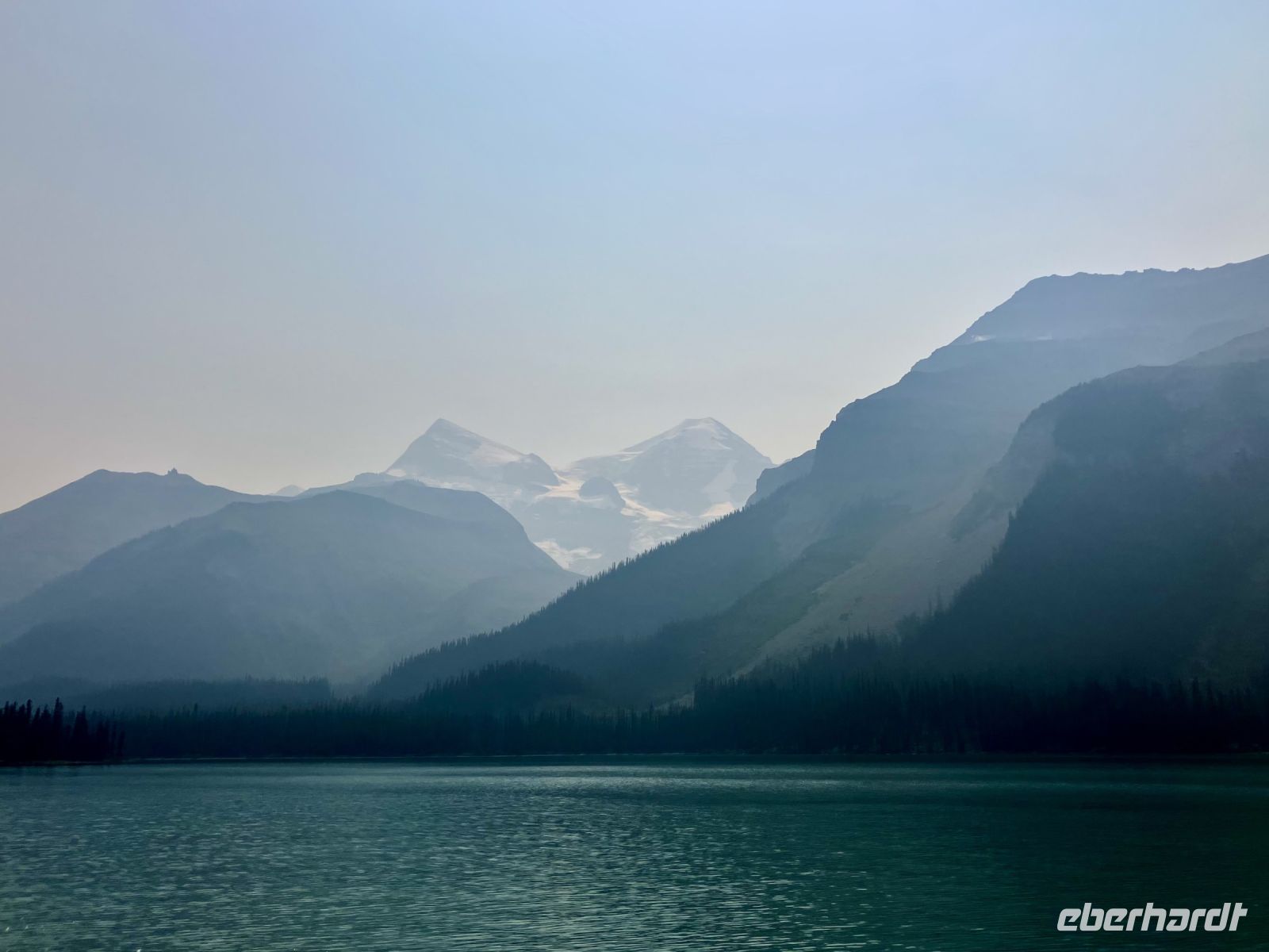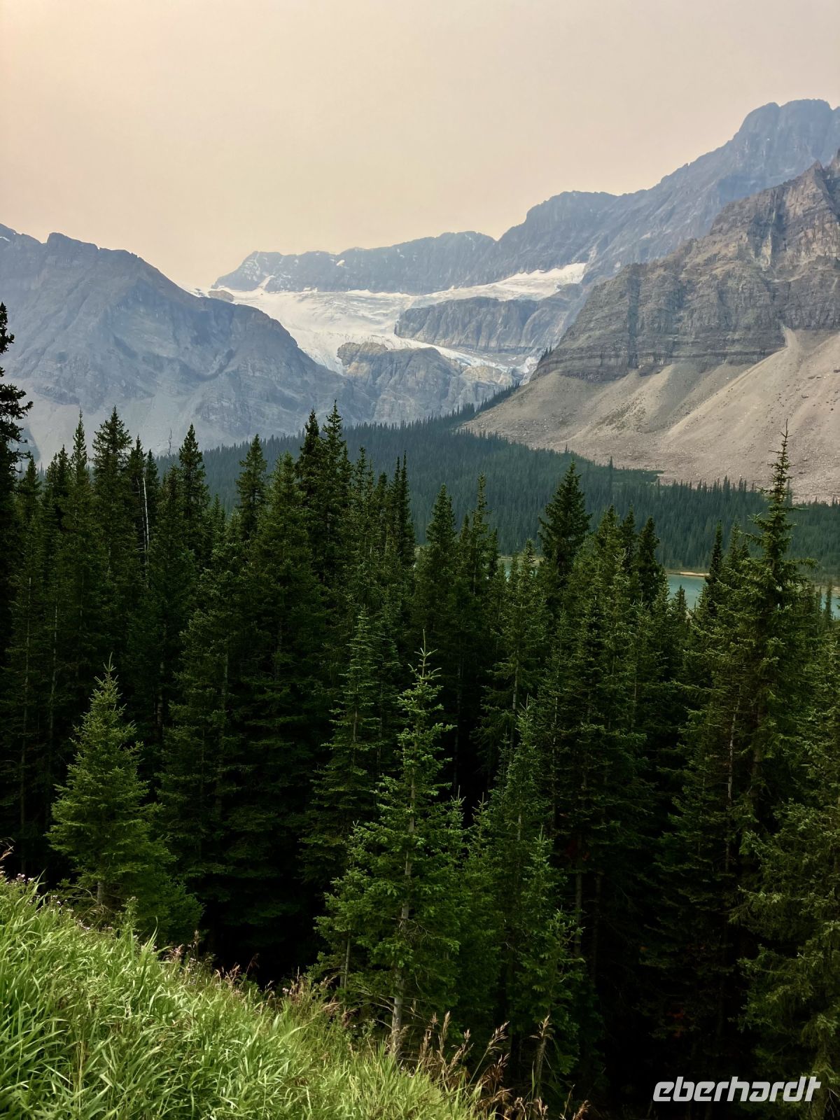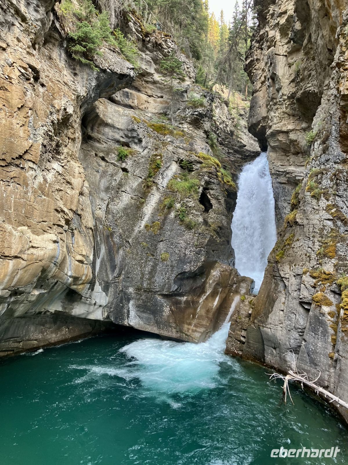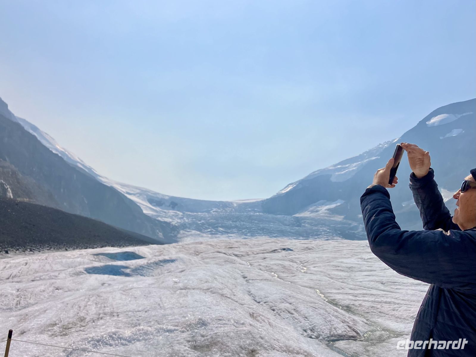 Vorhang auf, strecken, gaehnen und schauen. Ach wie schoen in Banff aufwachen zu duerfen und das Wetter meint es auch gut mit uns. Die Sonne lacht hinter den Rauchschwaden die noch immer von den grossen Waldbraenden in Britisch Columbien rueberkommen. Fenster auf….und gleich wieder schliesen, es ist ganz schoen kalt, 4 Grad, also wird die Hose heute verlaengert. Die Berge sieht man in verschiedenen blautoenen, es schaut alles sehr romantisch aus und wir hoffen natuerlich, dass wir von weiteren Waldbraenden verschont bleiben. Der gute Jet lag haelt uns noch immer einige Stunden pro Nacht wach, aber wir lassen uns nichts anmerken. Niemand sieht die Augenringe der anderen ! Wir sind auf Urlaub und das ist schoen. Also ab, zu einer kleiner Wanderung in eine Klamm. Der Johnston Canyon ist sehr beliebt und wir wandern die kurze Strecke bis zum Jacuzzi der Indianer und wieder zurueck. Eindruecklich ist dieser Canyon und bezaubernd sein Wasserfall. Heute wollen wir aber noch auf die beruehmte Icefield Parkway, die Prachtstrasse der Rocky Mountains. Erster Halt ist beim Castle Mountain, denn den konnten wir ja gestern nicht in unseren Handys verewigen. Danach gehts gleich weiter zum Crawfoot Gletscher, herrlich wie dieser Gletscher glitzert. Der nahe gelegene Bow See ist heute etwas gekräuselt und viele Autos sind unten geparkt. Also bleiben wir oben stehen und spazieren runter zum See. Dem Ufer entlang gehend laufen die Kameras wieder heiss. Die Umgebung, die Berge, Gletscher, Waelder und die schmucke Num Te Jah Lodge sind sehr fotogen. Schaut in die Fotogalerie, es sind die mystischen Bilder. Nun noch schnell in die Num Te Jah Lodge um den Kaffee zu holen und weiter gehts mit Tracy. Naechster Stop ist 5 Min spaeter, beim Peto Lake. Der Dackelsee, wie er auch liebevoll genannt wird, ist tief im Tal gelegen und hat wohl die allerschoenste Farbe aller Gletscherseen. Heute ist er hell und milchig in ein zartes Aquamarin gehuellt. Vor dem rauchigen Himmel schaut er super aus. Nun faengt jedoch der Magen an zu knurren. Also fahren wir weiter. Auf dem grossen Waterfoul See (Seevoegel) sehen wir heute ganze 6 Entchen aber die Geschichte des grossen Abenteurer Alexander McKenzie’s fuehrt uns zur Mittagspause. Wir picknicken am North Saskatchewan River und geniessen die Ruhe. Nach einer guten halben Stunde packen wir`s wieder. Waehrend der Fahrt hinauf zum Athabasca Gletscher gibt es nun ein kurzes Nickerchen denn bald gehts weiter zu unserer Gletscherfahrt. Auch dies ist ein Spektakel, denn wir sitzen in einem Eisexplorer. Dies ist ein tolles Sondergefaehrt und es krazelt mit uns auf den Athabasca Gletscher, welcher Teil des Columbia Eisfeldes ist. Auf dem ewigen Eis angekommen, steigen wir auch aus. Das Wetter ist perfekt wenn auch noch immer etwas rauchig und das Eis ist so, dass man heute gut darauf gehen kann ohne auszurutschen. Wir haben auch sehr viel Zeit heute auf dem Eis so werden viele Fotos geschossen und viele mitgebrachte Flaeschchen mit dem Ewig-Jung Wasser des Gletschers gefuellt. Ob uns Tracy (unser Fahrer) auch wiedererkennen wird ? Aber natuerlich, er wartet bereits auf uns damit er uns sicher in die Sunwapta Lodge fahren kann. Ach wie schoen, die Sunwapta Lodge, ist abseits gelegen, mitten im Wald. Es ist urchig und richtig schoen hier. Nach dem Prosecco check-in haben wir noch Zeit um zum Wasserfall zu spazieren, ehe wir ins Restaurant gebeten werden. Das BBQ heute abend ist fantastisch und Heidis lustige Erklaerungen ueber die Tierwelt der Rocky Mountains runden diesen schoenen Tag ab. Keiner braucht da noch ein Schlaf-Liedchen