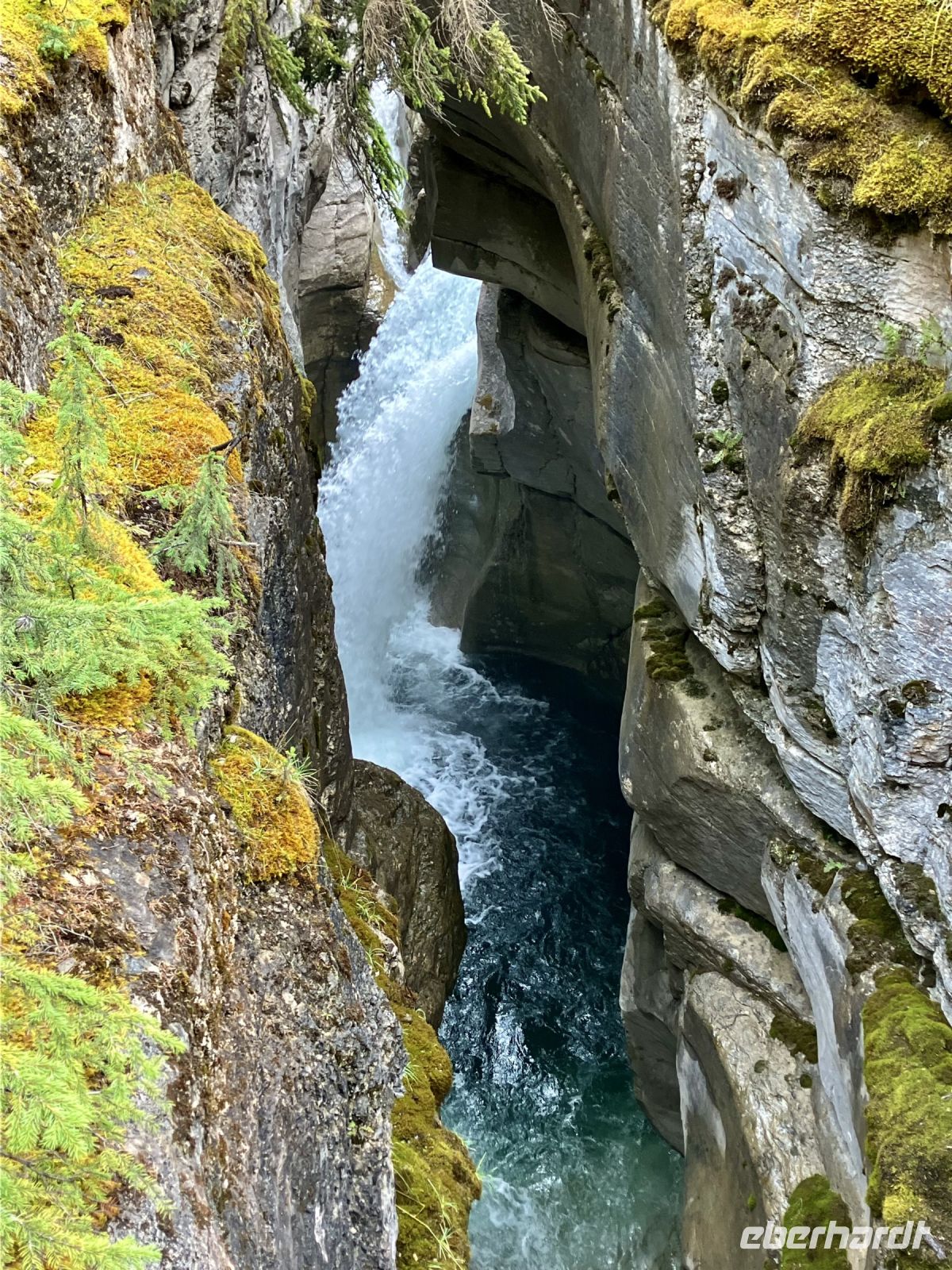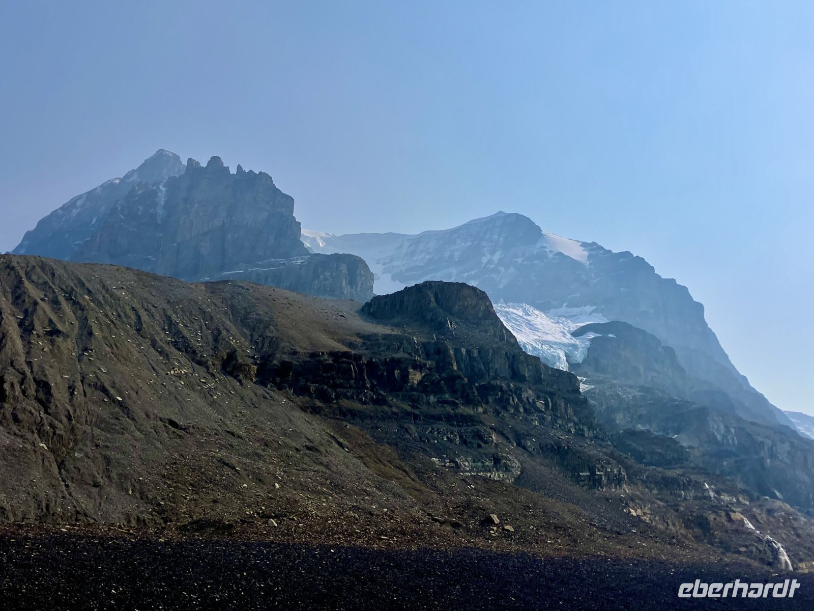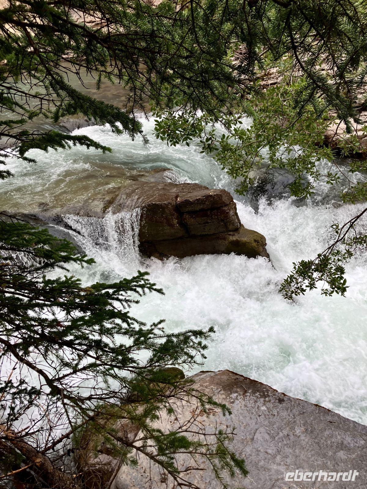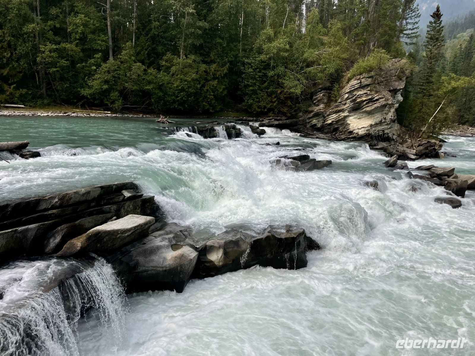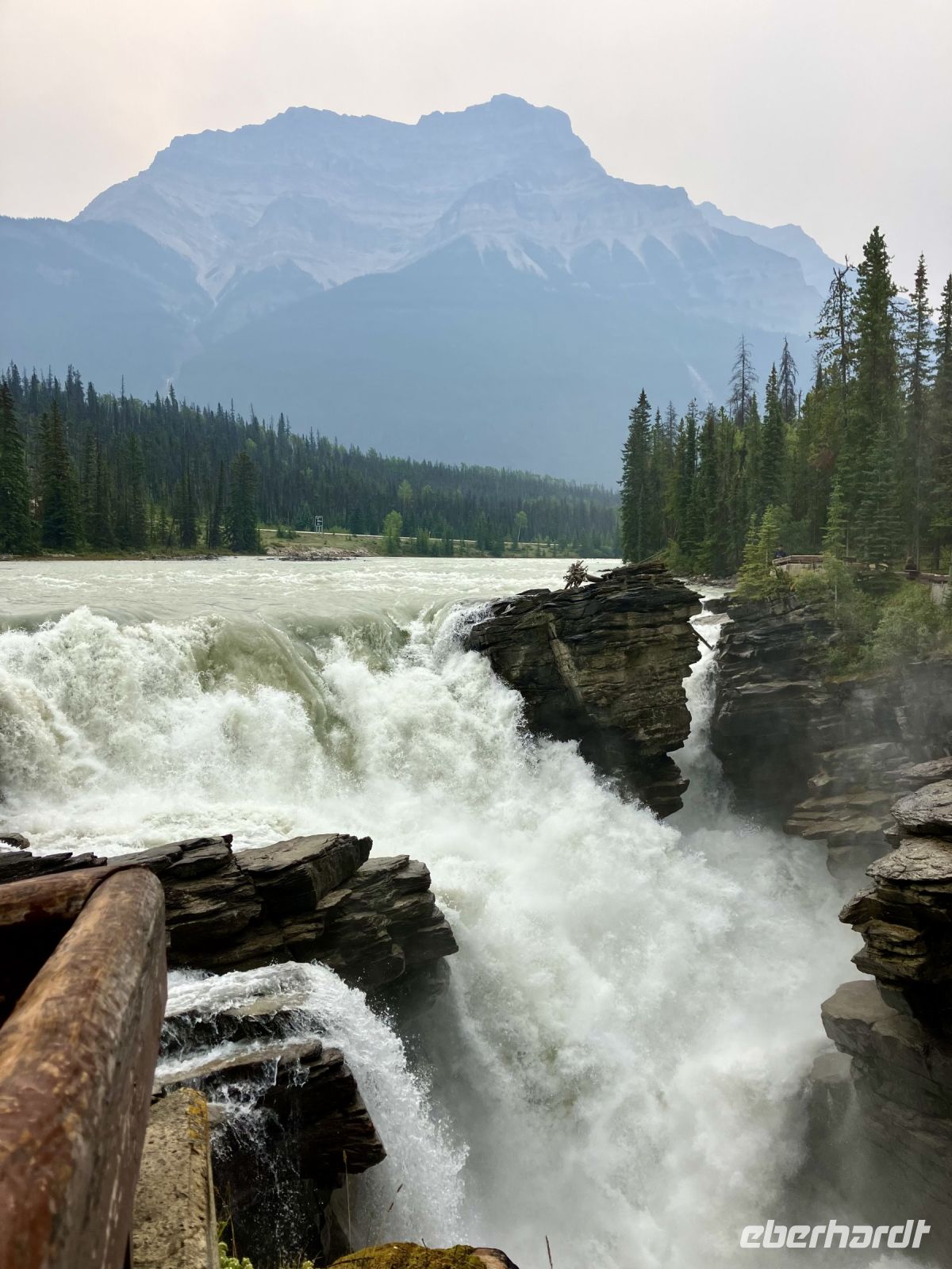 Vorhang auf, strecken, gaehnen und schauen. Ach wie schoen in Banff aufwachen zu duerfen und das Wetter meint es auch gut mit uns. Die Sonne lacht hinter den Rauchschwaden die noch immer von den grossen Waldbraenden in Britisch Columbien rueberkommen. Fenster auf….und gleich wieder schliesen, es ist ganz schoen kalt, 4 Grad, also wird die Hose heute verlaengert. Die Berge sieht man in verschiedenen blautoenen, es schaut alles sehr romantisch aus und wir hoffen natuerlich, dass wir von weiteren Waldbraenden verschont bleiben. Der gute Jet lag haelt uns noch immer einige Stunden pro Nacht wach, aber wir lassen uns nichts anmerken. Niemand sieht die Augenringe der anderen ! Wir sind auf Urlaub und das ist schoen. Also ab, zu einer kleiner Wanderung in eine Klamm. Der Johnston Canyon ist sehr beliebt und wir wandern die kurze Strecke bis zum Jacuzzi der Indianer und wieder zurueck. Eindruecklich ist dieser Canyon und bezaubernd sein Wasserfall. Heute wollen wir aber noch auf die beruehmte Icefield Parkway, die Prachtstrasse der Rocky Mountains. Erster Halt ist beim Castle Mountain, denn den konnten wir ja gestern nicht in unseren Handys verewigen. Danach gehts gleich weiter zum Crawfoot Gletscher, herrlich wie dieser Gletscher glitzert. Der nahe gelegene Bow See ist heute etwas gekräuselt und viele Autos sind unten geparkt. Also bleiben wir oben stehen und spazieren runter zum See. Dem Ufer entlang gehend laufen die Kameras wieder heiss. Die Umgebung, die Berge, Gletscher, Waelder und die schmucke Num Te Jah Lodge sind sehr fotogen. Schaut in die Fotogalerie, es sind die mystischen Bilder. Nun noch schnell in die Num Te Jah Lodge um den Kaffee zu holen und weiter gehts mit Tracy. Naechster Stop ist 5 Min spaeter, beim Peto Lake. Der Dackelsee, wie er auch liebevoll genannt wird, ist tief im Tal gelegen und hat wohl die allerschoenste Farbe aller Gletscherseen. Heute ist er hell und milchig in ein zartes Aquamarin gehuellt. Vor dem rauchigen Himmel schaut er super aus. Nun faengt jedoch der Magen an zu knurren. Also fahren wir weiter. Auf dem grossen Waterfoul See (Seevoegel) sehen wir heute ganze 6 Entchen aber die Geschichte des grossen Abenteurer Alexander McKenzie’s fuehrt uns zur Mittagspause. Wir picknicken am North Saskatchewan River und geniessen die Ruhe. Nach einer guten halben Stunde packen wir`s wieder. Waehrend der Fahrt hinauf zum Athabasca Gletscher gibt es nun ein kurzes Nickerchen denn bald gehts weiter zu unserer Gletscherfahrt. Auch dies ist ein Spektakel, denn wir sitzen in einem Eisexplorer. Dies ist ein tolles Sondergefaehrt und es krazelt mit uns auf den Athabasca Gletscher, welcher Teil des Columbia Eisfeldes ist. Auf dem ewigen Eis angekommen, steigen wir auch aus. Das Wetter ist perfekt wenn auch noch immer etwas rauchig und das Eis ist so, dass man heute gut darauf gehen kann ohne auszurutschen. Wir haben auch sehr viel Zeit heute auf dem Eis so werden viele Fotos geschossen und viele mitgebrachte Flaeschchen mit dem Ewig-Jung Wasser des Gletschers gefuellt. Ob uns Tracy (unser Fahrer) auch wiedererkennen wird ? Aber natuerlich, er wartet bereits auf uns damit er uns sicher in die Sunwapta Lodge fahren kann. Ach wie schoen, die Sunwapta Lodge, ist abseits gelegen, mitten im Wald. Es ist urchig und richtig schoen hier. Nach dem Prosecco check-in haben wir noch Zeit um zum Wasserfall zu spazieren, ehe wir ins Restaurant gebeten werden. Das BBQ heute abend ist fantastisch und Heidis lustige Erklaerungen ueber die Tierwelt der Rocky Mountains runden diesen schoenen Tag ab. Keiner braucht da noch ein Schlaf-Liedchen