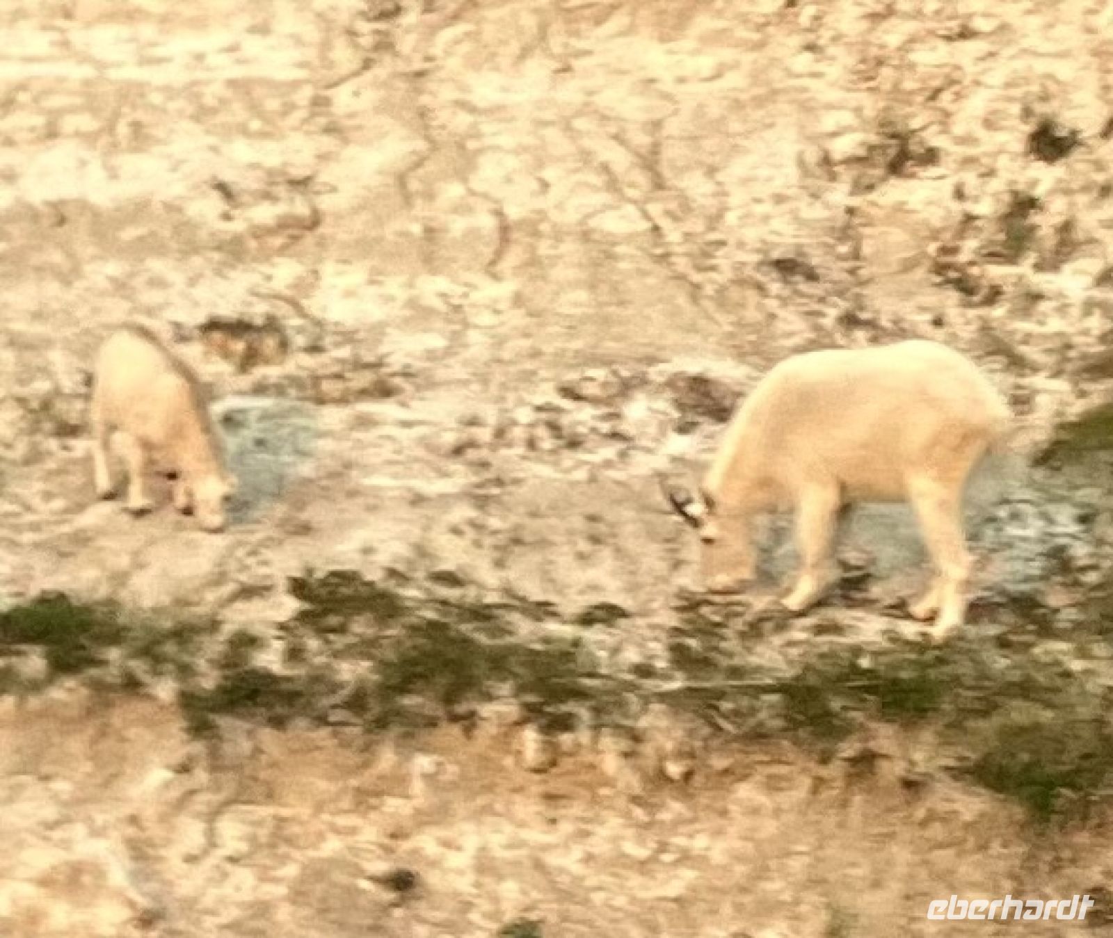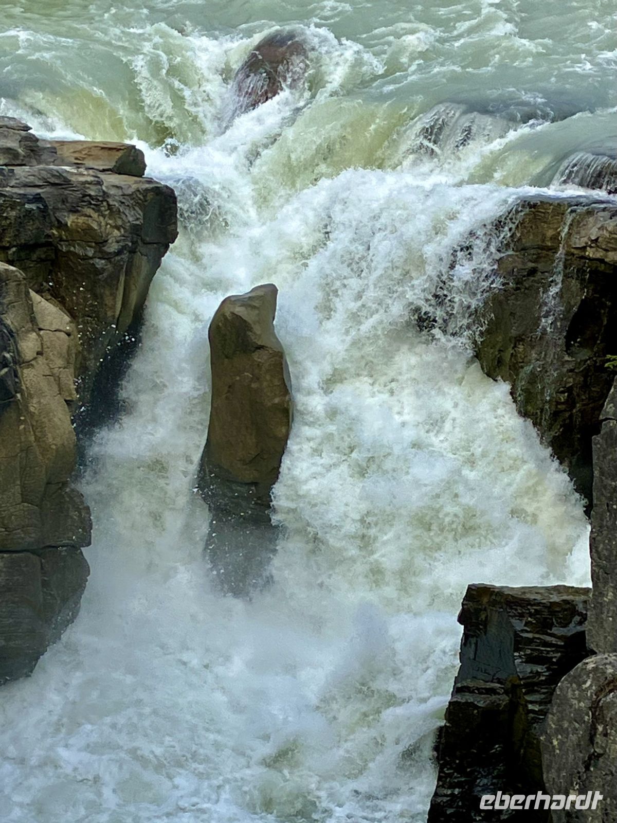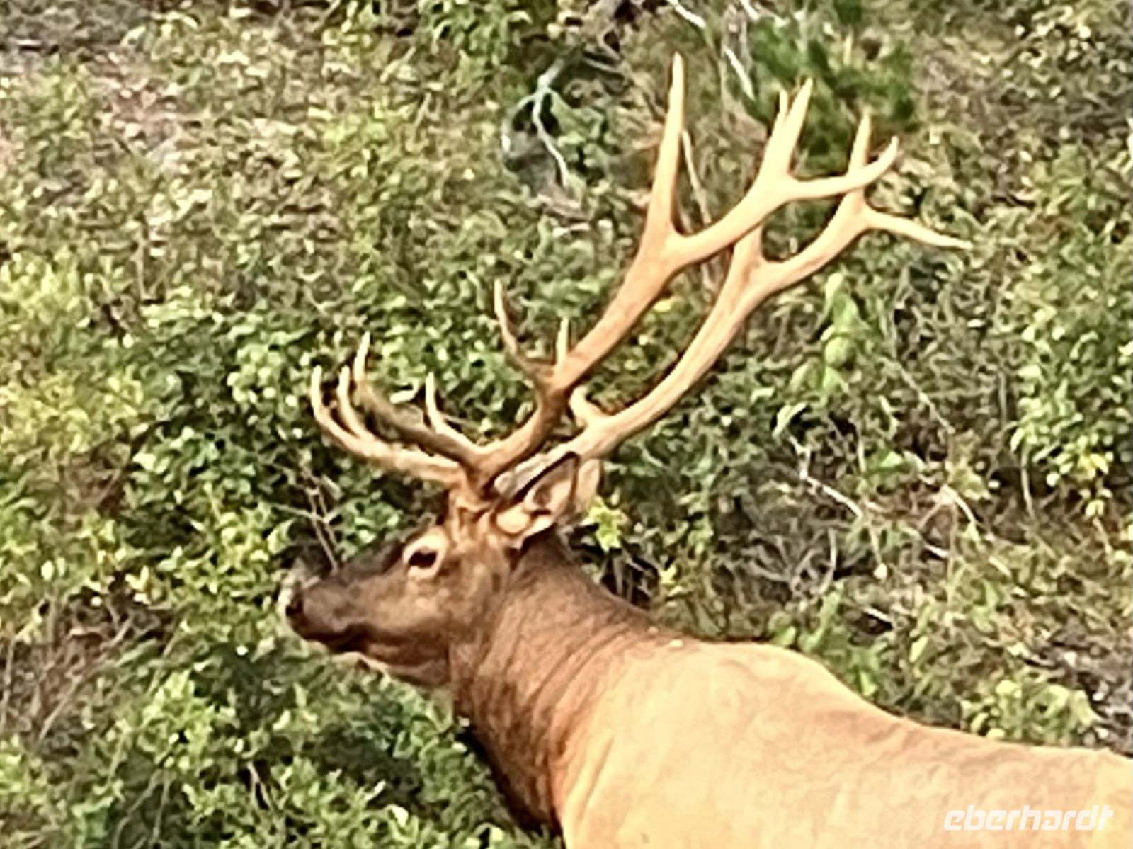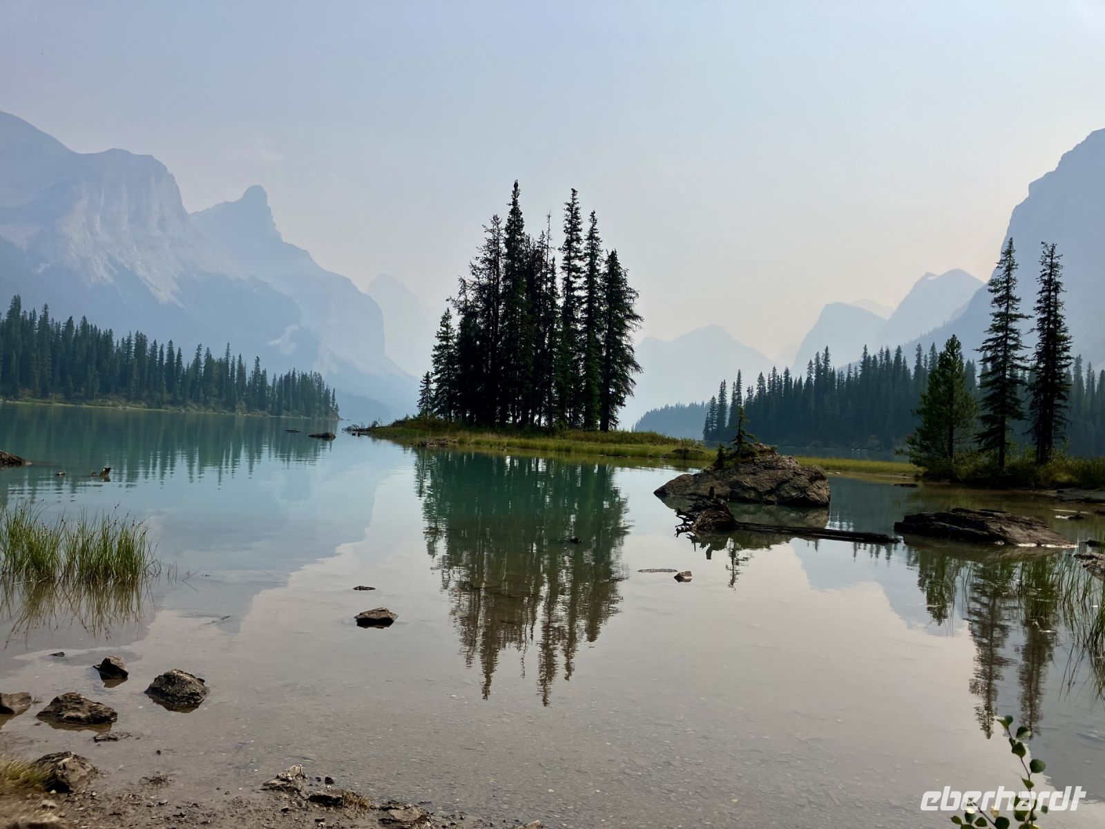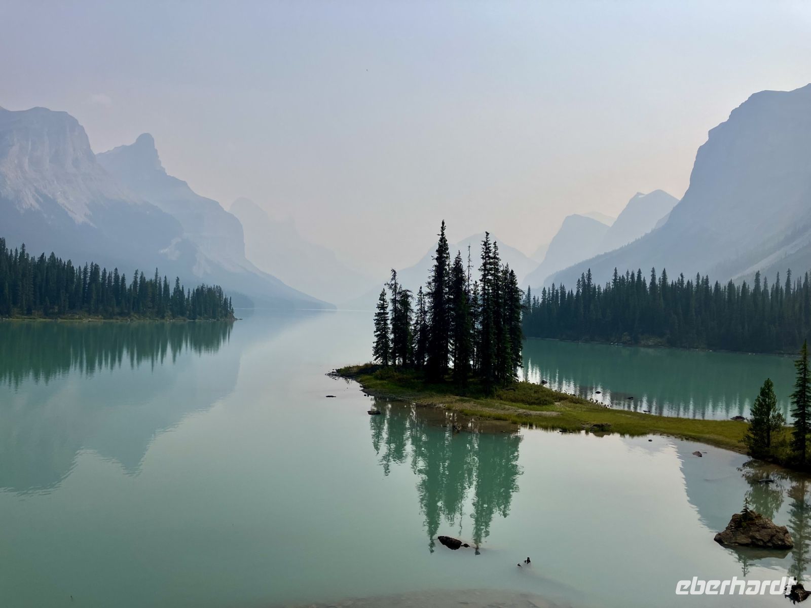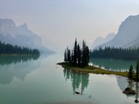 Hinter den Wolken zeigt sich schon ein wenig Sonne und 3 Grad ist es heute in der Frueh. Die kurzen Hosen und das kleine T-Shirt sind jedoch genau die richtige Bekleidung fuer den heutigen Tag, denkt sich die Reiseleitung und zipt sich dann doch die Beinverlaengerung an die Hose und nimmt gleich 2 Jacken mit. Wir fahren nach dem ausgiebigen Fruehstueck gleich nach Jasper, um diesen kleinen Ort auszukundschaften. Gleich darauf gehts auf in die Maligne Schlucht. Einige unter uns moechten gerne die Maligne Schlucht hinaufgehen, das ist ein Spaziergang von rund 1 ½ Stunden, viele Fotostops inkludiert. Andere fahren mit dem Bus bis zum Kaffeehaus und gehen oben die kleinere Runde, andere wieder geniessen einfach mal die Zeit und schauen dem Treiben zu. Das Wasser des Maligne Flusses fasziniert uns alle, denn es verschwindet immer wieder durch unterirdische Gaenge und bekommt Zufluesse aus dem Felsen. So ist der Wasserspiegel des Flusses immer verschieden. Der schoene Wasserfall “Weisser Ton” laedt zum verweilen, und die Gegend zum geniessen ein. Unterwegs gibts noch eine kleine Einfuehrung in den Fotokurs fuer Handy’s. Der Weg ist gut, das Wetter spielt auch mit und wir sind gluecklich hier auf Urlaub zu sein. Oben beim Kaffeehaus treffen wir uns alle wieder und fahren alsobald weiter. Unser Weg fuehrt uns zu Medicin Lake wo wir auch einen kurzer Fotostop einlegen. Das Wetter meint es gut mit uns es regnet nicht und die Sonne sieht man durch die Rauchschwaden welche den Himmel verschleiern. Im Adlerhorst sitzt nun niemand mehr drinnen, die Kuecken sind ausgezogen und die Eltern dieser Weisskopfadler Familie sind nun sicher beschaeftigt sich selbst wieder aufzupaeppeln. Die Elisabeth Gebirgskette schaut auf Medicin Lake hinunter. Bald darauf kommen wir bei Maligne See an, wo sich jeder einen Inbiss auf der Terrasse mit Seeblick goennt und einen Spaziergang entlang des Maligne Sees unternimmt. Um 14:00 Uhr legt unser Boot ab, wir fahren zu der beruehmten Spirit Island. Ach so schoen, ist diese Bootstour auf dem grossen Maligne See. Immer wieder begegnen wir Kanu-fahrer, also verlangsamt unser Kapitaen die Fahrt, sodass die fleissigen Paddler nicht in das 4 Grad kalte Wasser gekippt werden. Begegnen wir jedoch einem Schwesterschiff, fahren wir mit Vollgas auf die Bugwelle und starten das Rodeospiel. Viel wird nun erzaehlt ueber die Stoney First Nations, die Fische im See, die Berge rundherum, die Waelder und die Gletscher. So sind wir bald bei der romantische Halbinsel Spirit Island. Sie hat das perfefkte “setting” von hellblauen Wasser umgeben, welches wiederum von Bergen, die wie Throne ausschauen, eingerahmt ist. Viele Fotos spaeter fahren wir wieder zurueck, bestaunen die Gletscher und das Bergpanorama und tauschen uns aus. So amuesieren wir uns koestlich und sind auch bald wieder im Hafen von Maligne Lake. Unser Fahrer Tracy, wartet auch bereits auf uns und bald gehts im Bus weiter. Siesta ist nun angesagt bis wir in Jasper ankommen. Da steigen alle, ausser den mutigen Rafter aus. Die Jasper-Besichtigungs Gruppe hat nun etwas Freizeit und diejenigen die sich fuer die Rafting tour angemeldet haben werden nun zum Fluss gefahren. Da wartet das knall rote Gummiboot bereits auf uns und Harrisson, der Rafting Guide paddelt uns auf dem Sunwapta Fluss wieder zurueck nach Jasper. Dies ist echt ein toller Ausflug, wir lachen uns krumm und muessen auch immer wieder festhalten, wenn wir ueber Wasserschnellen und Wellen raften. Das Boot ist so lang, dass man die Wellen kaum vernimmt, aber viel Eindruck macht es allemal. Bei Ankunft huepfen wir wieder an Land und steigen in Tracy’s Bus ein der genau zur richtigen Zeit am richtigen Ort aufkreuzt. Nun aber schnell nach Jasper hinein, um den Rest der Gruppe aufzugabeln. Auf der Rueckfahrt in unsere Lodge halten wir ploetzlich inne, denn hier steht er, ein riesengrosser Wapitihirsch mit riesigem Geweih steht gemuetlich am Strassenrand und frisst genuesslich Graeser. Viele Fotos danach fahren wir weiter bloss um kurze Zeit danach wieder anzuhalten, da sich 4 Schneeziegen auch wieder gleich am Strassenrand bei einer sehr hellen Sandsteinbank zeigen. Ach so wunderschoen, wir bleiben eine Weile stehen um ihnen zuzuschauen. Nur gut, dass wir nicht auch noch einen Baeren sichten, sonst kaemen wir zu spaet zum Abendessen ! Wir freuen uns irre, dass wir endlich auch groessere Tiere als bloss Streifenhoernchen in den Rockies gesehen haben. Wir hatten einen sehr schoenen Tag heute, danke Eberhardt, danke Wetter, danke allen Mitreisenden. Das Abendessen ist wieder sehr fein und ueppig, sodass wir uns danach bald in unsere kuscheligen Bungalows zur Nachtruhe begeben.