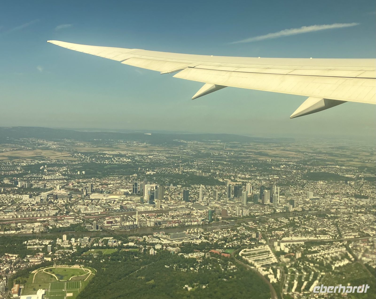 An die 50 cm Spielwiese gewoehnen wir uns nur schlecht und sind froh 9 Stunden spaeter, um 8 Uhr morgends des naechsten Tages puenktlich in Frankfurt zu landen. Nun heisst es definitif Abschiednehmen von einander. Tschuesschen, Tschuesschen, Kuesschen, Kuesschen, wir bleiben in Kontakt denn wir wissen bereits; bald werden wir dem Alltag wieder entschweben wollen um ein anderes Land kennenzulernen. Man trifft sich ja immer wieder, wenn man sich mal kennengelernt hat.