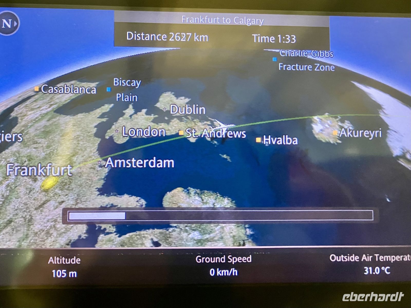 Gluecklich, dass wir alle zur gewuenschten Zeit in Frankfurt angekommen sind, eilen wir gleich zum Gate nach Calgary. Dort werden wir von unserem „Frosch“ herzlich begruesst. Bald darauf ist jedoch bereits Zeit sich hinten an einer Schlange anzustellen. Kanadier lieben Schlange stehen wurde uns prophezeit. Richtig. Endlich im Flieger finden wir auch alle unsere zugewiesenen Sitzplaetze und richten uns ein. Bloss ein Sitz ,in der ersten Klasse, der ist total defekt. Die Maschine sei total voll, so sorry, wird uns immer wieder gesagt. Aber nach langem hin und her ergibt sich dann dennoch einen leeren Sitzplatz in der 1. Klasse, unsere Mitreisende ist gluecklich, die Reiseleitung auch und der Flug kann beginnen. Wie hat sich die Person, die da sass aufgeloest ? Wohin ist sie ? Item ; Rechtzeitig, 8 Stunden und 25 Minuten spaeter, landen wir in Calgary. Gut war der Flug wenn auch etwas kuehl und eigentlich sehr wenig Sicht auf Groenland. Bloss ein Foto konnte ich schiessen, es ist in der Bildergalerie zu finden. In Calgary muessen wir die Uhren 8 Stunden zurueck stellen, uns durch die Immigrations Kontrolle mausern, Koffer holen und durch die Zollkontrolle gehen. Ach ne, 1 Koffer hat es nicht geschafft. Also geben wir dies an, der Koffer wird lokalisiert und kommt Morgen in Calgary an. Er wird Morgen Nachmittag nach Banff in unser Hotel gebracht. Unterdessen, steht Tracy mit seinem grossen Bus draussen bereit. Kofferladen und ab gehts auf eine Stadtrundfahrt. Es nieselt ganz leicht. Wir erfahren allerhand ueber diese Oel-gezeichnete Grosstadt. Die Glasspalaeste sind sehr eindrucksvoll und die Spiegelung von einem Gebaeude aufs naechste ist wunderschoen. Der 191 Meter hohe Calgary Tower mit seiner roten Aussichtsterrasse ueberragte wohl in den 60 Jahren die ganze Stadt. Heute ist er lang nicht mehr der hoechste Punkt Calgarys. Beim Satteldom halten wir auch auf der Anhoehe an, um ein schoenes Foto zu knipsen. Nun gehts aber weiter zum Mariott Residence Hotel. Was fuer ein tolles Hotel, super modern mit riesigen Zimmer, es sind richtige Klein-Wohnungen. Es ist nun 17:30 und es bleibt uns Zeit ein bisschen Spazieren zu gehen oder auszuruhen ehe wir uns wiedersehen um unser nahegelegenes Restaurant fuers Abendessen aufzufinden. Ein leichtes, jedoch grosszuegiges Essen spaeter, fuehlen sich unsere Augenlider wie Blei an. Ab, in die grossen Zimmer, mit den riesengrossen Betten.