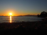 Am frühen Abend machten wir uns auf den kurzen Weg vom Hotel zur English Bay, um dort mit einem kanadischen Whisky beim Sonnenuntergang auf unsere Reise anzustoßen, ganz zünftig und rustikal, mit den Füßen im Sand. Gegenüber wurde uns dann im Restaurant ein leckeres Menü serviert und wir genossen zum letzten Mal das Beisammensein und ließen die Reise Revue passieren.