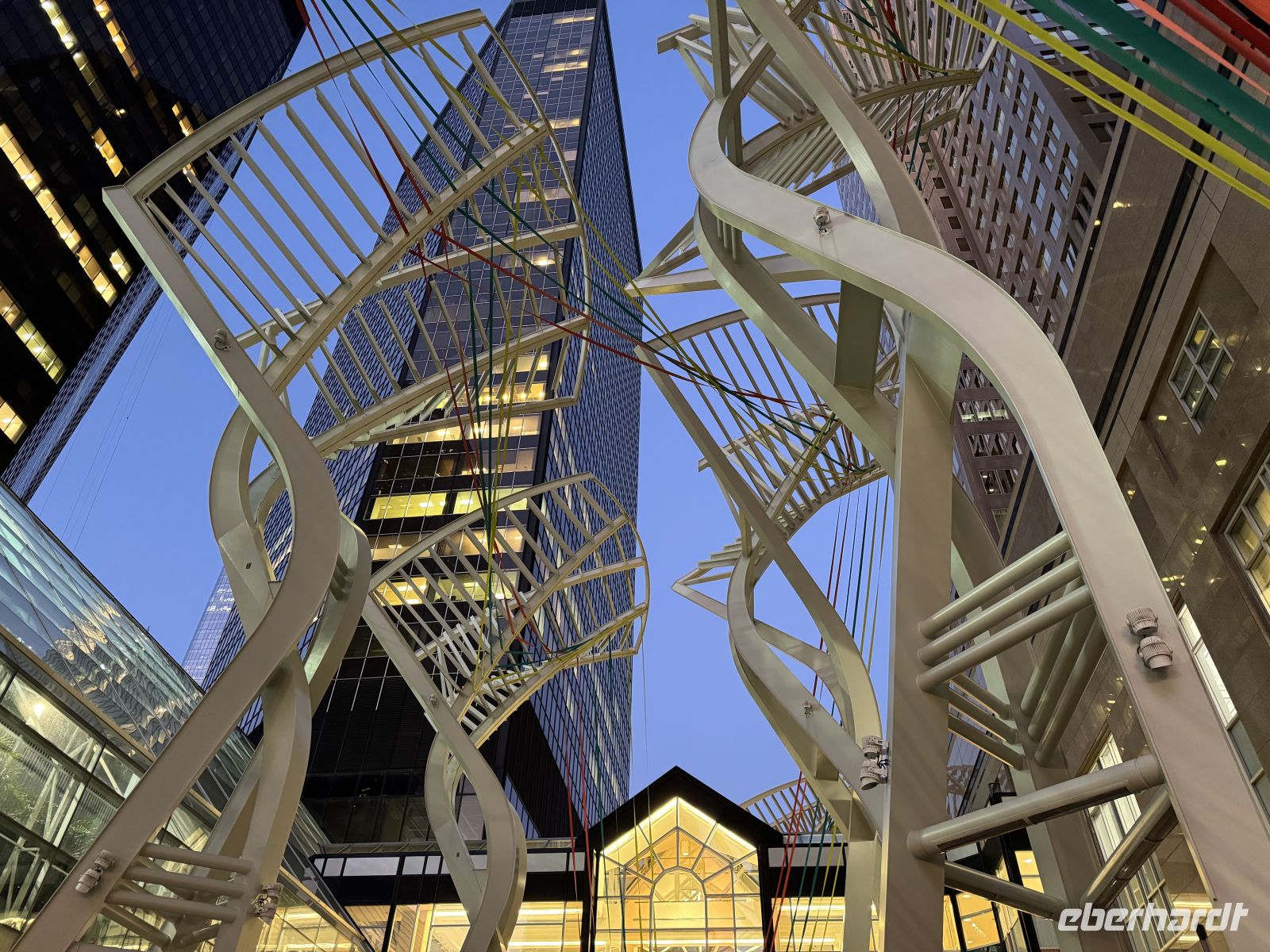 Meine Gäste freuen sich schon seit Monaten auf diese Reise nach West-Kanada. Und heute geht es endlich los! Für fünf zukünftige Kanada-Fans und mich beginnt das Abenteuer am Morgen mit einem kurzen Flug von Leipzig nach Frankfurt. Andere Gäste reisen aus Dresden oder Berlin mit einem Zubringerflug an und sind sogar noch zeitiger unterwegs. In Frankfurt haben wir etwa drei bis vier Stunden Aufenthalt, bevor es mit Discover Airlines, einer Tochtergesellschaft der Lufthansa, weiter nach Calgary geht. Inzwischen ist auch der Rest meiner Gäste eingetroffen — und auch eine weitere Eberhardt-Reisegruppe. Der Flug in die größte Stadt der kanadischen Provinz Alberta startet mit etwa 30 Minuten Verspätung, dauert mit dem A330 etwas mehr als neun Stunden und verläuft insgesamt sehr ruhig. Die Einreise gestaltet sich unkompliziert und die Grenzbeamten sind alle sehr freundlich und hilfsbereit. Nur auf die Koffer müssen wir diesmal teilweise lange warten. Derweil hat sich unser Fahrer Freddy mit dem Bus ebenfalls am Flughafen eingefunden und möchte uns noch ein paar Highlights seiner Heimatstadt zeigen. Bei sonnigen 27 Grad fahren wir zunächst zum ehemaligen Fort Calgary, der Geburtsstätte der heutigen Großstadt am Zusammenfluss von Bow River und Elbow River. Calgary ist nicht nur als ehemalige Olympiastadt bekannt, sondern genießt auch den Ruf als Kanadas Hauptstadt für Cowboy-Kultur und Countrymusik. Deshalb darf auch ein Abstecher zum Stampede Park und zur markanten Saddledome Arena nicht fehlen. Auf dem Gelände findet jedes Jahr im Juli die größte Rodeo-Show der Welt statt, die Calgary Stampede. Witzigerweise ist auch der Cirque du Soleil gerade vor Ort, mein alter Arbeitgeber. Wir fahren dann noch ein Stück durch die Downtown, bevor wir das Hotel ansteuern. Das Rathaus können wir gut sehen, aber der Olympic Plaza, auf dem die Medaillen vergeben wurden, ist eine riesengroße Baustelle. Unser Hotel liegt sehr zentral, ist sehr modern und hat schöne, große Zimmer. Wir können uns kurz frisch machen, bevor wir noch einmal aufbrechen, denn es wartet am heutigen Abend bereits das erste gemeinsame Abendessen in einem sehr guten Restaurant auf uns. Danach sind wir durch den Zeitunterschied aber wirklich sehr müde und fallen erschöpft in die weichen Betten.