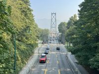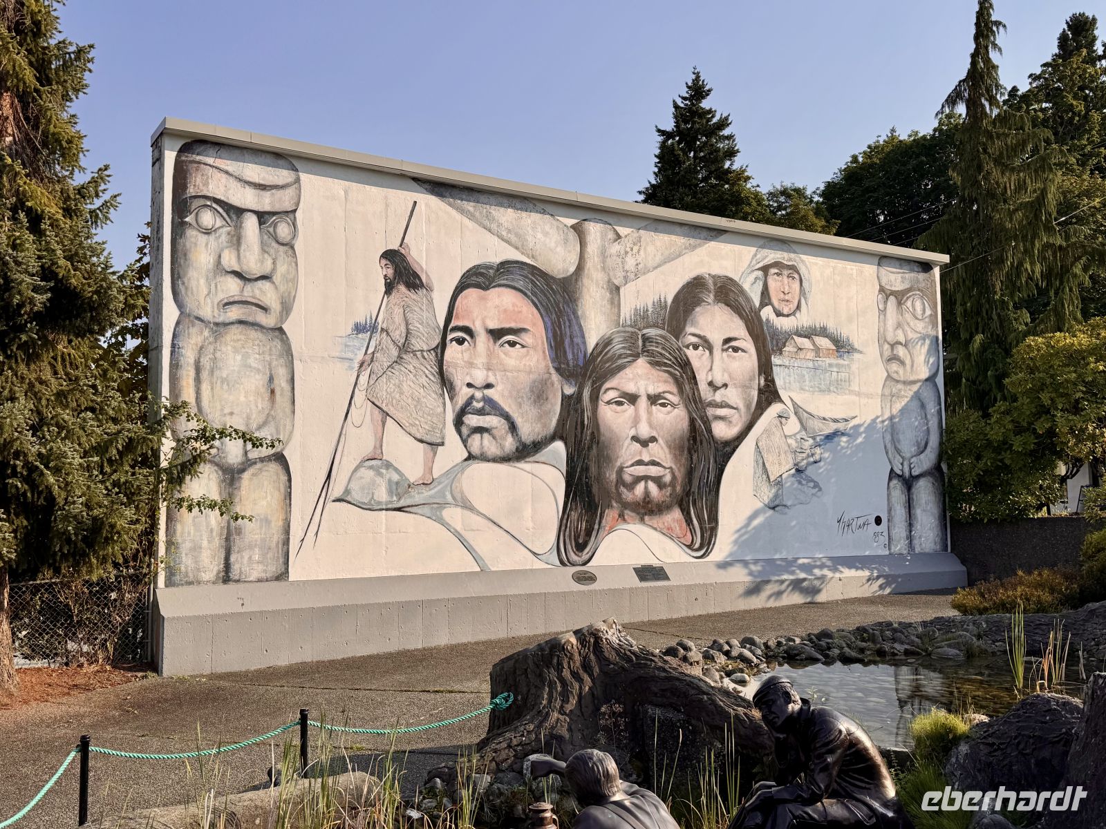 Unser heutiger Fahrer Hatinder tritt natürlich in große Fußstapfen. Neuer Bus, neuer Fahrer, kein Freddy … Aber der Bus steht überpünktlich bereit und Hatinder erweist sich ebenfalls als höflicher und netter Geselle, den ich gern besser kennengelernt hätte. Mit ihm erkunden wir jedenfalls auf einer halbtägigen Stadtrundfahrt die Metropole Vancouver und beginnen gleich um die Ecke am Stanley Park an den berühmten Totempfählen. Leider werden unsere Aussichten überall vom Smog getrübt, der heute wie eine Glocke über der Stadt hängt. Es regt sich auch nirgends ein Lüftchen, der ihn vertreiben könnte. Immerhin ist die Skyline der Downtown mit ihren Hochhäusern, dem Drehrestaurant und dem Kreuzfahrtterminal von hier aus noch sichtbar. Die Lions Gate Bridge führt ein bisschen in den Nebel und West Vancouver ist vom Prospect Point schwer auszumachen. Wir probieren trotzdem unser Glück und fahren weiter zum Queen Elizabeth Park. Immerhin liegt auch das Rathaus auf der Strecke und wir sehen einige Stadtviertel, die noch nicht von Wolkenkratzern dominiert werden. Doch wie wir sehen, sehen wir leider nichts von der Downtown und den Bergen im Hintergrund, können aber zumindest Fotos vom Park und Observatorium machen. Nächstes Ziel ist die Granville Island. Als Überbleibsel der Vergangenheit gibt es hier noch die Zementfabrik von Heidelberger, doch ansonsten befindet sich die Halbinsel fest in der Hand der Kunst-, Kultur- und Gastronomieszene. In der großen Markthalle finden wir alle ein schnelles, leichtes Mittagessen, während es zum Nachtisch mal wieder hausgemachtes Gelato gibt (vom Italiener gleich nebenan). Sehr lebhaft geht es auf Granville Island und überhaupt in Vancouver zu. Die Stadt wirkt voller Energie und Lebensfreude. Das führt natürlich auch zu einem höheren Geräuschpegel, als wir es in den letzten zwei Wochen gewöhnt waren. Pünktlich steht Hatinder wieder mit seinem Bus am Abholpunkt bereit, um die Stadtrundfahrt fortzusetzen. Gern möchte ich meinen Gästen noch die Chinatown von Vancouver zeigen, vor allem das Millennium Gate, das schmalste Haus der Welt und den Dr. Sun Yat-Sen Classical Chinese Garden, eine herrliche, grüne Oase der Ruhe inmitten des Großstadtdschungels. Das Altstadtviertel Gastown mit der berühmten Dampfuhr können wir derzeit nicht unmittelbar ansteuern, aber wir bieten die Möglichkeit an, in einer Parallelstraße auszusteigen und gleich in der Altstadt zu bleiben, denn hier gibt es natürlich viele Souvenirläden, Cafés und Restaurants und meine Gäste müssten nicht erst vom Hotel aus nochmals aufbrechen. Fünf Gäste bleiben an Bord und sehen damit auf der Rückfahrt immerhin noch die Waterfront Station, das heutige Kreuzfahrtterminal Canada Place sowie den Olympic Cauldron an der Uferpromenade. Bis zum gemeinsamen Abschlussabendessen im altehrwürdigen Sylvia Hotel haben meine Gäste nun Freizeit und können Vancouver individuell weiter erkunden. Beim großen Festmahl feiern wir später die gelunge Reise und uns als sehr harmonische und glückliche Reisegruppe.