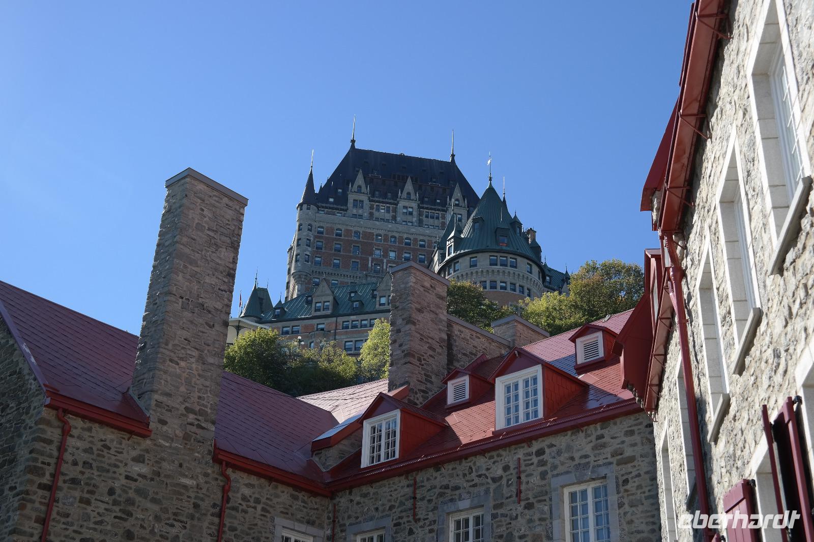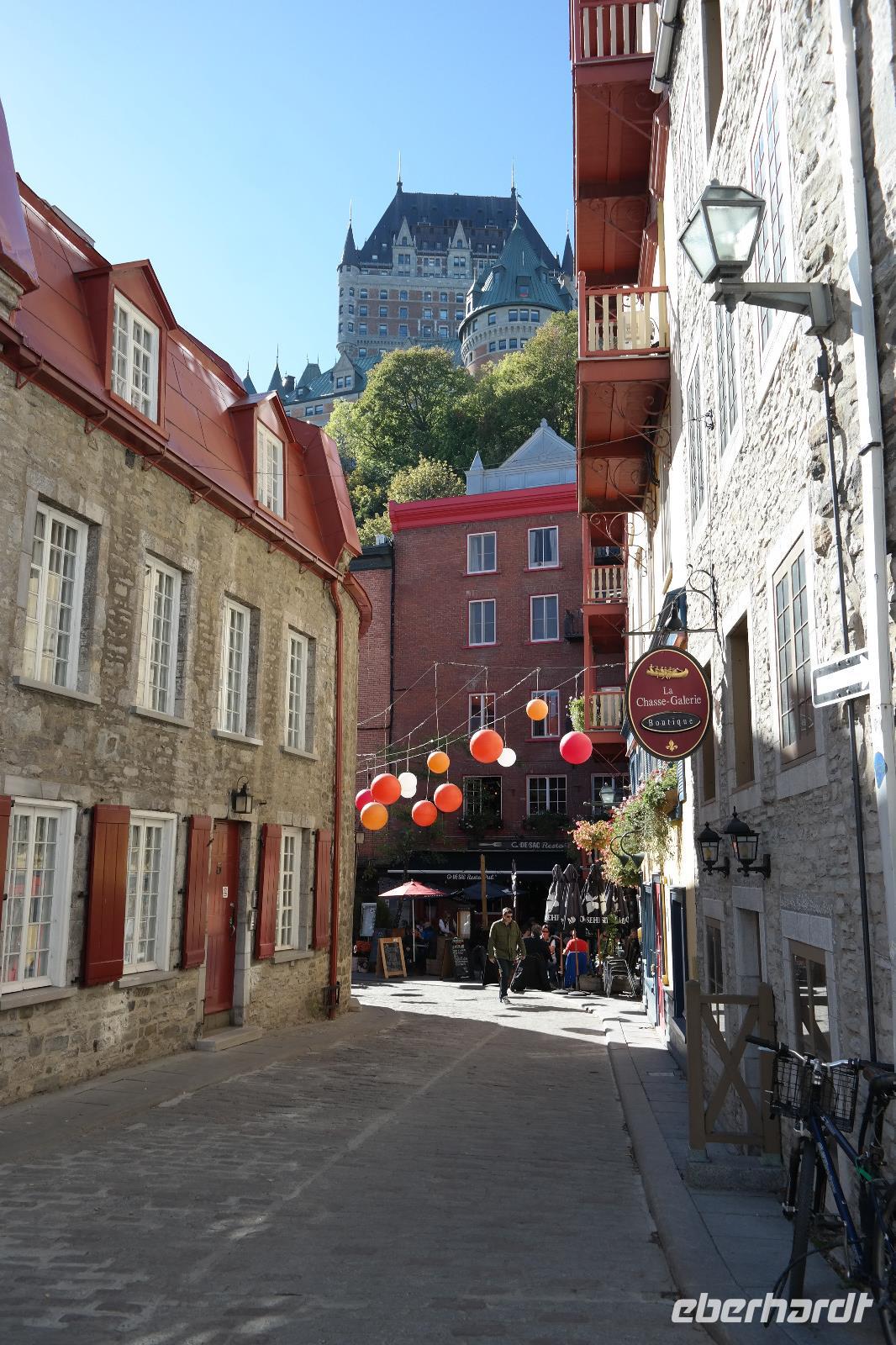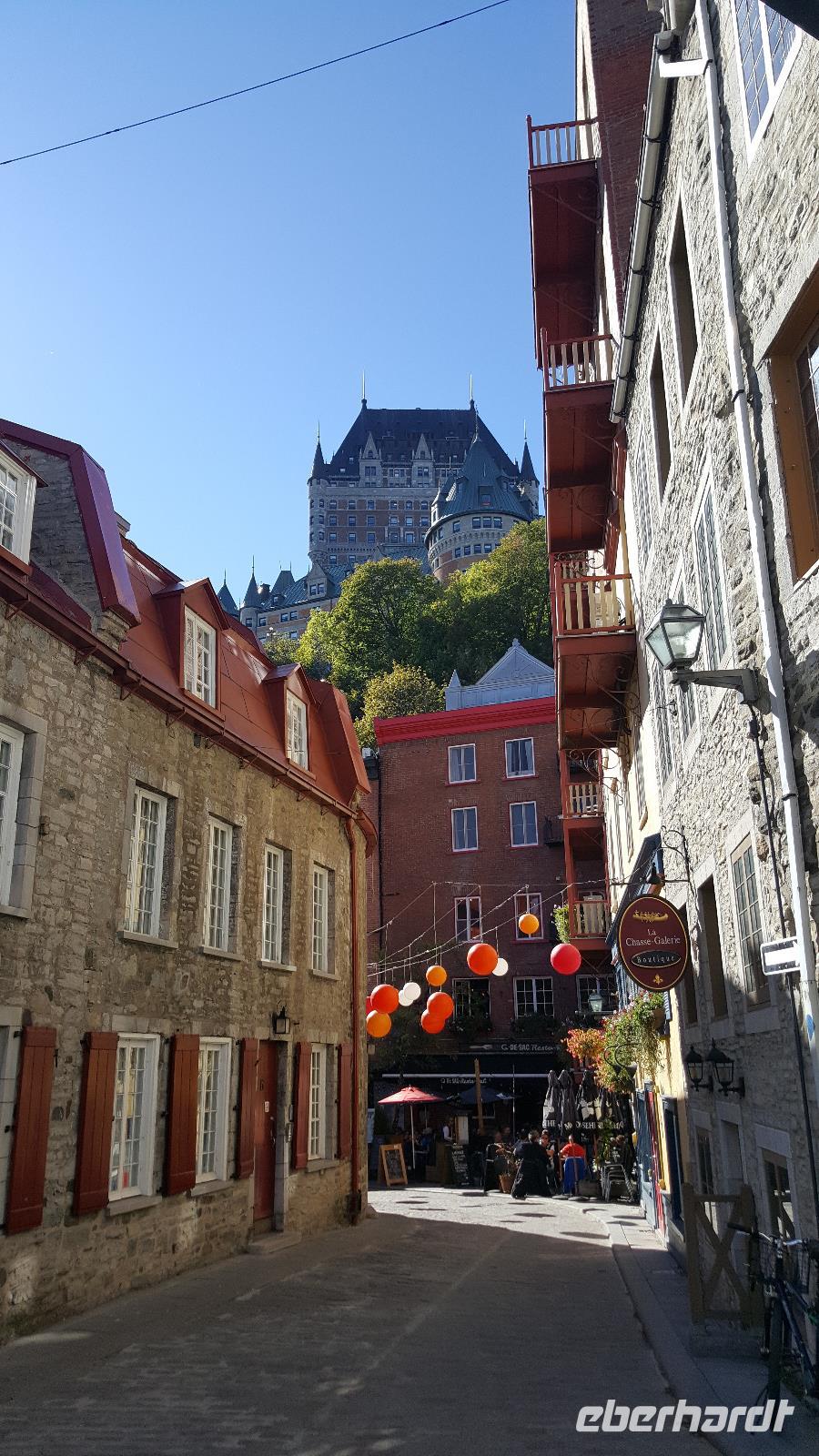 Nach einem reichhaltigen Frühstück machten sich viele von uns auf den Weg in die Stadt. Ich bin mit einigen Gästen in Richtung Altstadt gegangen, zum einen um Geld zu wechseln, zum anderen um natürlich das schöne Quebec zu erkunden. Vorbei am Fairmont Chateau Frontenac ging es zur Petit Champlain, einer Einkaufsstraße in der Einheimische ihre Waren verkaufen. Nach einem kleinen Mittagssnack - dem heimlichen Nationalgericht Kanadas: Poutine, welches aus Pommes mit Bratensauce und Käse besteht - gingen wir wieder ins Hotel zurück. Nachdem wir uns ein wenig frisch machen konnten, wurden wir von unserer Reiseleiterin Nadja in der Lobby empfangen. Ich erhielt in der Zwischenzeit die freudige Nachricht, dass die zwei fehlenden Koffern auf dem Weg Richtung Flughafen Quebec sind.