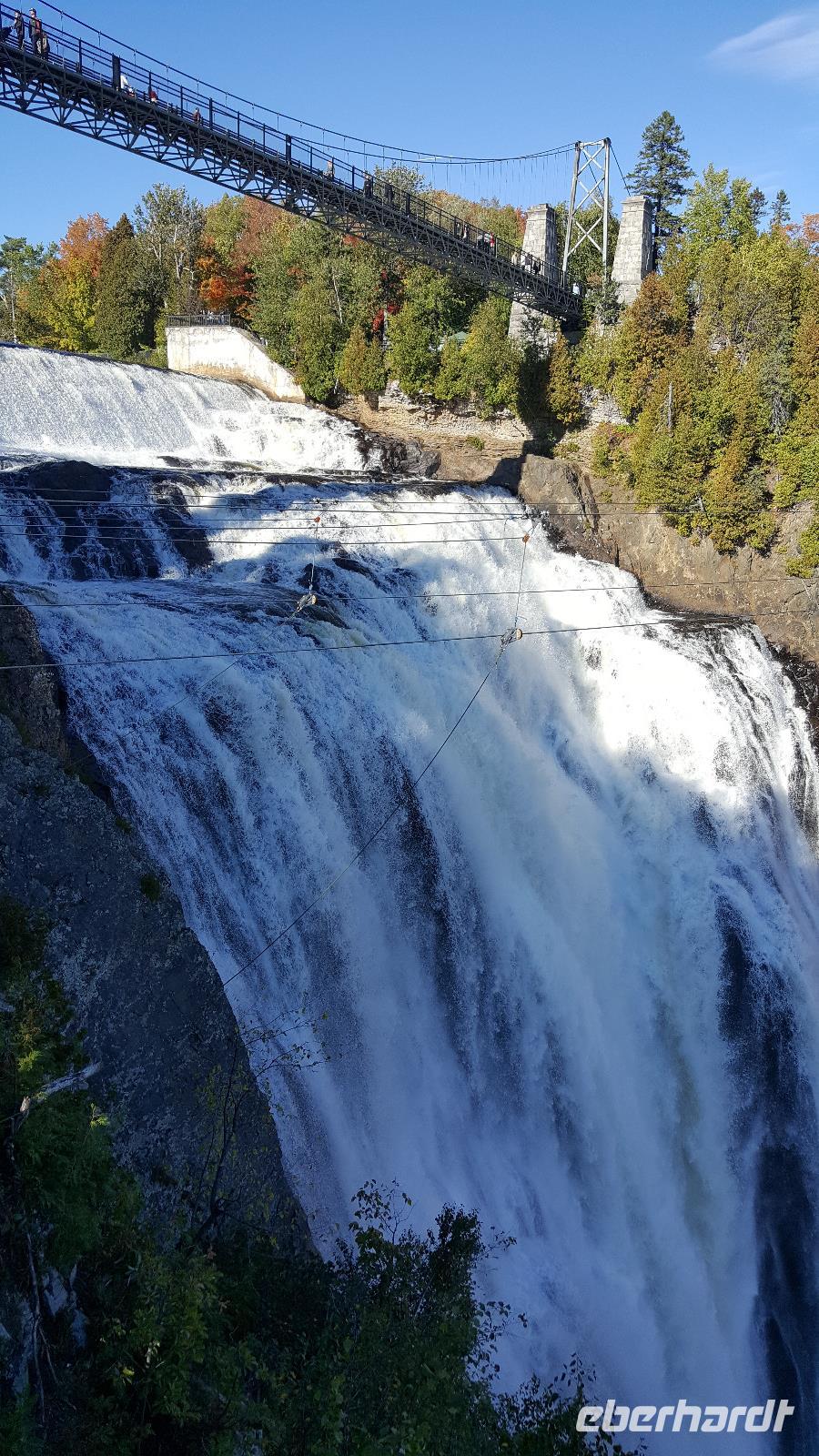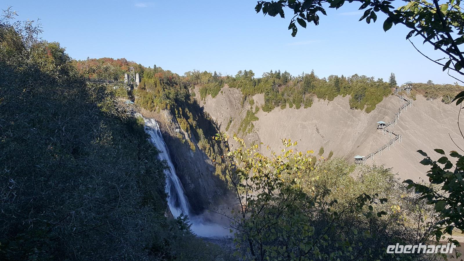Bei unserer Stadtrundfahrt lernten wir viel Wissenswertes über Quebec City kennen und wir konnten die wichtigsten Ecken und Bauwerke der Stadt sehen. Später fuhren wir weiter zu den Montmorency Wasserfällen, wo wir ca. eine Stunde Zeit hatten um die Fälle individuell zu entdecken. Man kann auch auf eine Brücke direkt über die Wasserfälle laufen, von dort sieht man, wie das Wasser die Klippe hinab stürzt.
