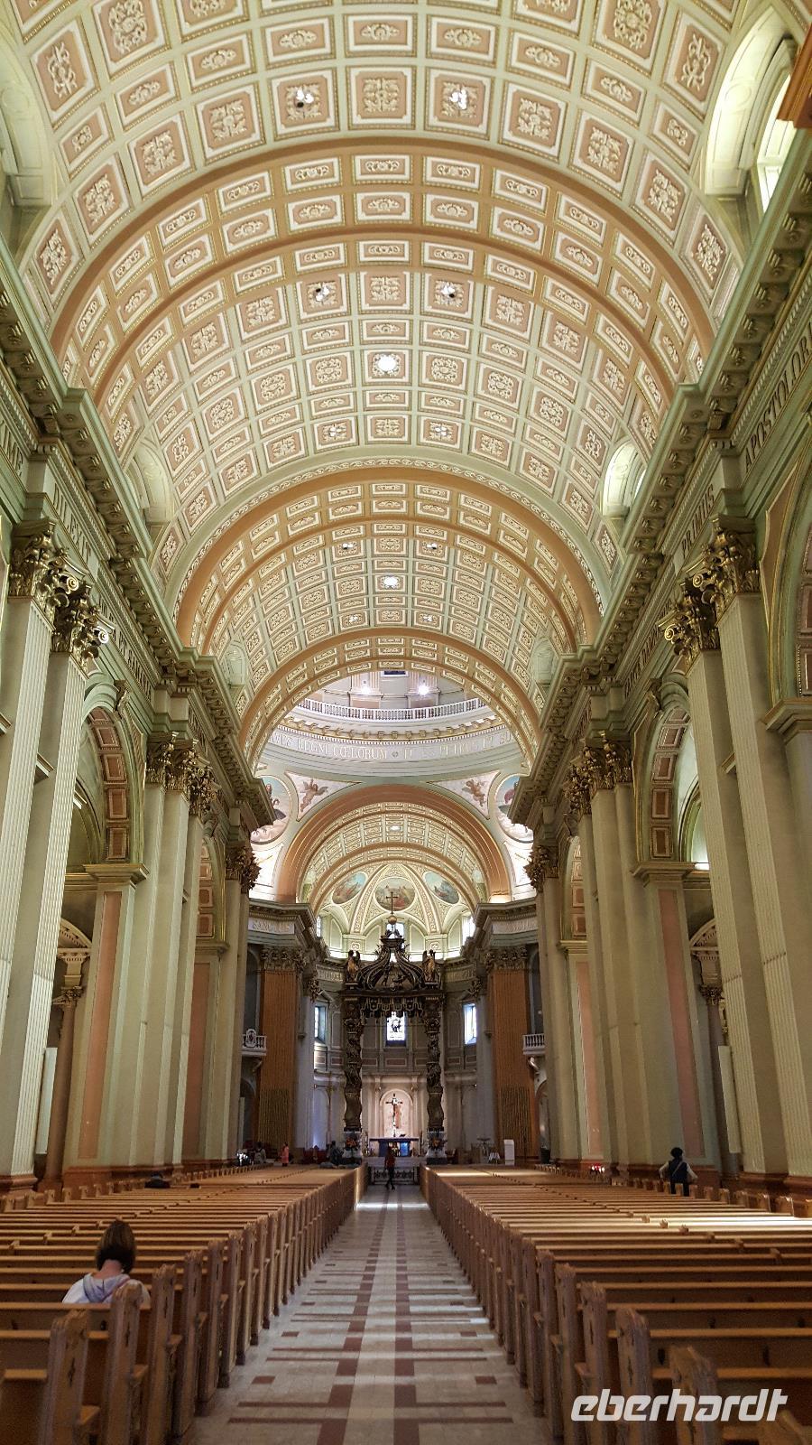 Recht früh am Morgen machten wir uns mit Silke auf den Weg nach Montreal. Auf halber Strecke hielten wir in Trois Rivieres - einer kleinen Stadt durch welche der bekannte Königsweg direkt durchführt. Nach einer Stunde Freizeit machten wir uns wieder auf den Weg nach Montreal. Als wir dort ankamen, hatten wir noch etwas Zeit bis wir auf das Schiff durften. So bin ich mit einigen noch durch die Stadt spazieren gegangen und haben uns die Basilika angesehen, welche dem Petersdom in Rom nachempfunden wurde.