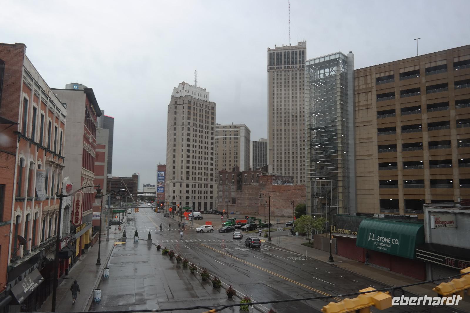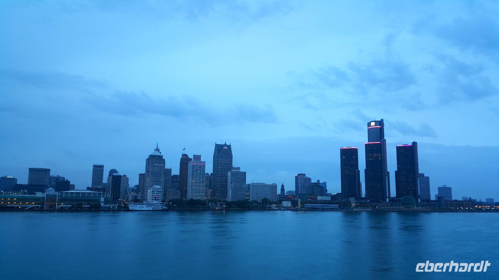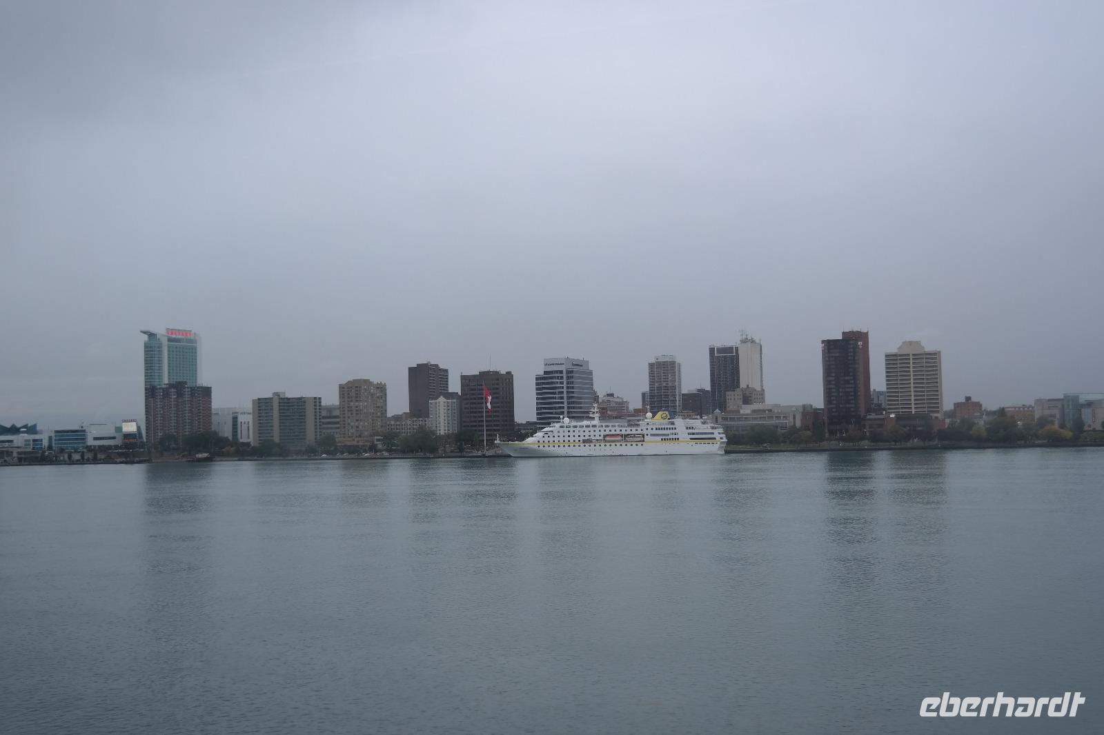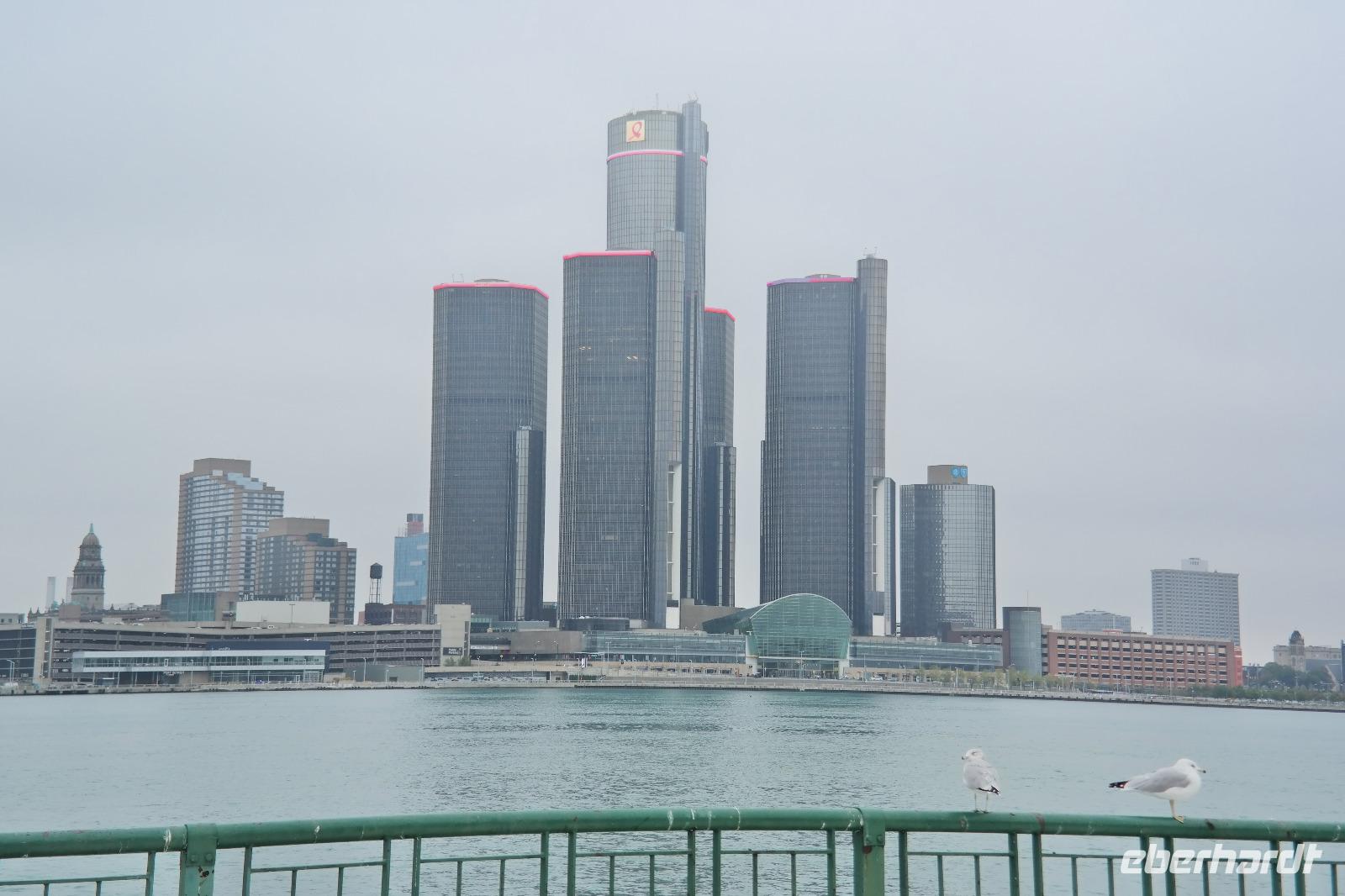 Am Morgen erreichten wir das regnerische Windsor und auf der gegenüberliegenden Seite des 51 km langen Detroit Rivers, welcher zeitgleich die Grenze zwischen den USA und Kanada bildet, liegt die Stadt Detroit.