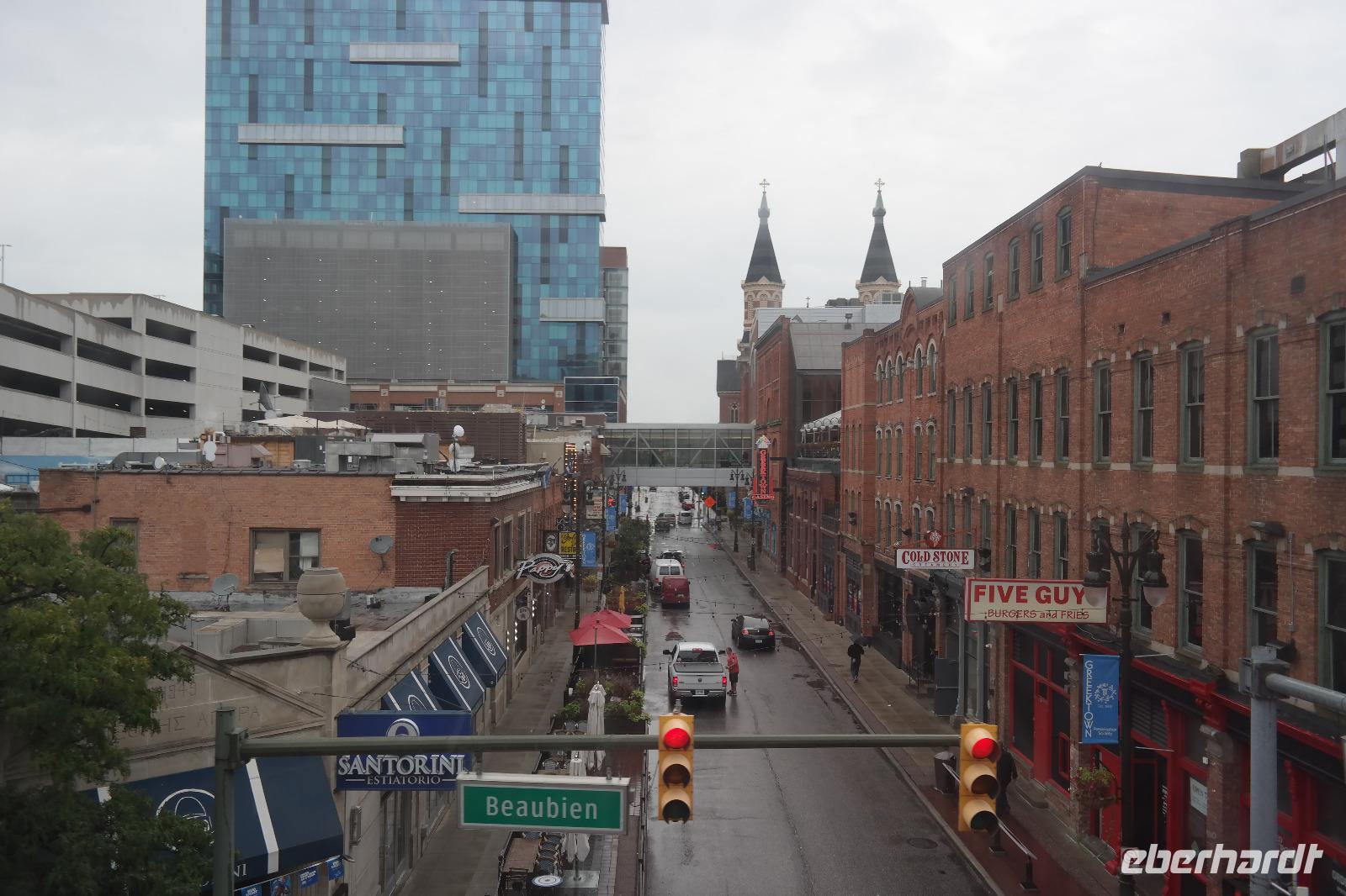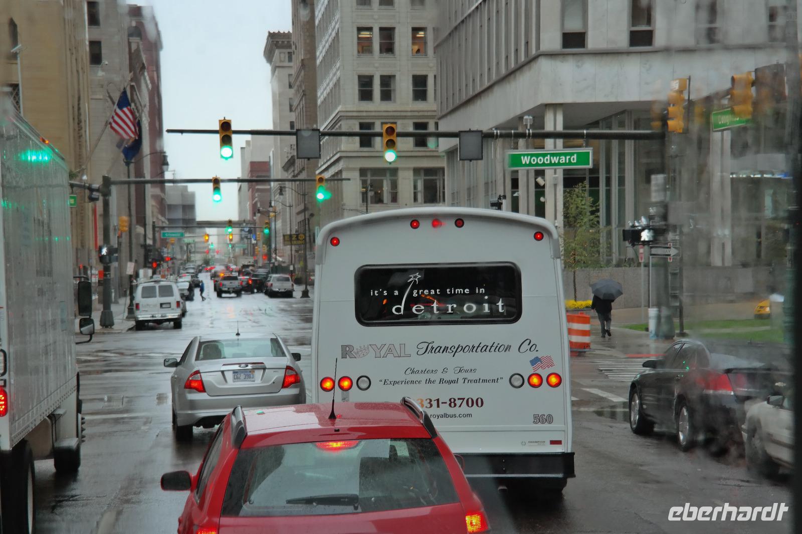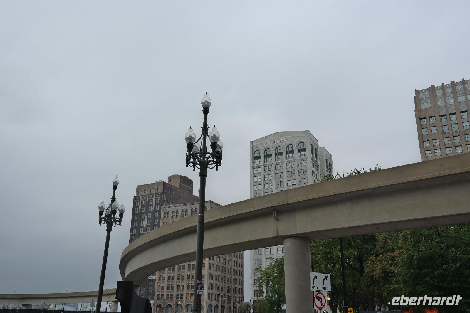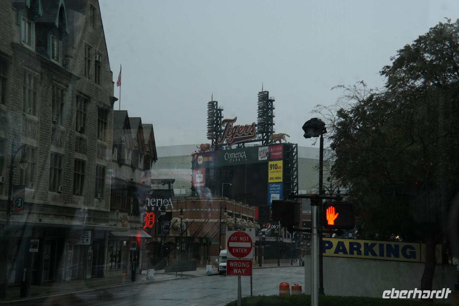 Am Morgen erreichten wir das regnerische Windsor und auf der gegenüberliegenden Seite des 51 km langen Detroit Rivers, welcher zeitgleich die Grenze zwischen den USA und Kanada bildet, liegt die Stadt Detroit.