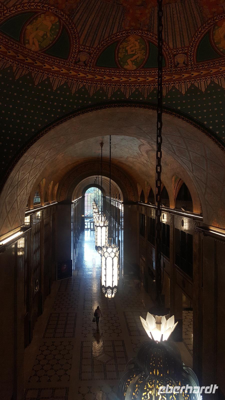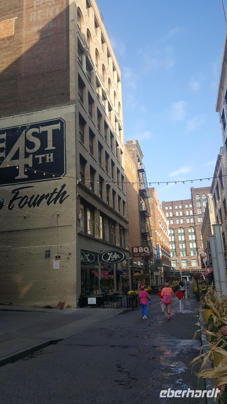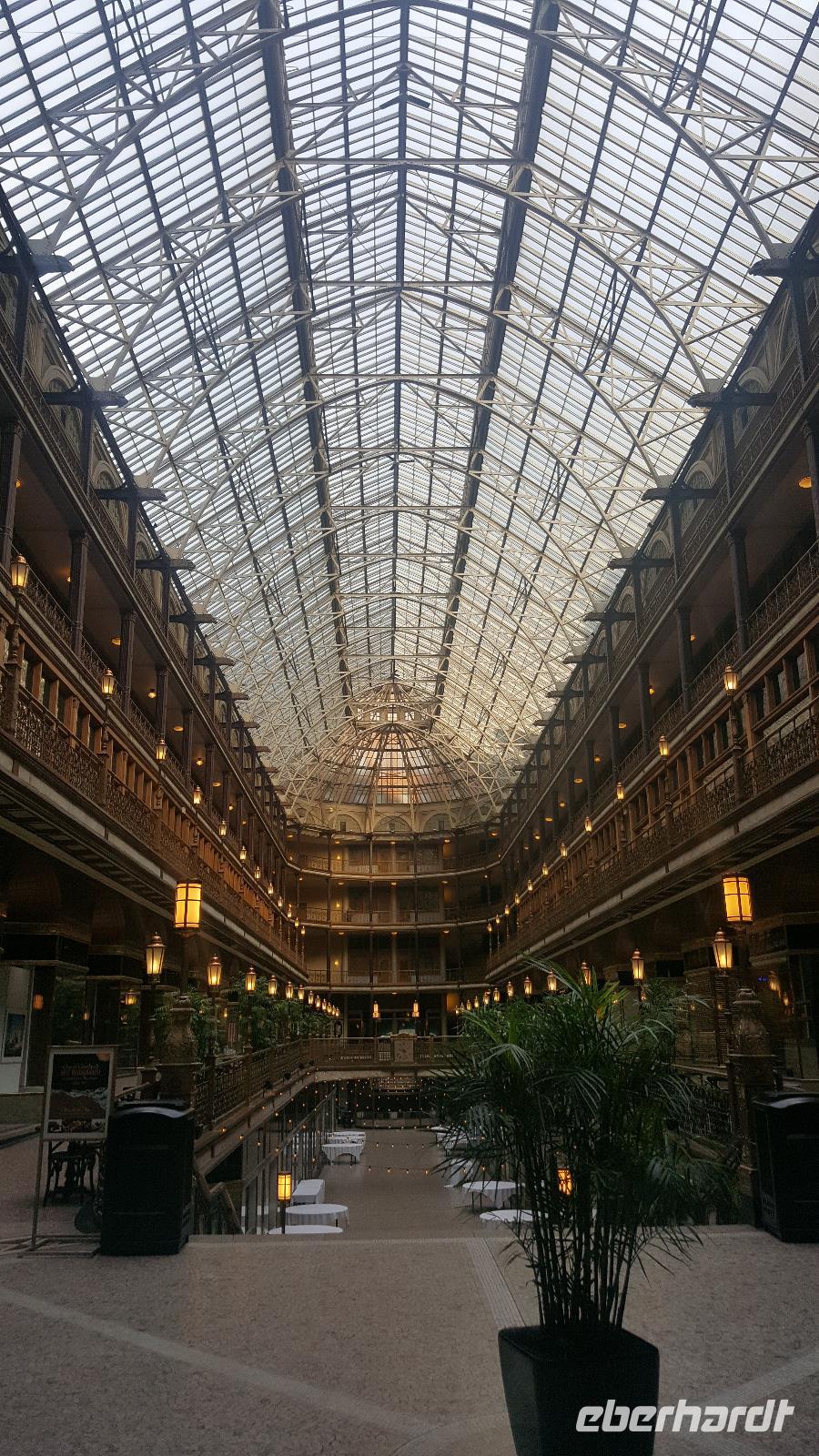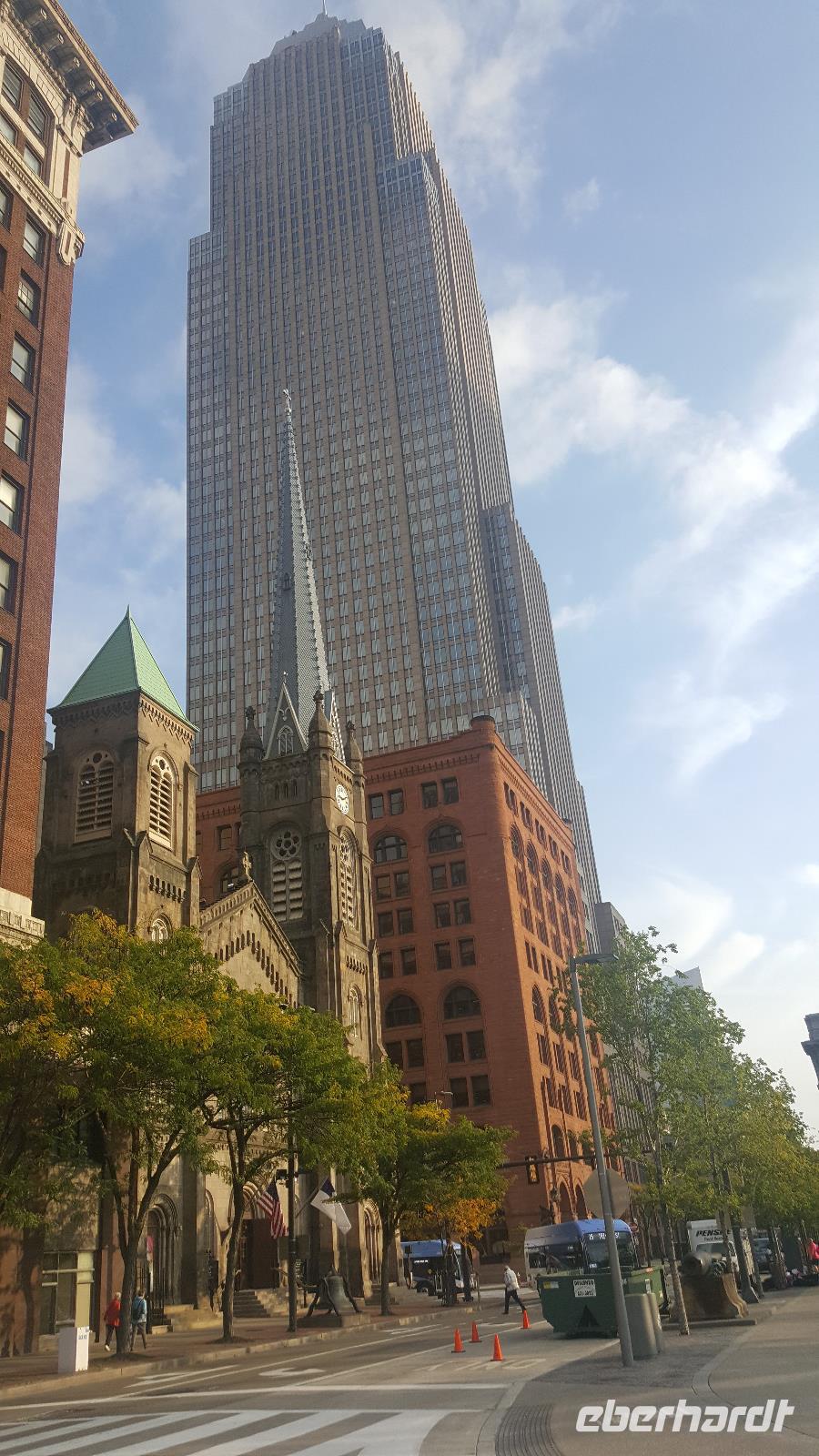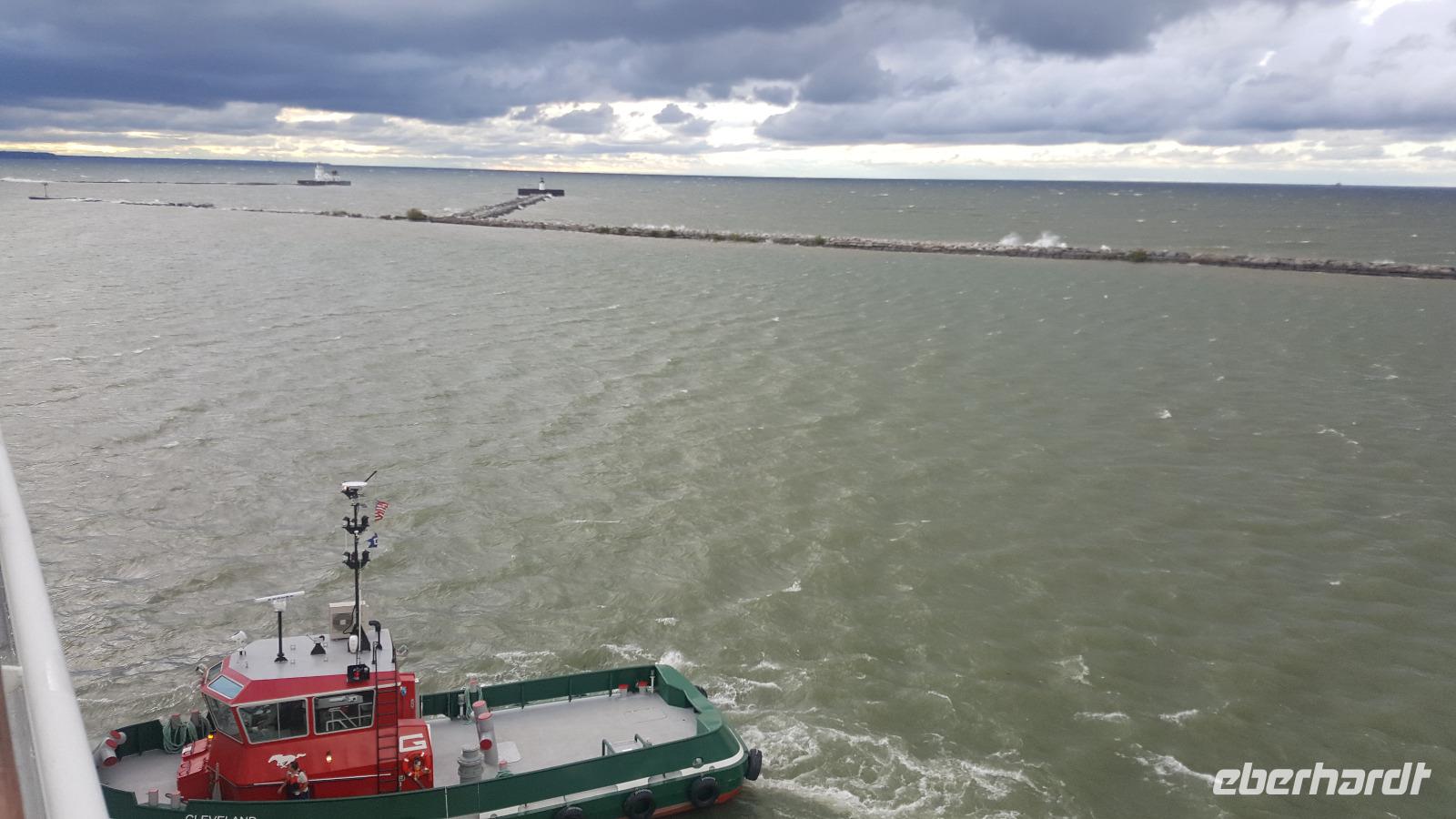 Shuttlebusse bringen uns morgens in die Stadt. Wir sind erstaunt wie viel heute zum Sonntag am Public Square los ist. Doch kein Wunder: Oktober ist der sogenannte Breast Cancer Awareness Month. So startet heute ein Lauf durch die Innenstadt um das Thema Brustkrebs in den Vordergrund zu rücken und um Spenden zu sammeln. Da Sonntag war, machten die meisten Geschäfte allerdings auch erst 12.00 Uhr auf. Wir vertrieben uns dies Zeit in der Innenstadt und bestaunten die schöne Architektur. Vor allem The Arcades war ein wunderschönes Gebäude, sowohl von außen als auch von innen. Ich schlenderte etwas durch das Tower City Center und nach und nach machten auch die Läden auf und so füllte sich das relativ kleine Einkaufcenter. Die Stadt an sich ist nicht sehr alt. Etwas mehr als 200 Jahre sind seit der Gründung vergangen. Die Stadt wurde im 18. Jhd. von Amerikanern und Franzosen als Poststelle genutzt und nach Fertigstellung des Ohio-Kanals wurde sie eine der wichtigsten Handelsposten. Heute besteht der größte Teil der Bevölkerung aus Afro-Amerikanern. Gegen 14.00 Uhr sollten wir abfahren, da sich der Wind allerdings verstärkte, blieben wir ein wenig im Hafen liegen. Während des Vortags über Montreal von Gerrit Aust fuhren wir dann endlich los.