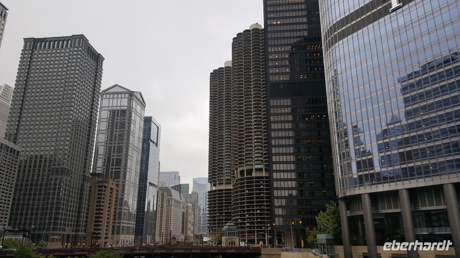Nach einer recht stürmischen Nacht erreichten wir am Morgen Chicago, beziehungsweise eher den Industriehafen südlich von Chicago. Nach unserem Frühstück starteten wir unseren Ausflug in die Millionenmetropole. Nach einer Fahrt durch die südlichen Stadtteile erreichten wir endlich Downtown. Bei unserem ersten Fotostopp sahen wir....fast gar nichts, denn die Hälfte von Chicago hat sich in einer Wolkendecke versteckt. Nun ja, so etwas muss man schließlich auch erlebt haben. Wir fuhren weiter und vorbei am Soldier Field, dem Football-Stadion, dem Shedd Aquarium, dem Millennium Park und natürlich durfte eine Fahrt auf der Magnificent Mile vorbei am Wasserturm auch nicht fehlen. Ein kurzer Fotostopp mitten in der sogenannten Loop beeindruckte uns. Der Name rührt von der Straßenbahnlinie her, die durch die Wolkenkratzer im Zentrum immer im Kreis fährt. Auf unserem Programm stand heute auch noch der Besuch der Aussichtsplattform auf dem Willis Tower - wir haben den Besuch schon ein wenig hinaus gezögert und gehofft, dass die dicke Wolkendecke noch etwas aufzieht. So versuchten wir gegen 13.00 Uhr unser Glück und als wir oben ankamen, sahen wir....wieder nichts. Wir waren leider zu weit oben um eine gute Sicht haben zu können. Für einen kurzen Moment zog sich die Wolkendecke wenig später auf und wir konnten einen kurzen Blick erhaschen. Dieser war allerdings viel zu schnell wieder herum. Ein wenig betrübt machten wir uns wieder auf den Weg nach unten. Im Souvenirladen kauften wir noch ein paar Andenken. Der Bus brachte uns dann anschließend zum Millennium Park wo sich unsere Reiseleiterin Uta von uns verabschiedete. Ich organisierte dann noch für alle die berühmte Chicago Deep Dish Pizza - entweder man mag sie, oder nicht aber auf jeden Fall sollte man sie einmal probiert haben! Dort stieß dann auch meine Freundin Lenzi auf uns, die ich während meiner Zeit als Au Pair in Milwaukee kennengelernt habe. Gemeinsam legten wir unsere Mittagspause ein und unterhielten uns. Als alle fertig waren gingen wir noch zur Bean und machten einige Fotos - diese war wenigstens auch bei diesem Wetter zu erkennen! Wenig später mussten wir auch schon los zur Bahnstation, um mit dem Zug wieder Richtung Schiff zu fahren.