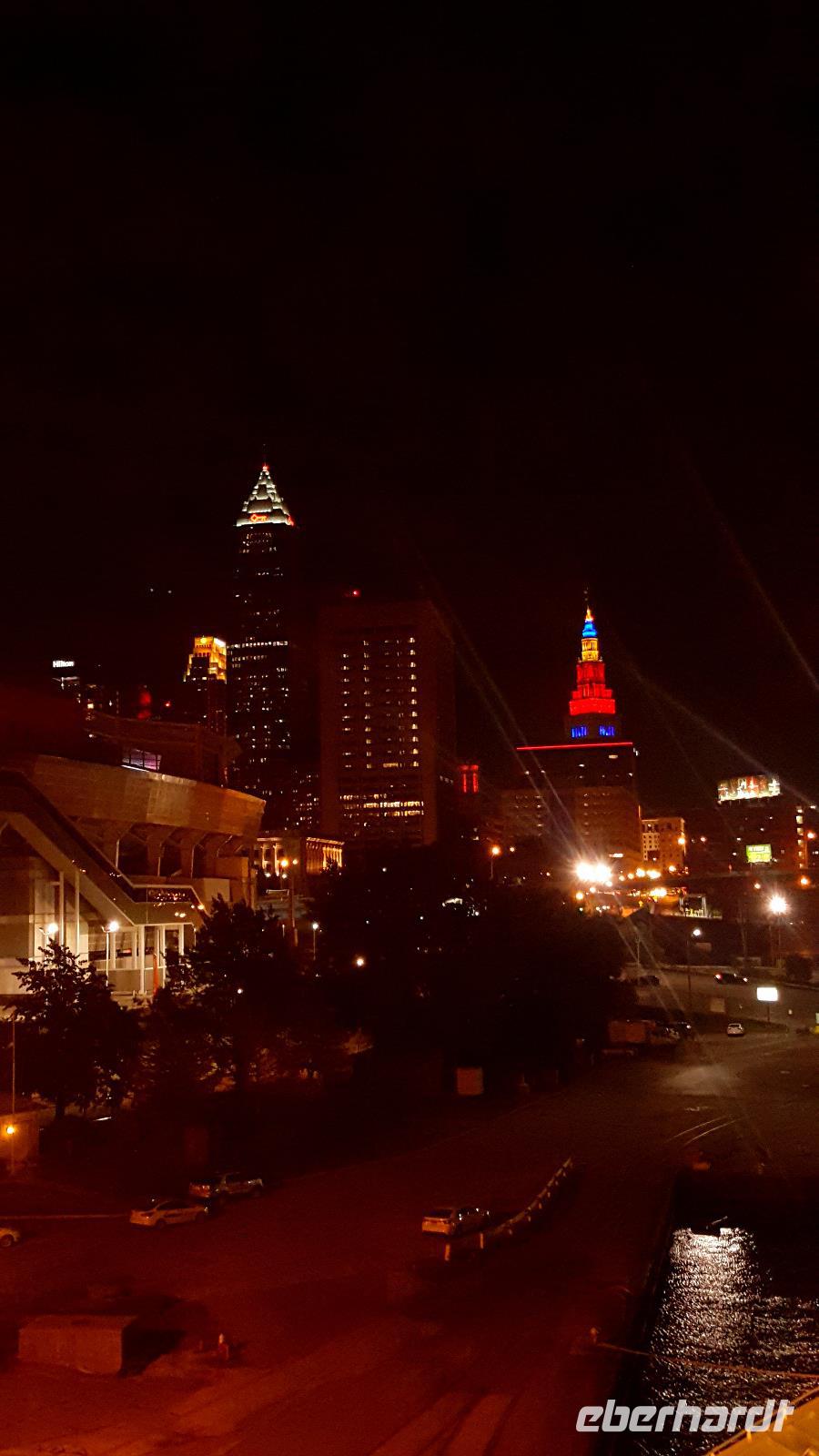 Heute waren wir auf zwei Seetage eingestellt. Allerdings stürmt es sehr über den Wellandkanal sodass sich unser Kapitän entschied, Kingston in Ontario nicht anzufahren. Stattdessen machen wir noch einen Abstecher nach Cleveland im US-Bundesstaat Ohio. Um 17.00 Uhr lädt uns Lektor Gerrit zum Vortrag zu Cleveland ein, sodass wir einen kleinen Überblick über die Stadt haben, die wir heute Abend erreichen werden. Nach dem Abendessen, genauer gesagt um 21.30 Uhr, erreichten wir Cleveland. Von Deck konnten wir das Football-Stadion und einige der schön beleuchteten Hochhäuser sehen.