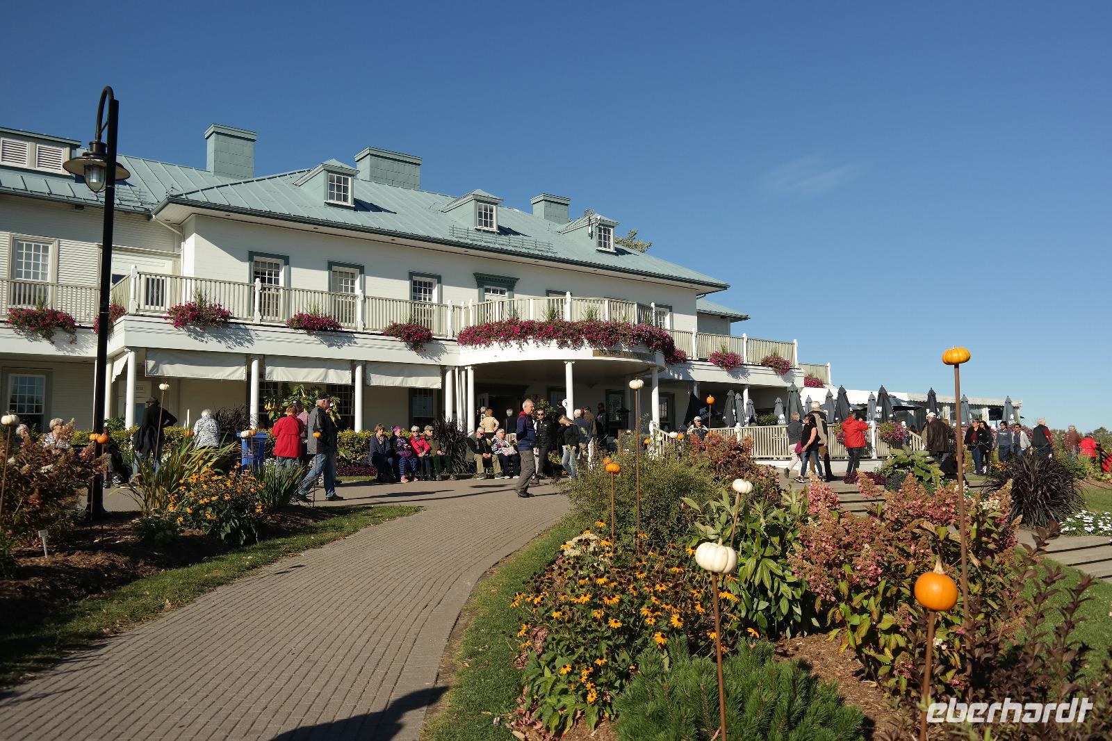 Anschließend fuhren wir dem Regen in Richtung Niagara-On-The-Lake davon. Das kleine Städtchen sah sehr einladend aus und Juan ist glücklicherweise sehr langsam durchgefahren, sodass wir alles in Ruhe sehen konnten und Fotos machen konnten. Danach ging es zurück nach Toronto - da auf dem Highway Stau war, umfuhren wir diesen und Juan nahm die Umleitung entlang der Lakefront. So konnten wir die tollen kleinen Vorstädte von Toronto wie z.B. Oakville oder Missisauga mit vielen großen Häusern und schön angelegten Parkflächen bestaunen. Unserem Reiseleiter Bruno wurde es zeitweise ganz schön Angst da er die Route nicht kannte, die unser Busfahrer fuhr. Doch Juan beruhigte mich stets, dass wir immer noch auf Kurs sind und pünktlich am Schiff ankommen. Und so war es dann auch: Punkt 19.00 Uhr kamen wir am Schiff an und der Regen hat wie auf Knopfdruck auch aufgehört. Abends beim auslaufen konnten wir die beleuchtete Skyline von Toronto noch an uns vorbei ziehen sehen - ein tolles Erlebnis!