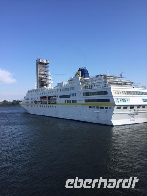 Heute geht es endlich in Richtung Schiff. Auf dem Weg dorthin wechseln sich landschaftliche Eindrücke mit Dörfern, Siedlungen und kleinen Städtchen ab. Nach einer recht kurzweiligen Fahrt treffen wir wieder in Montreal ein. Da liegt sie, fast zum Greifen nahe: Die MS Hamburg. Es erweist sich schon als eine Herausforderung, auf das Schiff zu gelangen. Ein spontaner Streik der zur Gepäckbeförderung eingesetzten Hafenarbeiter produziert einen sehr hektischen und vor allem planlosen Eindruck des Einschiffens. Schließlich haben wir es doch geschafft, endlich in unseren Kabinen zu sein. Ein kurzer Rundgang bringt uns das Schiff näher und dann beginnt ein 17-tägiger Angriff auf unsere bislang gesunde Lebensweise. Die eingesetzten Mittel sind recht einfach: raffiniert zubereitete und vor allem leckere Speisen und das täglich in mehreren Gängen und ohne Rücksicht auf die darin enthaltenen Kalorien. Wir können am ersten Abend nur erahnen, mit wieviel Übergepäck, besser Übergewicht, wir am letzten Tag von Bord gehen werden.