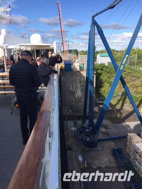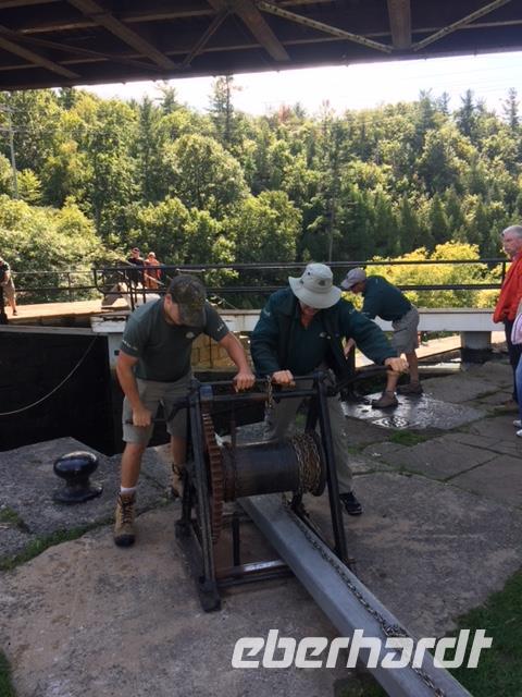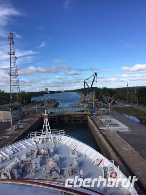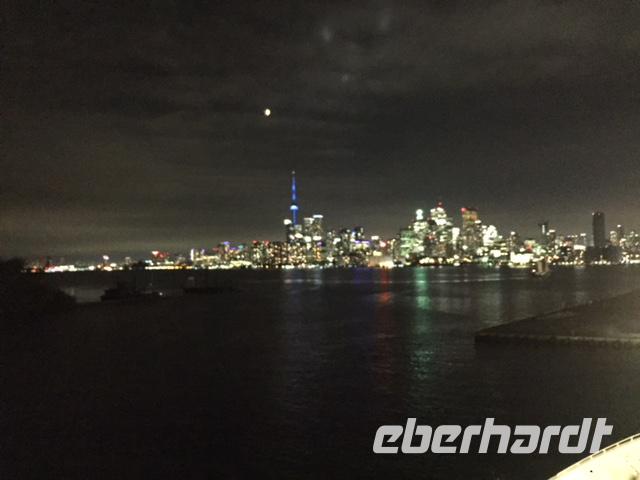 Heute ist in Deutschland Feiertag. Das Schiff selbst erwacht gemächlich und uns steht heute die Passage durch den Wellandkanal bevor. Das bedeutet Präzisionsarbeit für Kapitän und Crew, die mitunter in den 8 zu befahrenden Schleusen nur wenige Zentimeter links und rechts zum Schleusen haben. Es ist schon beeindruckend, wie die Leute am Rande des Kanals Anteil an unserer Durchfahrt haben. Es werden nicht nur viele Fotos geschossen, sondern die Gäste des Schiffes kommen auch mit den begeisterten Zuschauern ins Gespräch. Es sind einfach schöne und nette Momente. Ach ja, da war noch was: Bayerischer Frühschoppen. Ich habe noch niemals einen Frühschoppen erlebt, der auf 45 min. begrenzt wurde. Das war eine der vielen Erfahrungen und Überraschungen, die die MS Hamburg auf ihrer Reise über die Großen Seen bereithielt. Am Abend erreichen wir Toronto. Eine faszinierende Kulisse bietet sich uns.