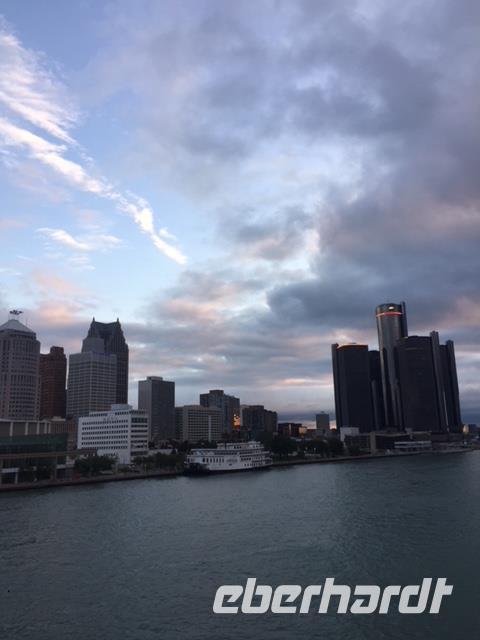 Die Skyline von Detroit ist einfach atemberaubend. Man spürt förmlich welche gewaltige Entwicklung diese Stadt hinter sich gebracht hat. Wolkenkratzer und Glaspaläste dominieren Downtown. Wir bekommen einen kleinen Eindruck vom American Spirit. Gleichzeitig sind natürlich auch die Probleme dieser Metropole augenscheinlich. Die Krise der Automobilindustrie sowie die Auswirkungen der Finanzkrise haben sichtlich Spuren hinterlassen, die sich vor allem im Rückgang der Einwohnerzahl und der damit einhergehenden Entsiedelung ganzer Straßenzüge darstellt. In Detroit könnte man noch mindestens 3 - 4 Tage verbringen, aber unser Schiffsfahrplan drängt zur Weiterfahrt. Am Nachmittag werden wir durch einen Vortrag von Dr. Ludger Feldmann auf unser nächstes Etappenziel Mackinac Island eingestimmt.