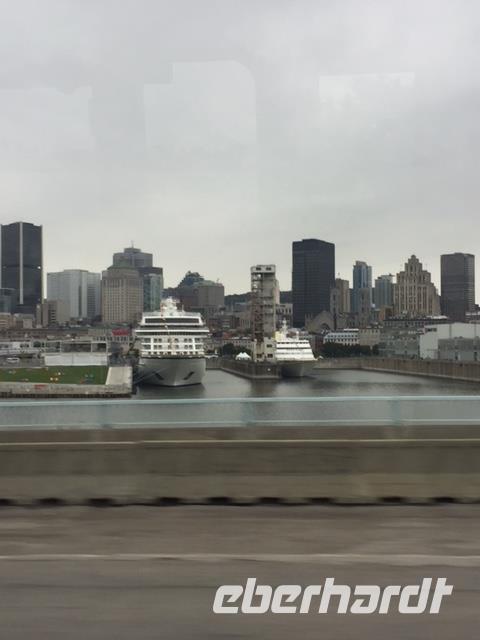 Die Hamburg macht es sich am heutigen Tag im Hafen noch einmal bequem. Wir lernen bei einer Stadtrundfahrt Montreal kennen. Leider hat der Himmel wieder alle seine Schleusen geöffnet und es regnet in Strömen. Dennoch sehen wir viele beeindruckende Seiten der ehemaligen Olympiastadt, die auch immer wieder romantische und reizvolle Ecken und Plätze hat. Das riesige unterirdische Einkaufslabyrinth ist schon beeindruckend. Voller Verblüffung stehen wir plötzlich vor einem Originalteil der Berliner Mauer, an deren Fall man hier auch die Montrealer Einwohner sowie deren Besucher erinnert. Unsere für diesen Abend geplante Lichterfahrt durch Montreal fällt buchstäblich ins Wasser. Eine Unternehmung dieser Art kann man bei solchen Witterungsverhältnissen leider nicht machen. Wir kehren zurück an Bord und haben dort Gelegenheit, Songs von Edith Piaf und Jaques Brel in der Lounge zu lauschen.