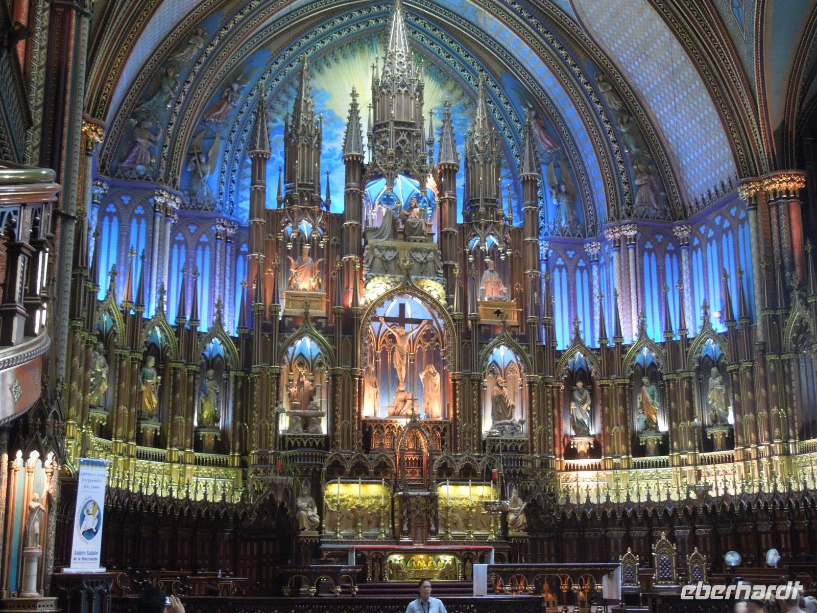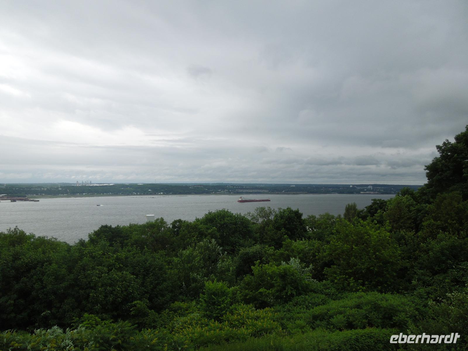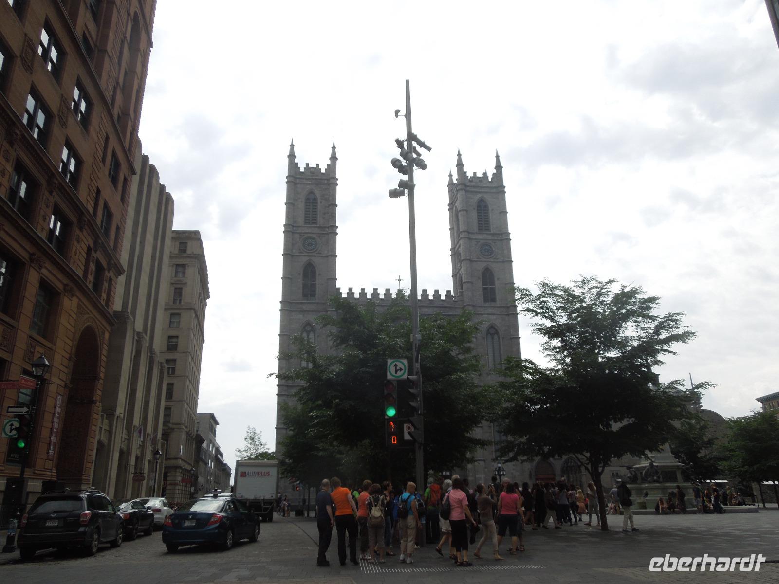 Nach einem ausgiebigen amerikanischen Frühstück, bei dem es unter anderem Rührei und gebratenen Bacon gab, starteten wir mit gepackten Koffern zur Stadtrundfahrt durch Montreal. Dabei begrüßte uns Barbara, unsere sympathische Reiseleiterin für den Osten Kanadas. Zuerst fuhren wir auf den Mount Royal, von dem man einen fantastischen Blick auf die ganze Stadt hatte. Da so gute Sicht und super Wetter war, konnte man sogar das Olympia-Stadion sehen. Auf dem Mount Royal trafen wir ebenfalls drei Polizisten, die auf ihren Pferden vorbei ritten, was man als Reisegruppe nicht oft zu sehen bekommt. Danach fuhren wir wieder in die Stadt, wo wir viele kleine Häuser mit meist drei Wohnungen sahen. Hier ist es üblich, dass jede Wohnung ihren eigenen Treppenaufgang hat und auch ihre eigene Haustür. Die großen und schönen Malereien an einigen Hauswänden konnten wir ebenso bestaunen. Dann liefen wir in die "unterirdische Stadt", hier sind riesige Einkaufszentren mit verschiedenen Läden einfach unter die Erde gebaut worden. Meist haben diese einen direkten Zugang zur U-Bahn-Station, sodass man im kalten Winter oder heißen Sommer nicht unbedingt nach draußen gehen muss. Im Anschluss an unseren Aufenthalt im Untergrund besichtigten wir die imposante römisch-katholische Kathedrale Notre Dame, die sich in der Altstadt Montreals befindet. Nach einer kleinen Mittagspause am Hafen fuhren wir weiter zum Olympia-Stadion, das sich im Osten der Stadt befindet und anlässlich der Olympischen Sommerspiele 1976 errichtet wurde. Nachfolgend fuhren wir weiter nach Quebéc. Auf dem Weg hielten wir in einer kleinen Ortschaft, um uns eine kleine Kirche am Sankt-Lorenz-Strom und einen kleinen Tante-Emma-Laden anzusehen. Es gibt in der Provinz Quebéc auch in vielen kleineren Orten sehr schöne Kirchen. Auf unserer Weiterfahrt zum nächsten Halt ließen wir die endlose Weite Kanadas entlang des Sankt-Lorenz-Stroms auf uns wirken. Wir sahen viele saftig grüne Felder, anmutige Wälder, flinke Eichhörnchen und auch Kühe. Ab und zu fuhren wir durch kleine Ortschaften, die typisch kanadisch aussahen. Nach dem Check-in im Hotel gab es wieder ein gemeinsames Abendessen. Danach probierten ein paar von uns noch den Pool aus.