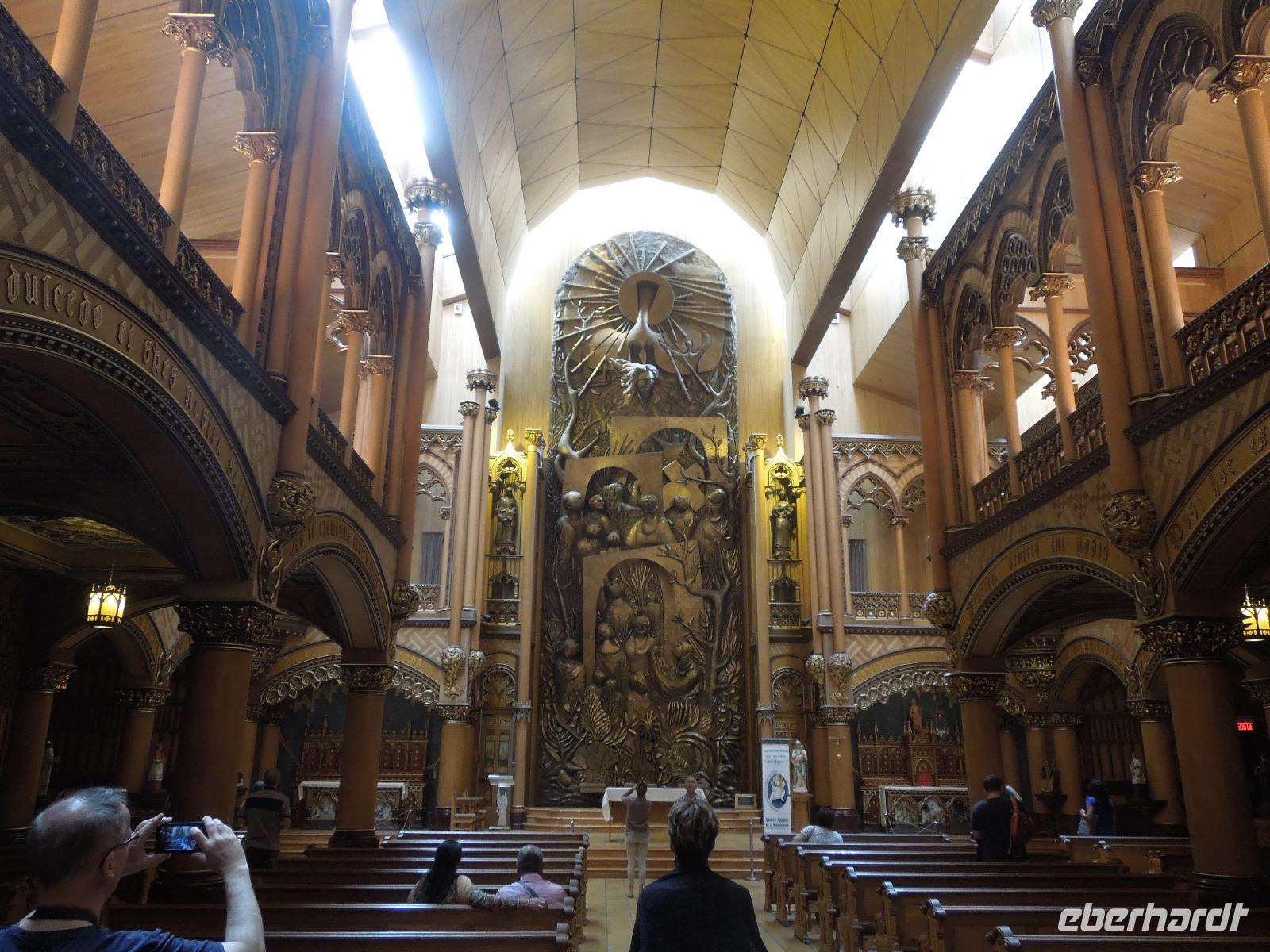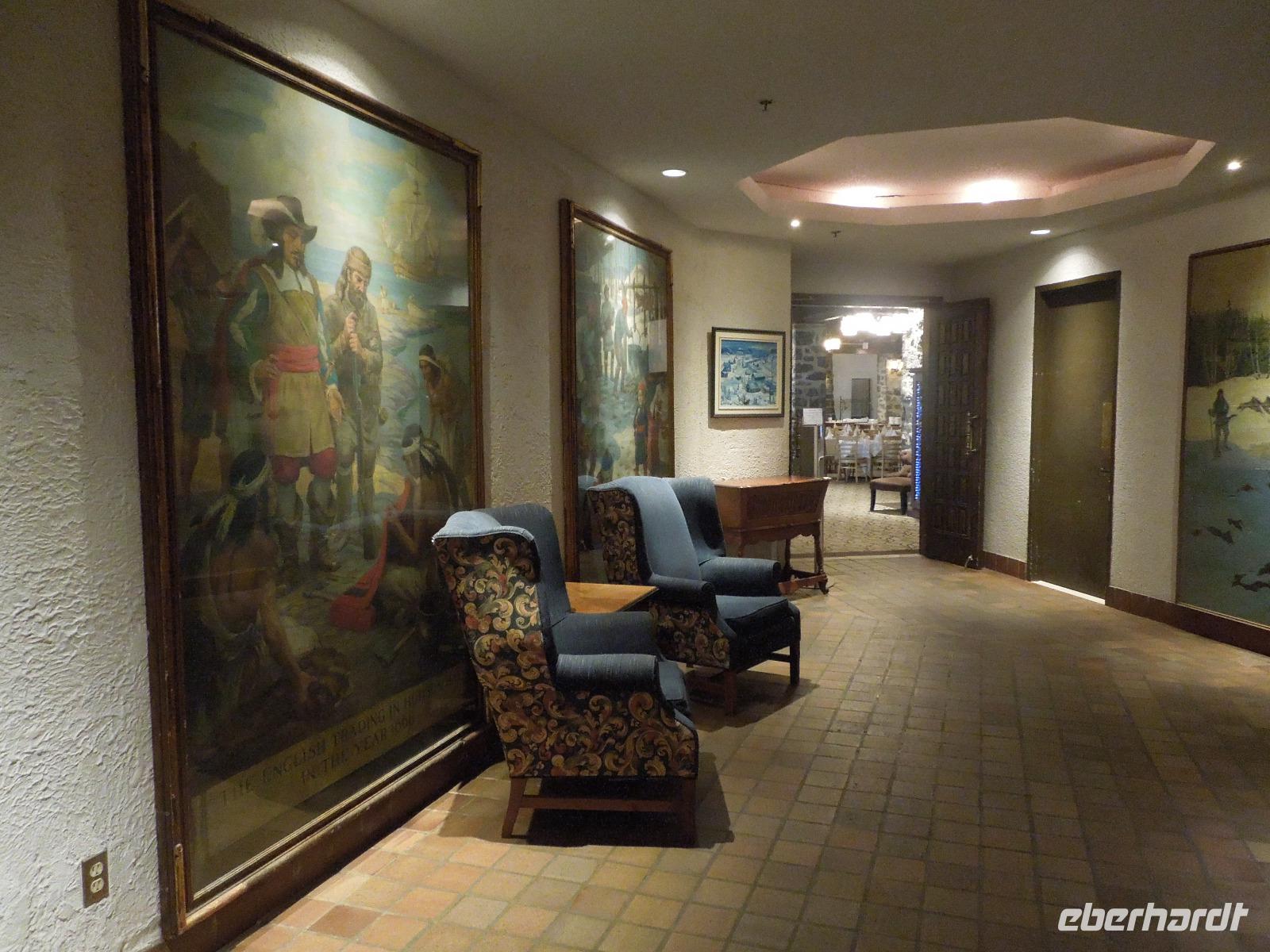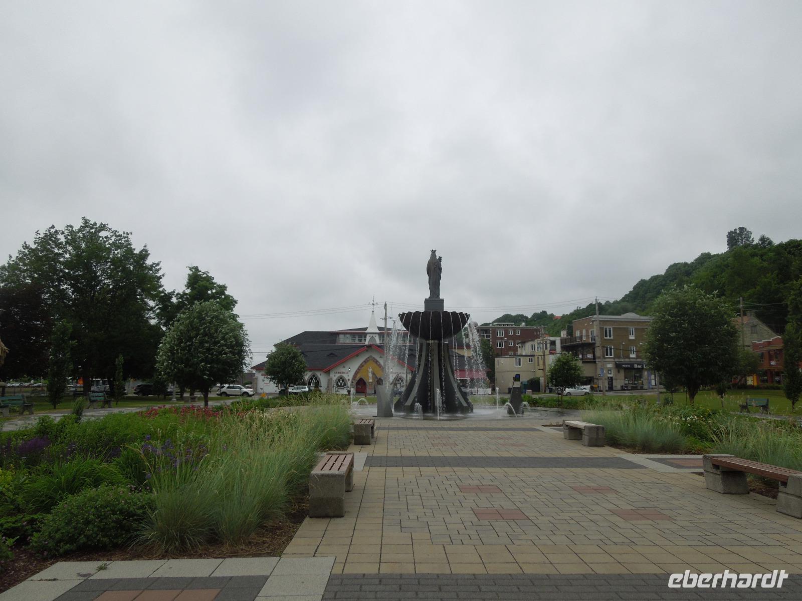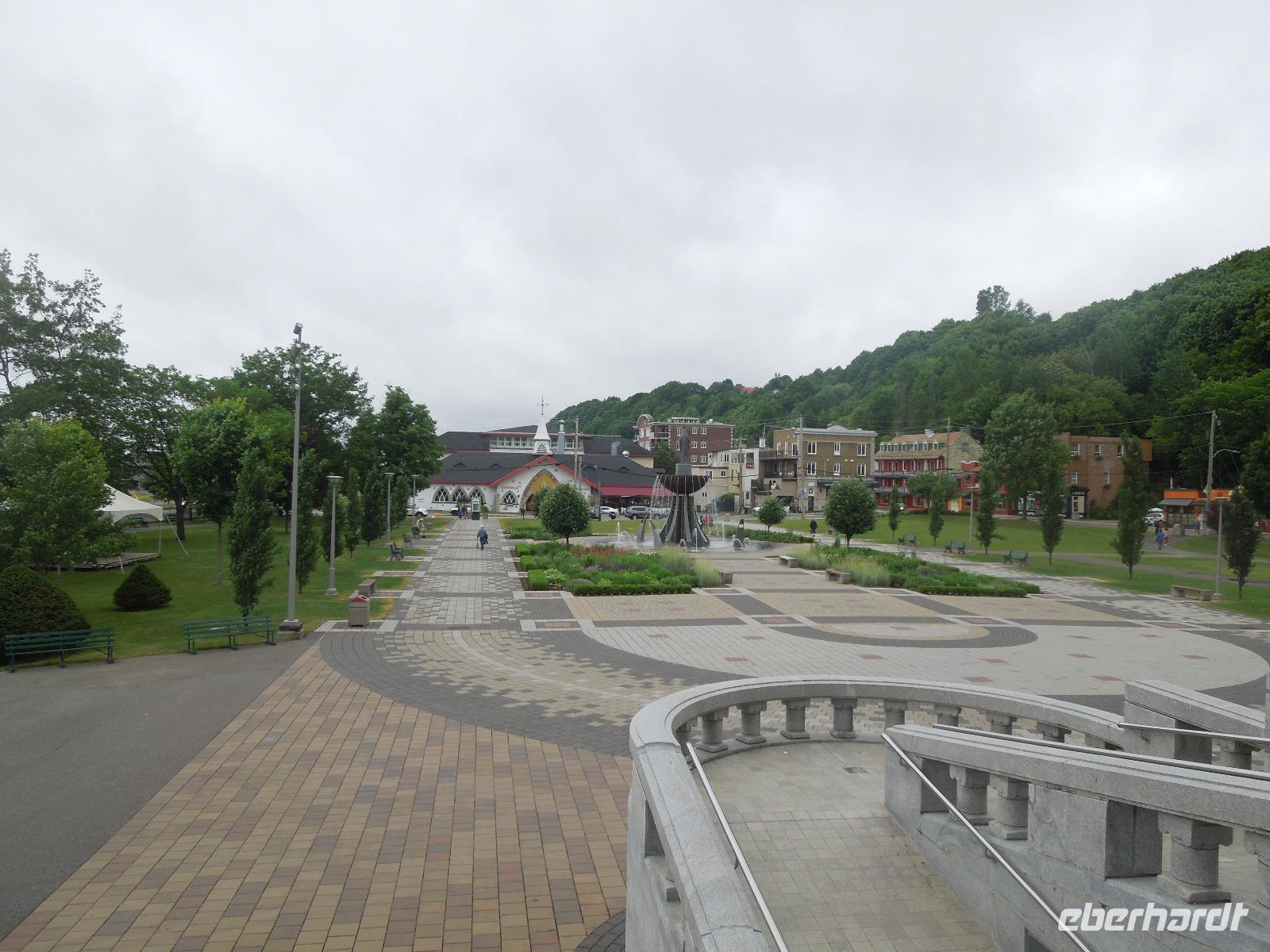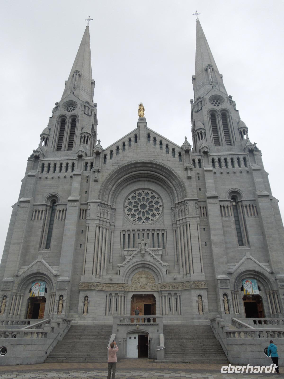 Am Vormittag machten wir uns auf den Weg zu einer Stadtrundfahrt nach Quebéc City. Leider regnete es zuerst an diesem Tag sehr stark, sodass wir erstmal nur Regen-Fotos bekamen. Zum Glück lockerte sich der Himmel kurze Zeit später wieder auf. Trotzdem ging ein starker Wind bei angenehmen Temperaturen. Einen Vorteil hatte das Wetter dann aber doch: Es waren nicht so viele andere Touristen unterwegs. Die Stadtrundfahrt machte die örtliche Reiseleitung Silke, die auch ursprünglich aus Deutschland kam. Zuerst fuhren wir am Regierungsbezirk mit der Nationalversammlung vorbei. Dann führte Silke uns in die Unterstadt. Hier bestaunten wir das Luxushotel Chateau Frontenac von unten, welches zu den Hauptsehenswürdigkeiten der Stadt gehört. Wir kamen auch an der Halsbrechertreppe und einem großen beeindruckenden Wandgemälde vorbei. Später besichtigten wir noch die Stadtmauer und den Batlefields Park, der einst Schauplatz heftiger Kriegsgefechte zwischen Franzosen und Briten war. Wir fuhren entlang der Rue Saint-Jean mit ihren vielen kleinen Geschäften und Restaurants. Sie war die erste Handelsstraße Quebécs. Danach machten wir einen kleinen Fotostopp am Chateau Frontenac, wo es auch die Möglichkeit gab hinein zu gehen. Anschließend hielten wir für eine Mittagspause, in der man beim Bäcker essen konnte oder einen selbst zusammengestellten Crepe oder Poutine probieren konnte. konnte. Es gab natürlich auch überall Souvenirläden. Anschließend fuhren wir zu den Montmorency Wasserfällen. Entlang der gigantischen und beeindruckenden Wasserfälle spazierten wir, um dieses prächtige Naturschauspiel aus vielen verschiedenen Blickwinkeln zu betrachten. Nach einen kleinen Aufenthalt fuhren wir weiter zum Sainte-Anne Canyon. Auch hier gab es wieder einen Rundweg, der über insgesamt drei Brücken führte. Ein paar von uns hüpften auf den Brücken auf und ab, sodass es ganz schön wackelte. Das ist nichts für Leute, die nicht schwindelfrei sind. Nach Bestaunen der gigantischen Wassermassen, die durch die Schlucht fließen, fuhren wir weiter zur Basilika Saint-Anne-de-Baupre, die mit rund einer halben Million Pilgern jährlich zu den bedeutendsten Wallfahrtsorten Nordamerikas gehört. Da wir noch ein wenig Zeit zur Verfügung hatten, legten wir einen kleinen Stopp auf der Insel Ile d' Orleans ein, wo es einen Aussichtspunkt mit Blick auf Quebéc City und eine Chocolaterie gab. Als krönender Abschluss des Tages folgte eine Fahrt mit dem Bus zum sogenannten "Sugar Shack", um alles rund um die Produktion von Ahornprodukten zu erfahren. Hier gab es natürlich auch die Möglichkeit Produkte, wie z.B. Ahornsirup oder Ahornbutter, zu kaufen. Bei einem Abendessen, bei dem wir fast alles mit Ahornsirup probiert hatten (Fleisch, Kartoffeln, Suppe, Eierkuchen), trafen wir auch ein paar amerikanische Schulgruppen. Zum Schluss konnten wir uns noch selbst "gedrehte", süße und klebrige Ahorn-Toffeys machen. Dabei wird Ahornsirup auf Eis gegossen, ein Holzstiel reingelegt, kurz gewartet, der Ahornsirup aufgewickelt und dann hat man eine Art "Ahornsirup am Stiel" - sehr lecker. Heute kamen wir relativ spät wieder im Hotel an.
