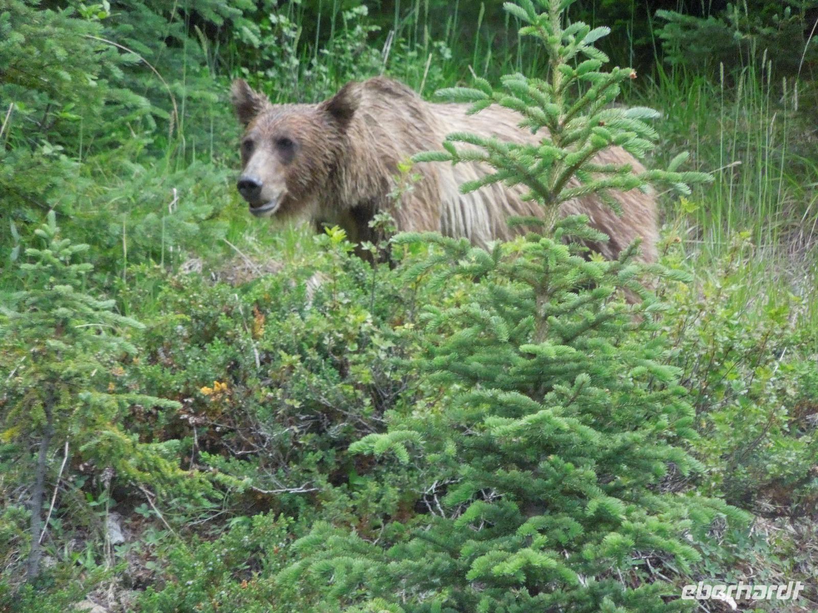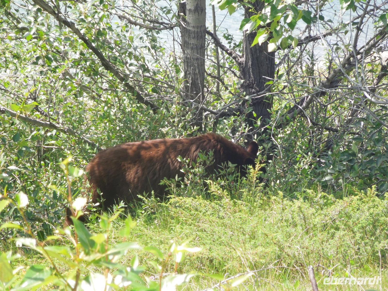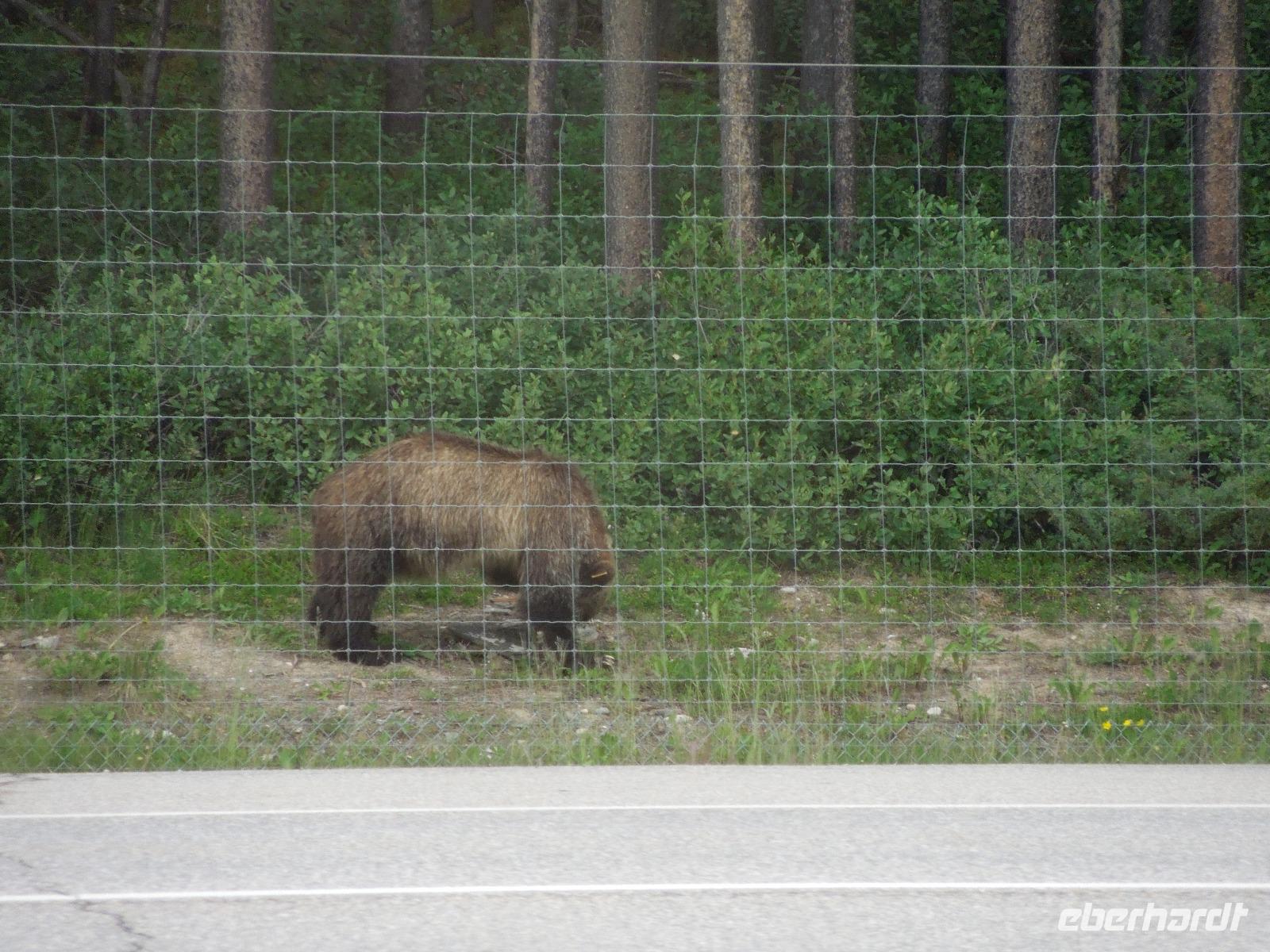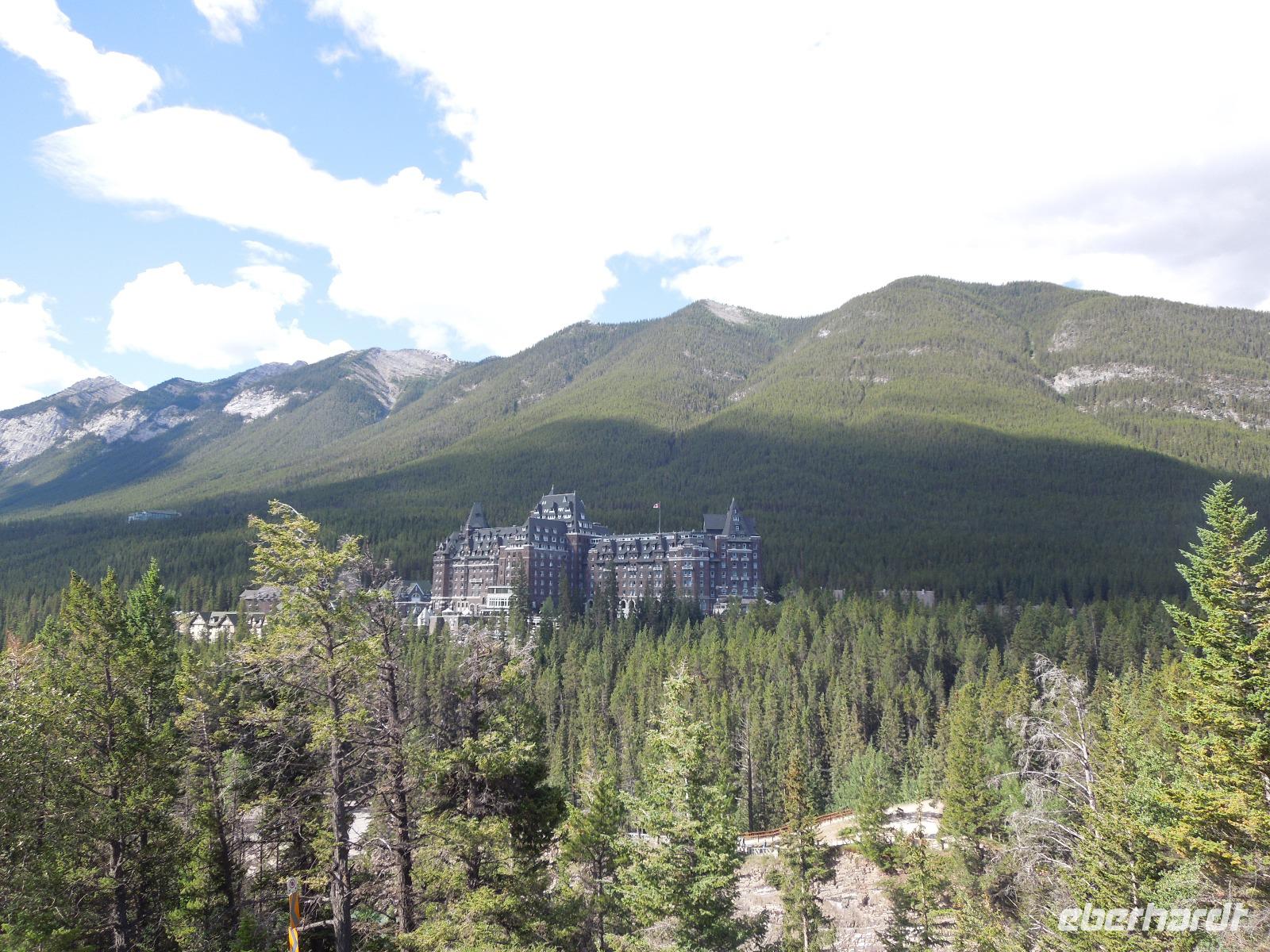 Nach einem gemütlichen Frühstück fuhren wir zuerst zum Banff Springs Hotel, welches wir besichtigten. Das Luxushotel ist ein ehemaliges Eisenbahnhotel der Canadian Pacific Railway und liegt spektakulär in den Rocky Mountains. Vom Hotel aus liefen wir zu den kleinen Bow Wasserfällen. Danach hielten wir für einen kleinen Fotostopp am Surprise View Point, von dem man freie Sicht auf das Banff Springs Hotel hatte. Auch hier begrüßte uns wieder ein kleines flinkes Streifenhörnchen. Die Tierchen schienen überall zu sein. Im Anschluss daran fuhren wir zum Johnston Canyon, einer Schlucht, die durch den Johnston Creek geformt wird. Hier wanderten wir zu zwei verschiedenen Wasserfällen, machten einige Fotos und ließen die wunderbare Natur auf uns wirken. Unsere Mittagspause verbrachten wir auch gleich am Johnston Canyon. Ursprünglich wollten wir als nächstes zum Moraine Lake. Aber als es anfing zu regnen, drehten wir um und fuhren in den Yoho-Nationalpark, der bereits in der Provinz British Columbia liegt und 1.310 Quadratkilometer umfasst. Diese Entscheidung war sehr gut, denn wir sahen auf dem Weg einen Schwarzbären und Bergziegen, die wir wunderbar fotografieren konnten. Wir machten einen Halt an den Spiral Tunnels und hatten auch hier Glück, denn wir konnten sehen wie gerade ein drei Kilometer langer Zug durch die Tunnel fuhr. Manche Touristen warteten hier Ewigkeiten und sahen keinen Zug. Anschließend besuchten wir den Emerald Lake, der größte von Yohos Seen. Auch hier schlenderten wir wieder ein wenig am See entlang, bis uns ein kleiner Regenschauer überraschte. Auf dem Rückweg zum Hotel präsentierte sich uns am anderen Straßenrand ein prächtiger Grizzly, der gerade auf Nahrungssuche war. Da dieser ganz gemächlich am Zaun entlang ging, stellte er ein fantastisches Fotomotiv dar. Wieder in Banff angekommen, blieb Zeit für eigene Unternehmungen.