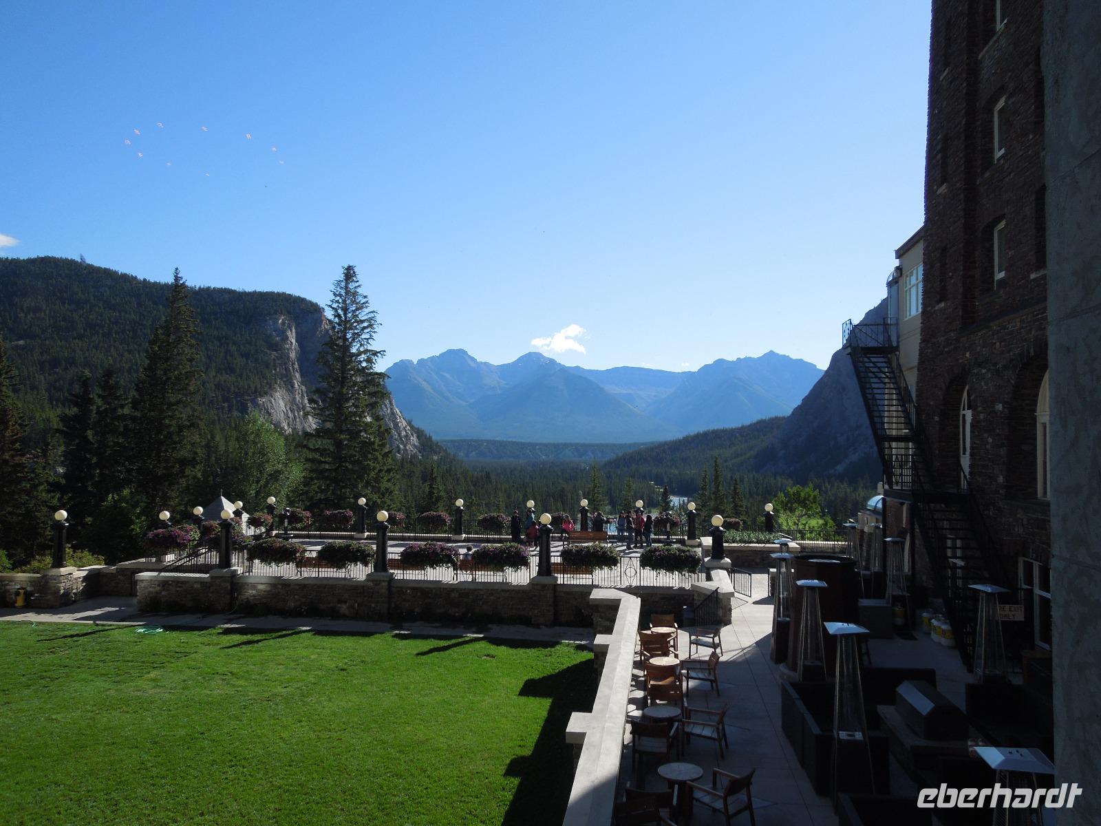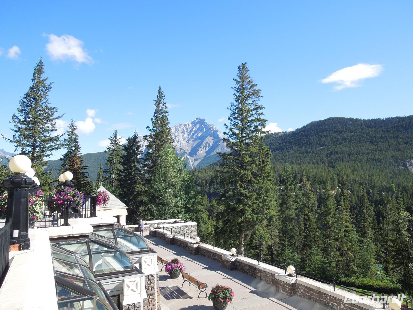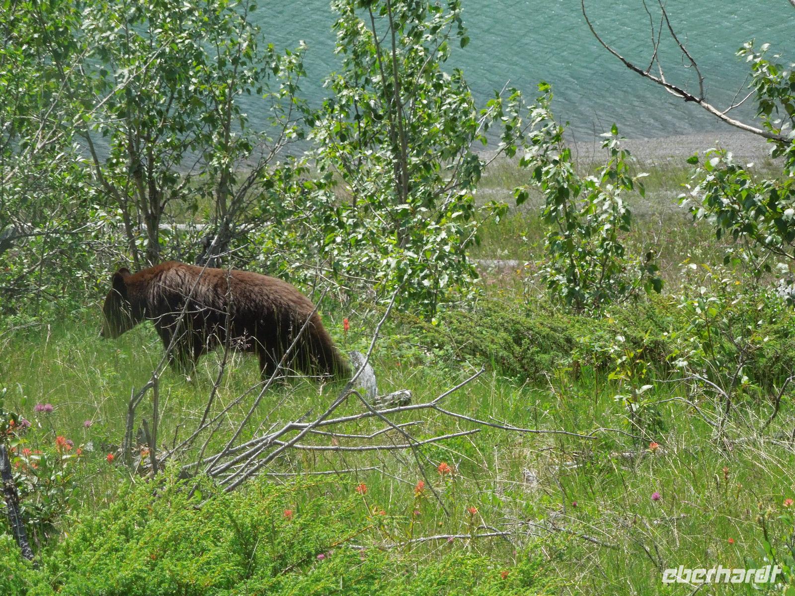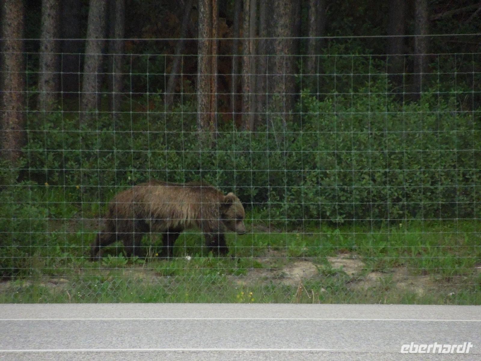 Nach einem gemütlichen Frühstück fuhren wir zuerst zum Banff Springs Hotel, welches wir besichtigten. Das Luxushotel ist ein ehemaliges Eisenbahnhotel der Canadian Pacific Railway und liegt spektakulär in den Rocky Mountains. Vom Hotel aus liefen wir zu den kleinen Bow Wasserfällen. Danach hielten wir für einen kleinen Fotostopp am Surprise View Point, von dem man freie Sicht auf das Banff Springs Hotel hatte. Auch hier begrüßte uns wieder ein kleines flinkes Streifenhörnchen. Die Tierchen schienen überall zu sein. Im Anschluss daran fuhren wir zum Johnston Canyon, einer Schlucht, die durch den Johnston Creek geformt wird. Hier wanderten wir zu zwei verschiedenen Wasserfällen, machten einige Fotos und ließen die wunderbare Natur auf uns wirken. Unsere Mittagspause verbrachten wir auch gleich am Johnston Canyon. Ursprünglich wollten wir als nächstes zum Moraine Lake. Aber als es anfing zu regnen, drehten wir um und fuhren in den Yoho-Nationalpark, der bereits in der Provinz British Columbia liegt und 1.310 Quadratkilometer umfasst. Diese Entscheidung war sehr gut, denn wir sahen auf dem Weg einen Schwarzbären und Bergziegen, die wir wunderbar fotografieren konnten. Wir machten einen Halt an den Spiral Tunnels und hatten auch hier Glück, denn wir konnten sehen wie gerade ein drei Kilometer langer Zug durch die Tunnel fuhr. Manche Touristen warteten hier Ewigkeiten und sahen keinen Zug. Anschließend besuchten wir den Emerald Lake, der größte von Yohos Seen. Auch hier schlenderten wir wieder ein wenig am See entlang, bis uns ein kleiner Regenschauer überraschte. Auf dem Rückweg zum Hotel präsentierte sich uns am anderen Straßenrand ein prächtiger Grizzly, der gerade auf Nahrungssuche war. Da dieser ganz gemächlich am Zaun entlang ging, stellte er ein fantastisches Fotomotiv dar. Wieder in Banff angekommen, blieb Zeit für eigene Unternehmungen.
