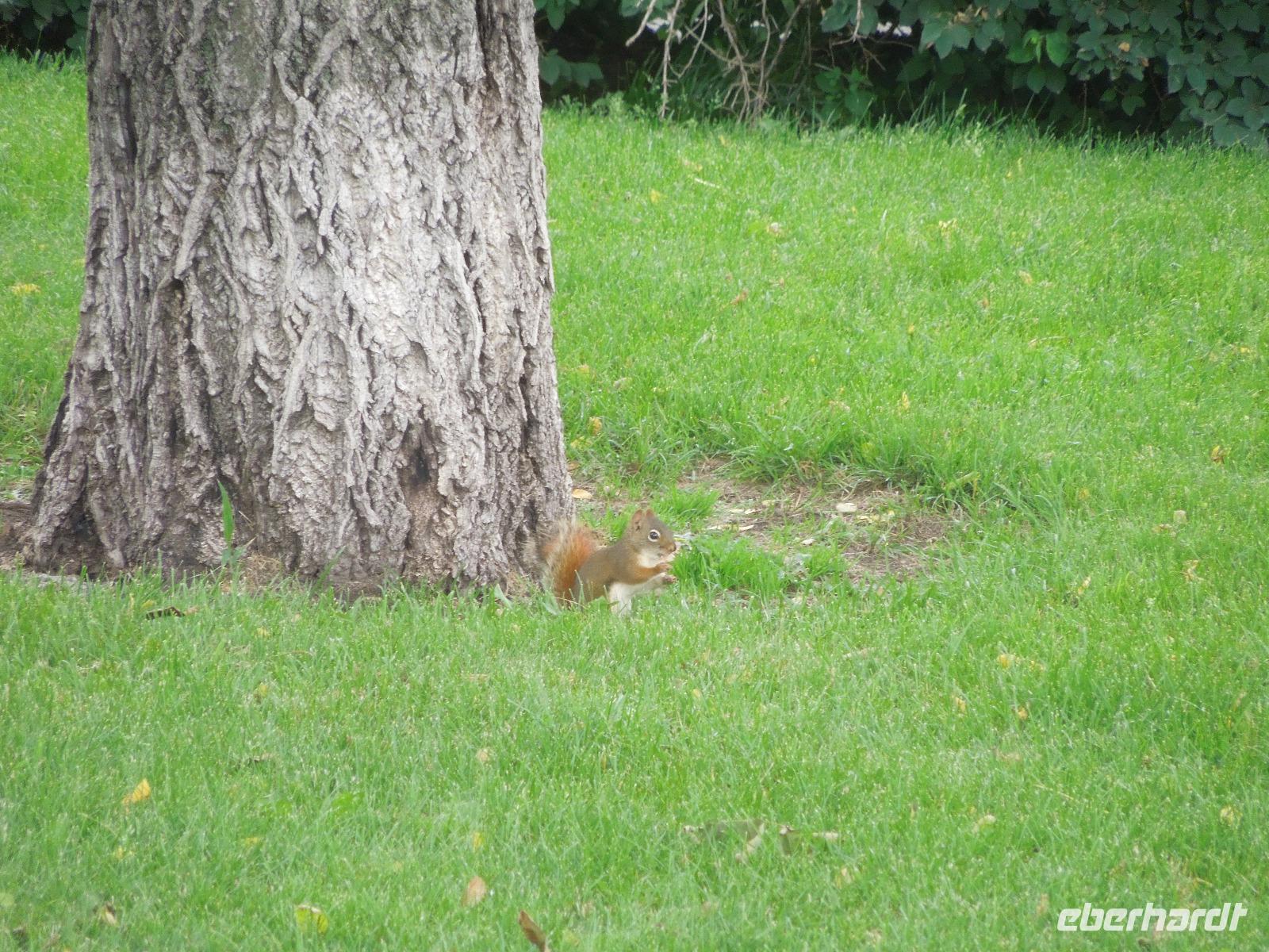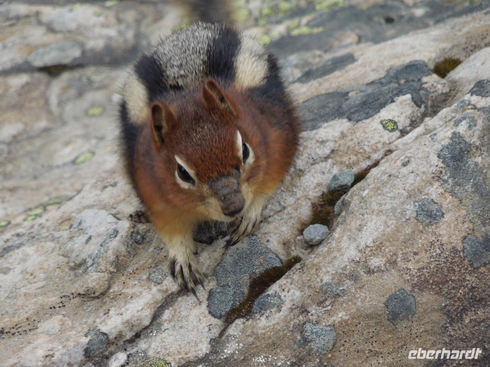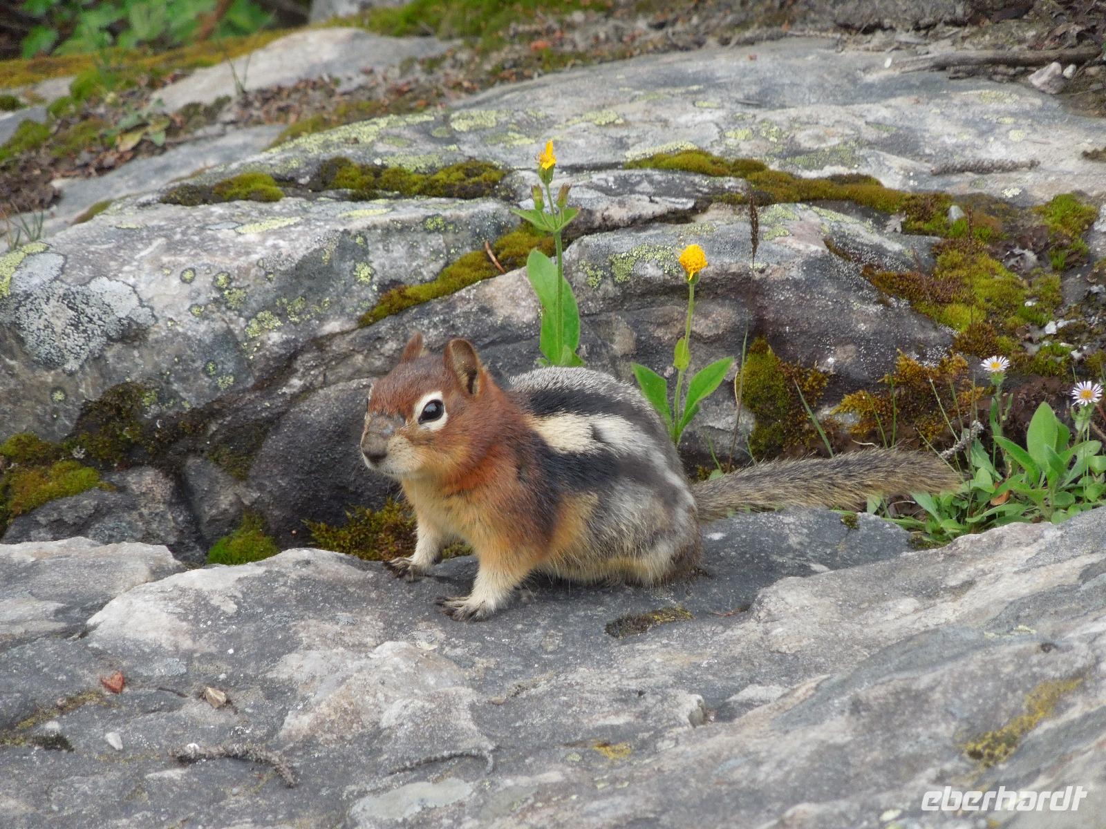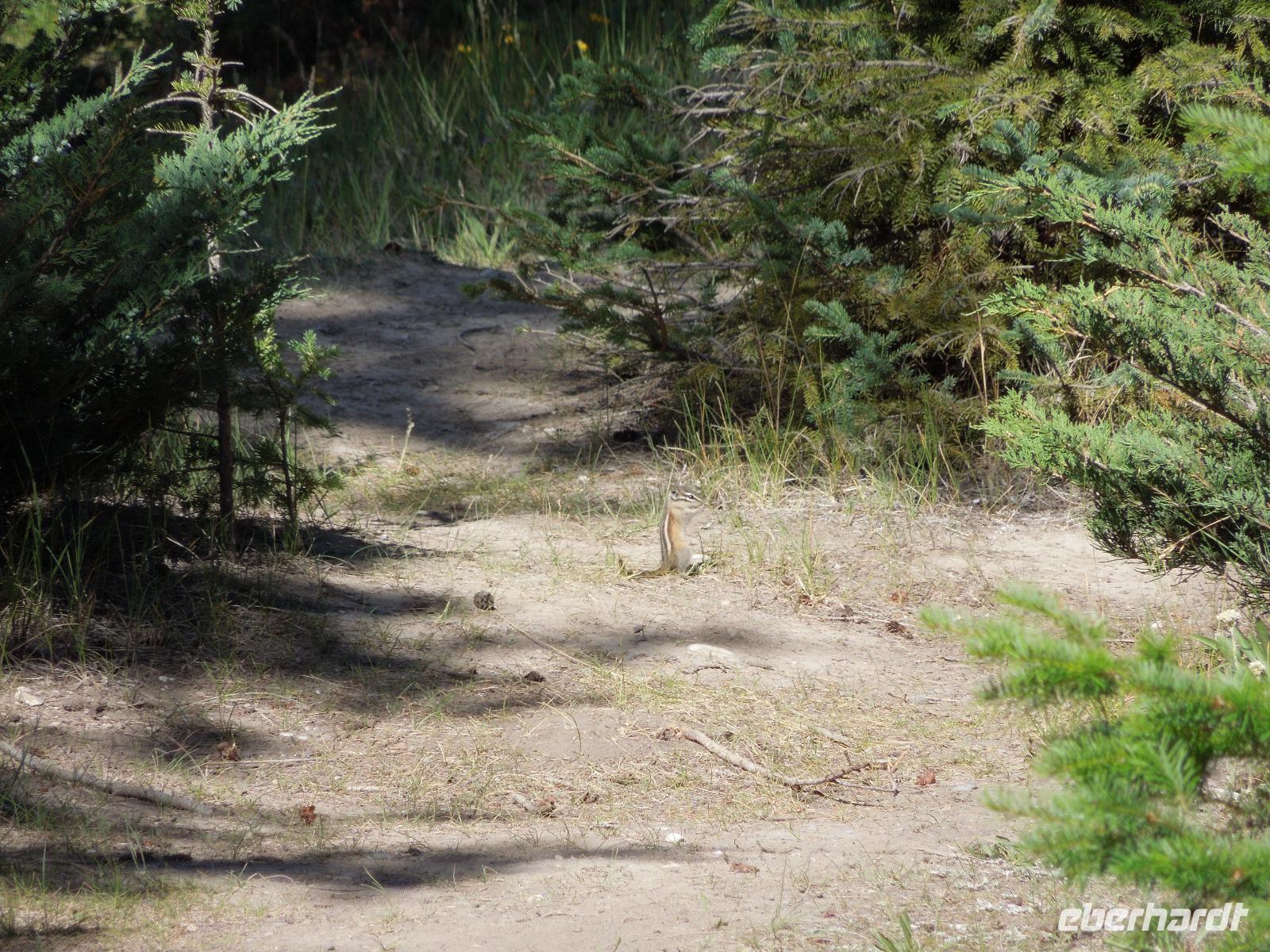 Nach einem gemütlichen Frühstück fuhren wir zuerst zum Banff Springs Hotel, welches wir besichtigten. Das Luxushotel ist ein ehemaliges Eisenbahnhotel der Canadian Pacific Railway und liegt spektakulär in den Rocky Mountains. Vom Hotel aus liefen wir zu den kleinen Bow Wasserfällen. Danach hielten wir für einen kleinen Fotostopp am Surprise View Point, von dem man freie Sicht auf das Banff Springs Hotel hatte. Auch hier begrüßte uns wieder ein kleines flinkes Streifenhörnchen. Die Tierchen schienen überall zu sein. Im Anschluss daran fuhren wir zum Johnston Canyon, einer Schlucht, die durch den Johnston Creek geformt wird. Hier wanderten wir zu zwei verschiedenen Wasserfällen, machten einige Fotos und ließen die wunderbare Natur auf uns wirken. Unsere Mittagspause verbrachten wir auch gleich am Johnston Canyon. Ursprünglich wollten wir als nächstes zum Moraine Lake. Aber als es anfing zu regnen, drehten wir um und fuhren in den Yoho-Nationalpark, der bereits in der Provinz British Columbia liegt und 1.310 Quadratkilometer umfasst. Diese Entscheidung war sehr gut, denn wir sahen auf dem Weg einen Schwarzbären und Bergziegen, die wir wunderbar fotografieren konnten. Wir machten einen Halt an den Spiral Tunnels und hatten auch hier Glück, denn wir konnten sehen wie gerade ein drei Kilometer langer Zug durch die Tunnel fuhr. Manche Touristen warteten hier Ewigkeiten und sahen keinen Zug. Anschließend besuchten wir den Emerald Lake, der größte von Yohos Seen. Auch hier schlenderten wir wieder ein wenig am See entlang, bis uns ein kleiner Regenschauer überraschte. Auf dem Rückweg zum Hotel präsentierte sich uns am anderen Straßenrand ein prächtiger Grizzly, der gerade auf Nahrungssuche war. Da dieser ganz gemächlich am Zaun entlang ging, stellte er ein fantastisches Fotomotiv dar. Wieder in Banff angekommen, blieb Zeit für eigene Unternehmungen.