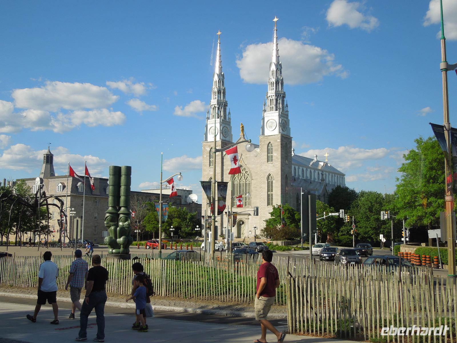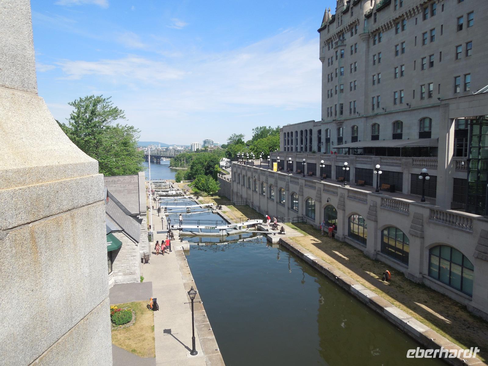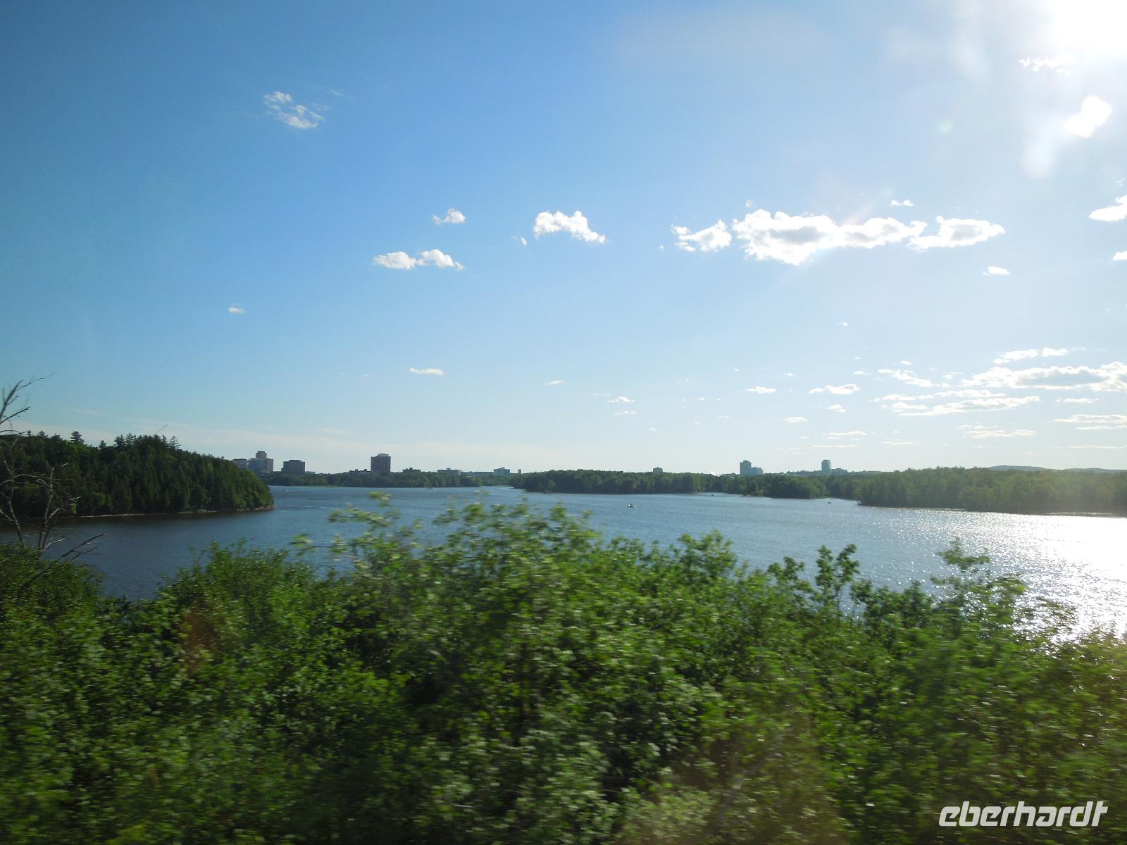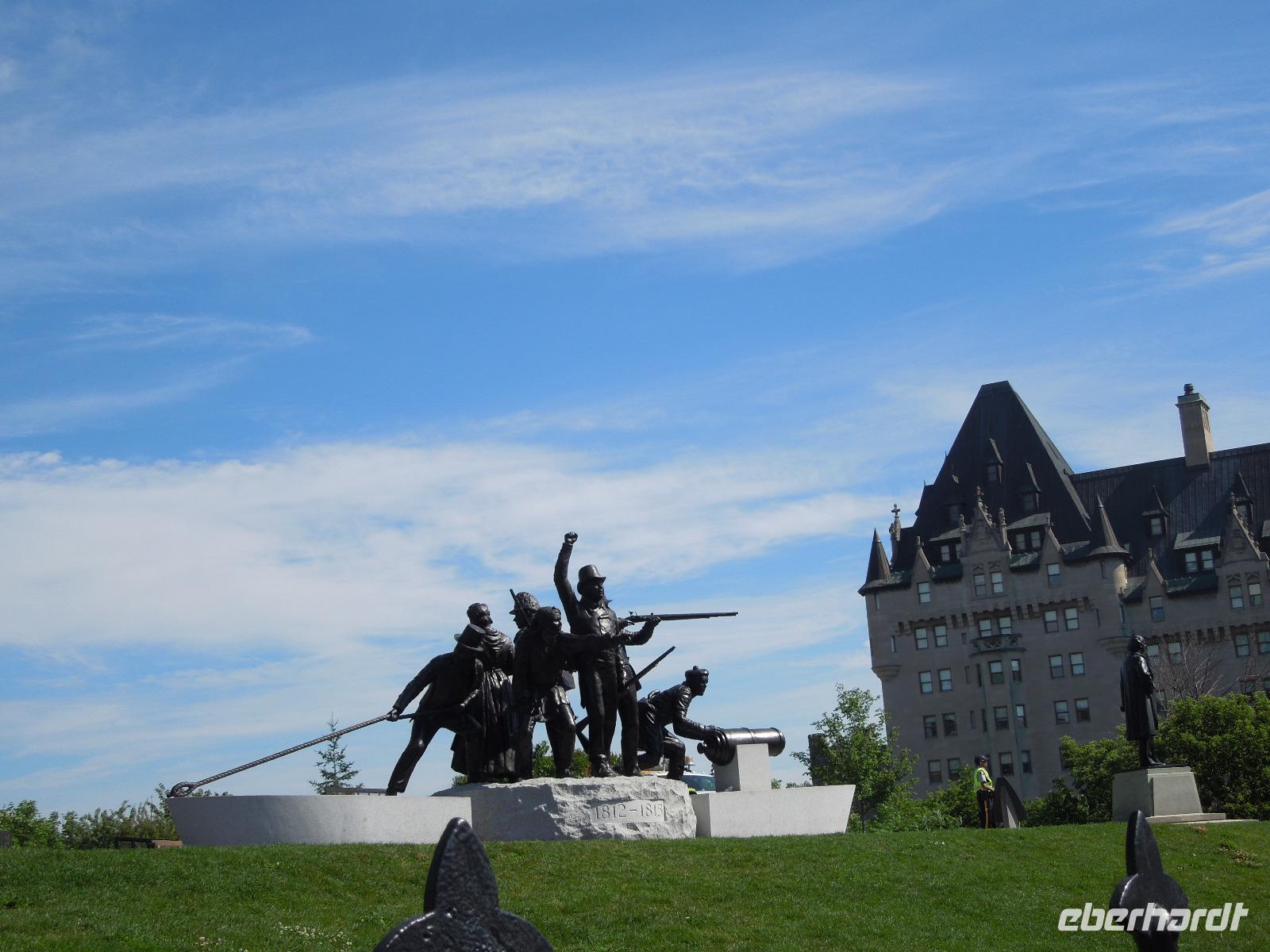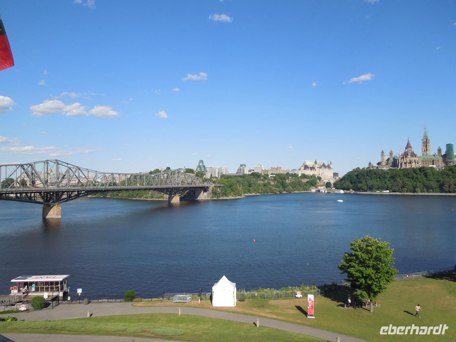 Nach dem Beladen des Busses fuhren wir in Richtung Ottawa. Wir ließen die atemberaubende Landschaft Kanadas einige Zeit an uns vorbeiziehen bis wir gegen Mittag das Fairmont Chateau Montebello erreichten. Wir genossen die schöne Anlage am Ottawa-Fluss und nahmen dort auch unser Mittagessen ein. Es gab eine exzellente Auswahl am Buffet und das Essen war wirklich köstlich. Nachdem wir uns satt gegessen hatten, fuhren wir nur ein paar Minuten zum Omega Wildlife Park. Nur mit dem Bus oder Auto war die Durchfahrt gestattet. Aussteigen durfte man nur an wenigen Stellen. Wir bekamen am Anfang einige Möhren, mit denen wir aus der Bustür heraus die hungrigen Wapitis fütterten. Diese wussten genau, dass es in jedem Fahrzeug Essen gibt. An einem der Stopps, wo man aussteigen durfte, gab es sogar Rehe, die man aus der Hand füttern konnte. Im Park hatten wir wirklich Glück, denn wir sahen viele Tiere, die sich sonst nicht immer zeigen: Coyoten, Büffel, Elche, Schwarzbären, Polarfüchse und Arktische Wölfe. Nach dieser erlebnisreichen Tour durch den Park fuhren wir weiter in die Hauptstadt Kanadas - Ottawa. Diese liegt im östlichen Teil der Provinz Ontario am Fluss Ottawa. Da am nächsten Tag, der Nationalfeiertag Kanadas war, machten wir gleich heute einen Teil der Stadtrundfahrt und sahen unter anderem das Regierungsviertel. Am bekannten Byward Market, legten wir einen Stopp für das Abendessen ein. Hier gab es viele kleine Restaurants, Souvenirgeschäfte und Stände. Am Museum für kanadische Geschichte wollten wir unser Gruppenfoto machen, da man hier einen sehr schönen Hintergrund hatte. Da stellten sich glatt ein paar Jugendliche dazu, die dort ihren Abschlussball feierten und posierten mit uns vor der Kamera. Die Kanadier sind wirklich sehr offen und freundlich.