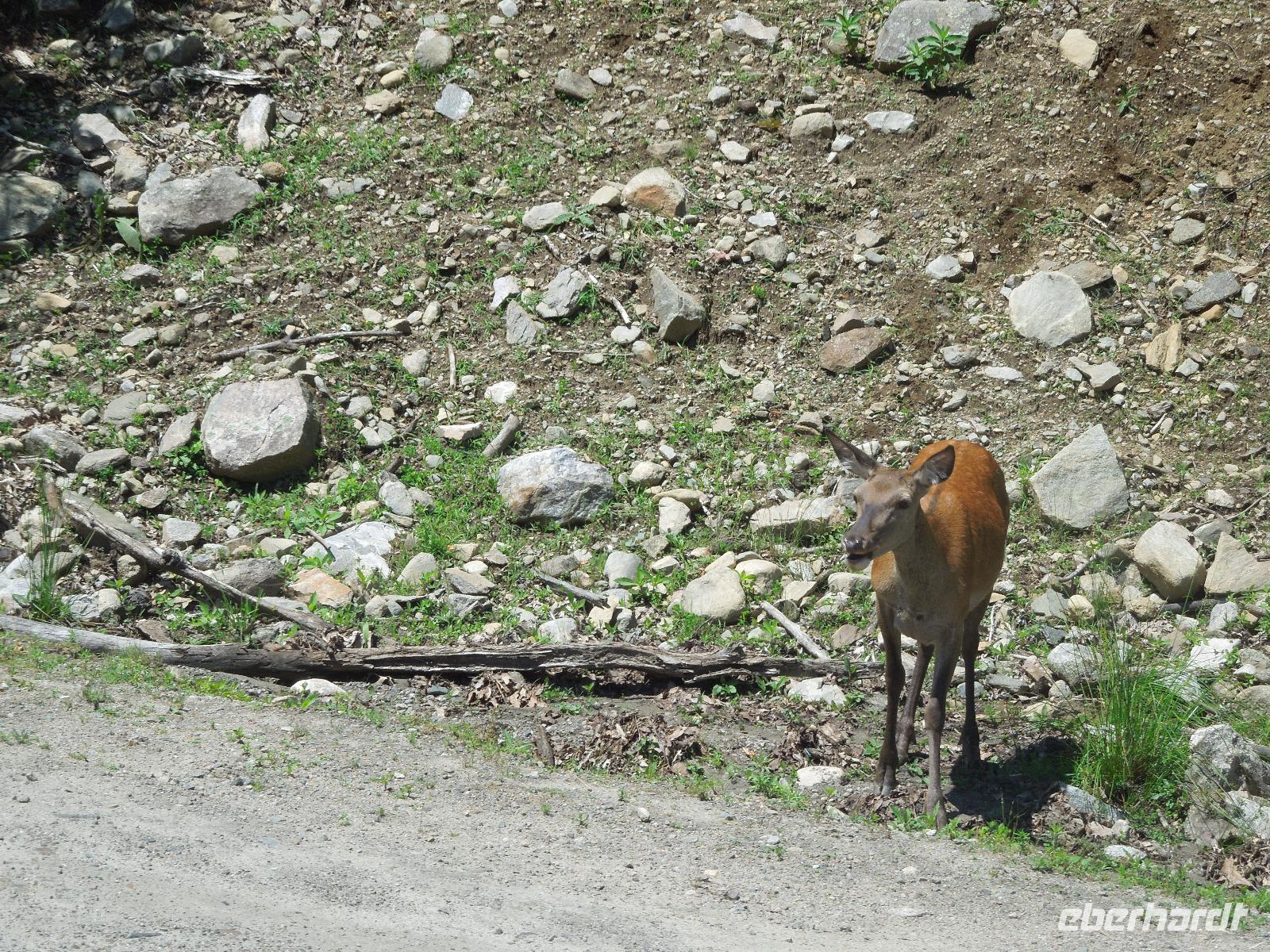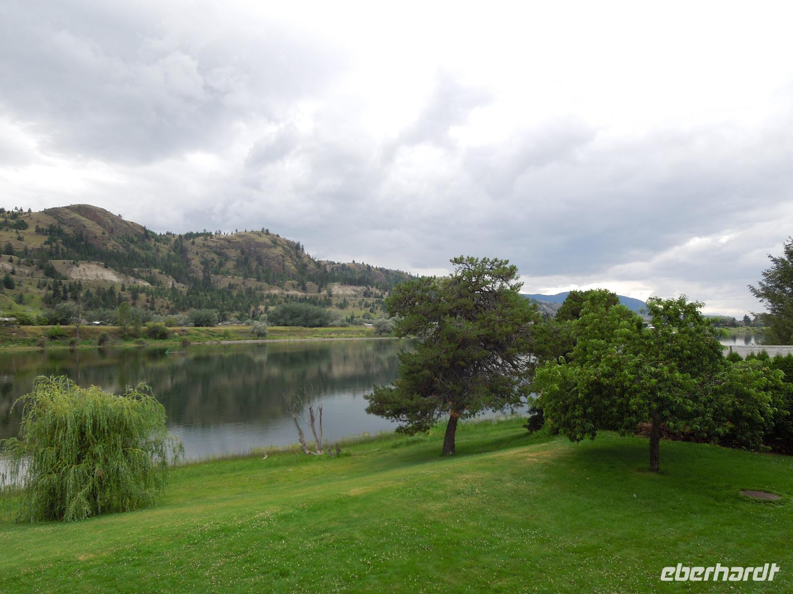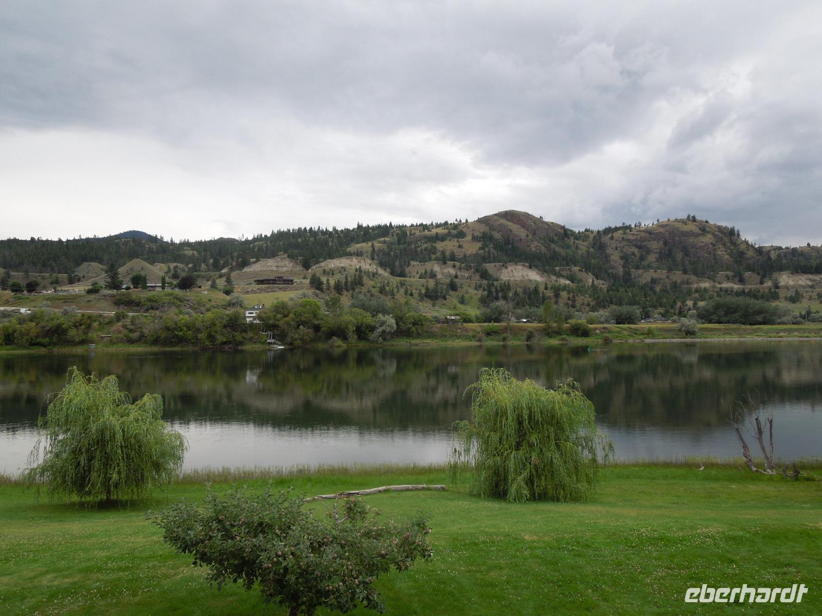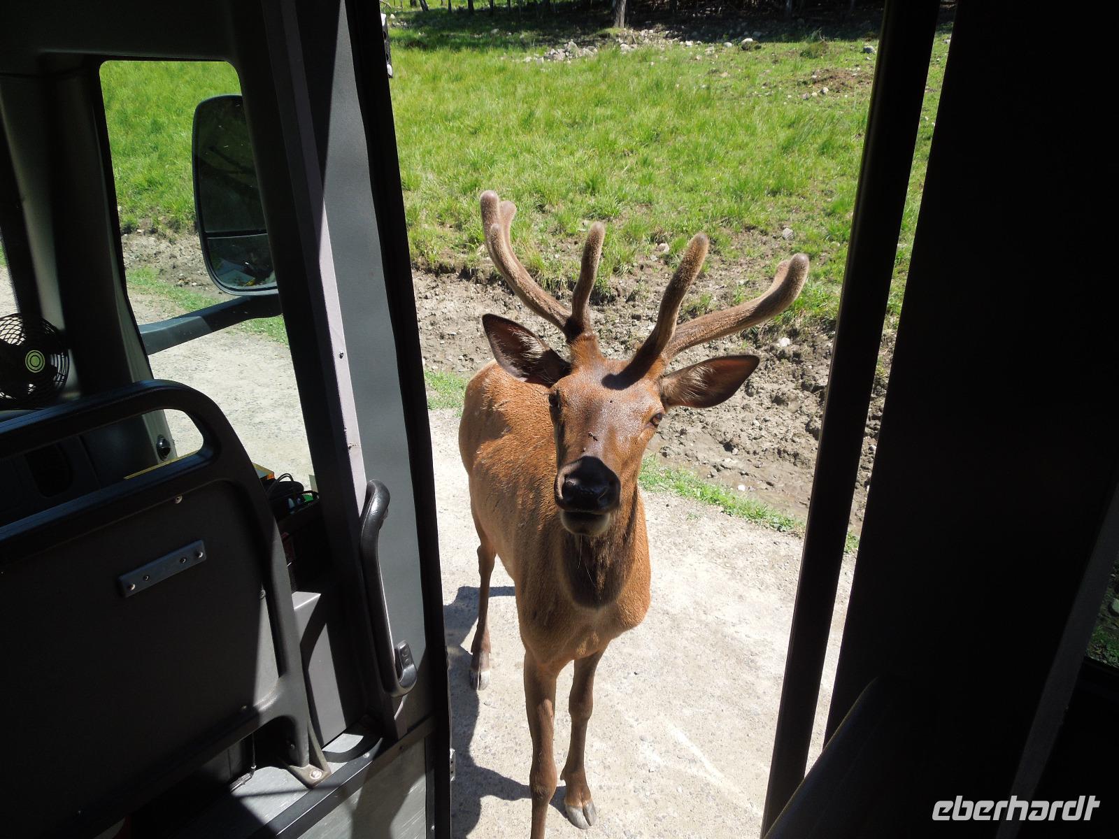 Mit gepackten Koffern verließen wir heute die Lodge und fuhren entlang des Yellowhead Highways, eine sehr lange zum Pazifik führende Straße. Ursprünglich war sie zur Erschließung des Westen Kanadas erbaut worden. Unterwegs sahen wir zwei prächtige Wapiti-Hirsche, die ganz nah am Wegesrand standen und grasten. Wenig später sahen wir noch einen Schwarzbären, der sich uns in voller Größe auf den Hinterbeinen präsentierte. Gut, dass wir im Bus saßen, denn diese Haltung heißt eigentlich, dass der Bär angriffsbereit ist und sich in die Enge getrieben fühlt. Dies lag aber nicht an uns, sondern an einem Autofahrer, der zu nahe an den Bären heran gefahren war. Kurz nach der Grenze von Alberta zu British Columbia machten wir einen Fotostopp am kleinen Portal Lake. Gleichzeitig stellten wir unsere Uhren noch eine weitere Stunde zurück. Unterwegs sahen wir diesmal eine Wapiti-Dame am Straßenrand. Am Mount Robson hielten wir und uns wurde ein super Fotomotiv präsentiert. Denn der Berg war in voller Pracht und ohne Wolken zu sehen. Mount Robson ist 3.954 Meter hoch und damit der höchste Berg der kanadischen Rocky Mountains. Auf dem Weg machten wir eine Mittagspause in Form eines Picknicks. Der nächste Stopp war in Clearwater, einer kleinen Gemeinde, die gleichzeitig das Eingangstor zum Wells Gray Provincial Park markierte. Hier sahen wir ein Reh, einen Weißkopfseeadler und ein paar Streifenhörnchen. Bereits am Nachmittag kamen wir in unserer nächten Unterkunft an - einer Ranch. Es blieb genügend Zeit um die Ranch mit ihren Pferden, Kühen und Lamas zu erkunden, sich zu entspannen oder einfach mal ein Buch zu lesen. Später am Abend gab es noch ein Lagerfeuer, an dem wir Marshmallows rösteten, die zwischen zwei Kekse und einem Stück Schokolade zerdrückt wurden. Das war etwas typisch kanadisches - klebrig, aber lecker. Dazu gab es heiße Schokolade. Am Abend konnte man auf der Terrasse vor dem Zimmer den Tag ausklingen lassen.