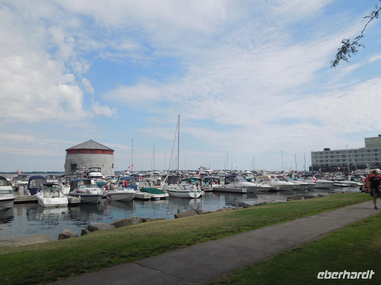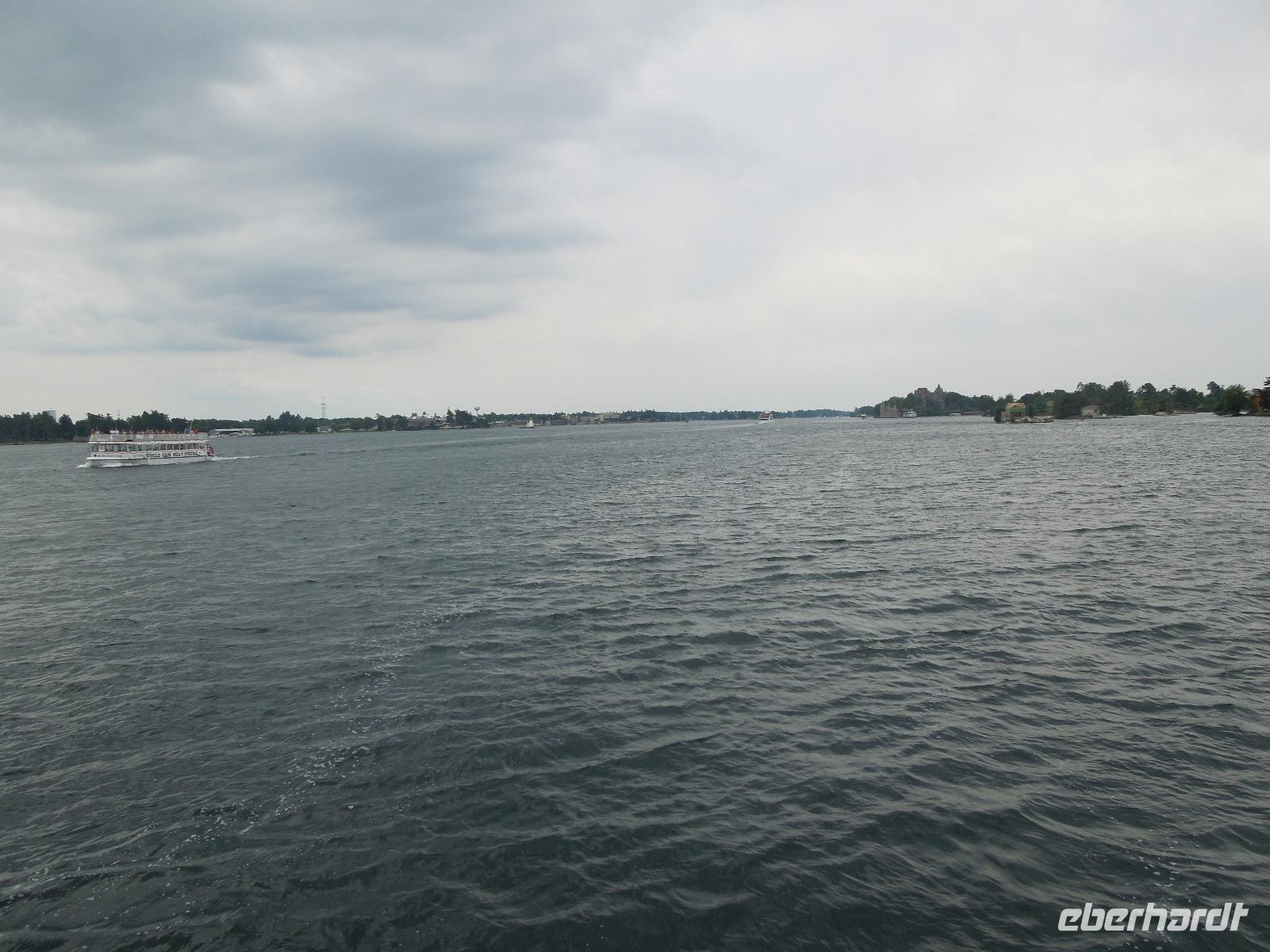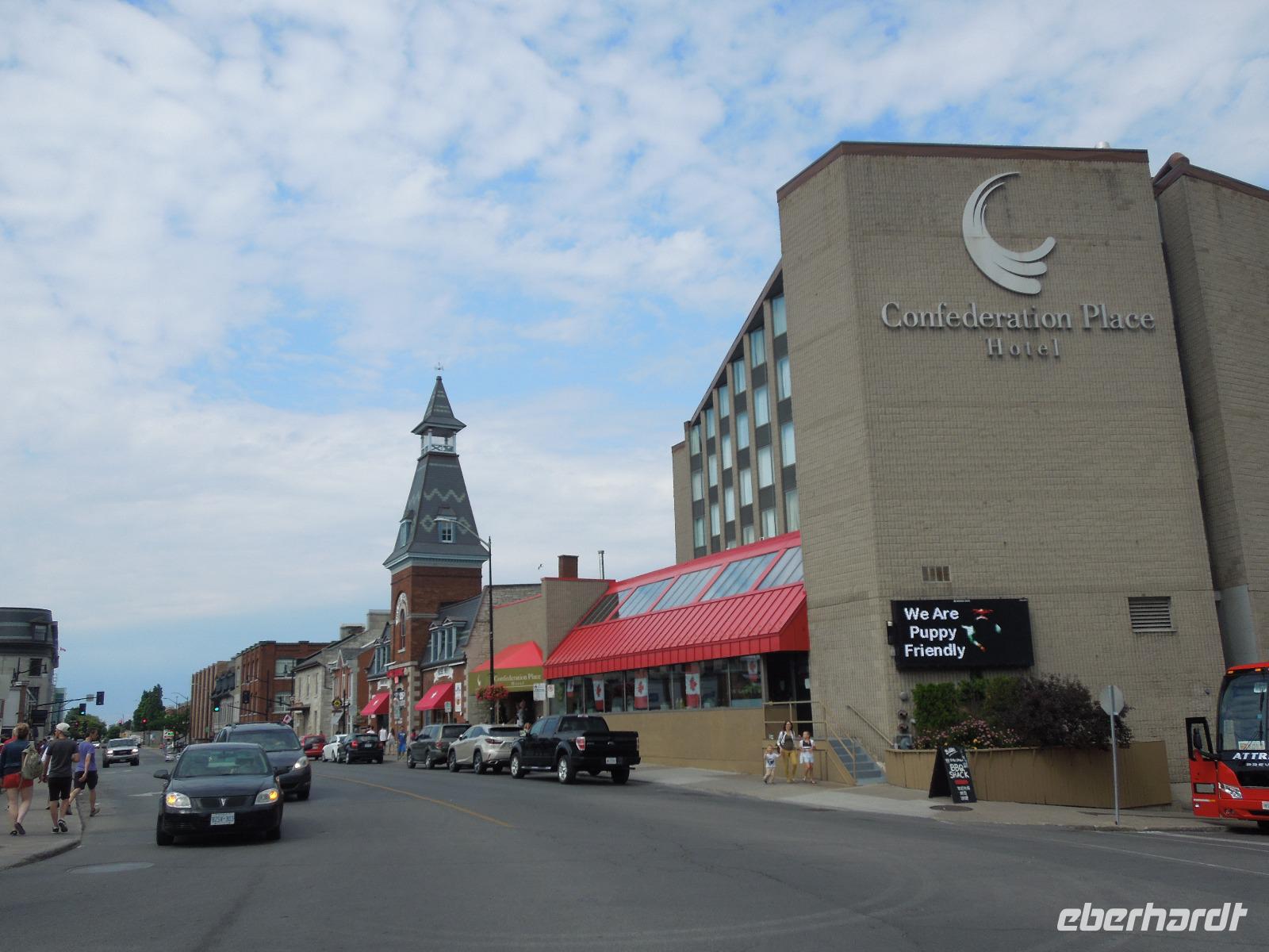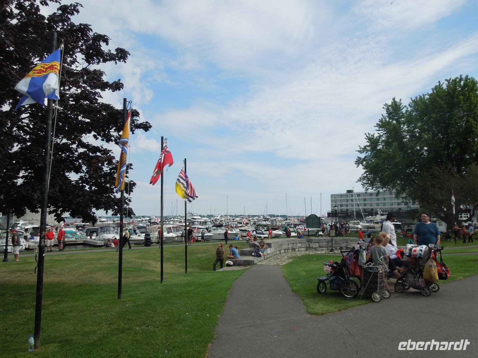 Nach dem Frühstück fuhren wir Richtung Innenstadt. Da heute Canada Day (großer Nationalfeiertag) war, gab es viele Straßen, die gesperrt waren. Zuerst liefen wir mit unserer Reiseleiterin Barbara auf den Parlamentshügel, um die Wachablösung der Mounties zu bestaunen. Die Royal Canadian Mounted Police ist die nationale Polizei Kanadas, die im Auftrag der Provinzen und Territorien sowie vieler Gemeinden auch lokale Aufgaben wahrnimmt. In Ottawa waren die Straßen voller rot-weiß gekleideter Kanadier. Diese haben einen unheimlich großen Nationalstolz und an diesem Tag wurde überall in Kanada groß gefeiert. Wir hatten das Glück gerade an diesem Tag in der Hauptstadt Kanadas zu sein. Ein paar von uns haben sich aus diesem Anlass auch am Vortag ein rot-weißes Kanada-Shirt gekauft, was sehr gut bei den Kanadiern ankam. Jeder von uns bekam auch eine kleine kanadische Fahne mit dem berühmten Ahornblatt drauf. Das Zuckerahornblatt auf der Fahne hat übrigens elf Zacken, was keine bestimmte Bedeutung hat. Nach der zeremoniellen Wachablösung mit Gesang und Musik liefen wir noch ein wenig weiter, um alles auf uns wirken zu lassen. Anschließend führte uns eine zweistündige Busfahrt zu den bekannten 1000 Inseln, wo wir ein regionales Mittagessen genossen. Danach unternahmen wir eine Bootsfahrt auf dem Sankt-Lorenz-Strom und bestaunten die vielen kleinen Inseln, die am Abfluss des Ontariosees in der Grenzregion zwischen den USA und Kanada liegen. Hier findet man ebenfalls die kleinste internationale Brücke der Welt. Danach fuhren wir auch schon weiter Richtung Toronto. Auf dem Weg dorthin legten wir eine Pause in dem kleinen Städtchen Kingston ein, das über 120.000 Einwohner hat und am nordöstlichen Ende des Ontariosees liegt. Nach weiteren drei Stunden Busfahrt kamen wir am Abend in Toronto an. Auf der Fahrt gab es als kleine Überraschung kanadischen Whiskey mit Ahornsirup und dazu Ahornkekse. Toronto ist mit 2,6 Millionen Einwohnern die größte Stadt Kanadas und die Hauptstadt der Provinz Ontario. Da unser Hotel direkt in Downtown lag, waren viele sehenswerte Plätze zu Fuß erreichbar. So z.B. die Yonge Street mit dem aufregenden Dundas Square, viele Restaurants oder das Eaton Center. Die Yonge Street ist eine der wichtigsten Straßen Torontos und ist mit 1896 Kilometern die längste Straße der Welt. Sie schaffte es sogar ins Guinness-Buch der Rekorde. Die Lage des Hotels war also ideal um noch einen kleinen oder großen Spaziergang in die Umgebung zu machen. Wir übernachteten übrigens im größten Hotel Kanadas mit 1590 Zimmern. Natürlich war auch in Toronto sehr viel wegen des Canada Days los. Die Kanadier hatten ein verlängertes Wochenende und die Amerikaner wegen dem 4. Juli auch. Also waren alle an diesem Wochenende unterwegs.