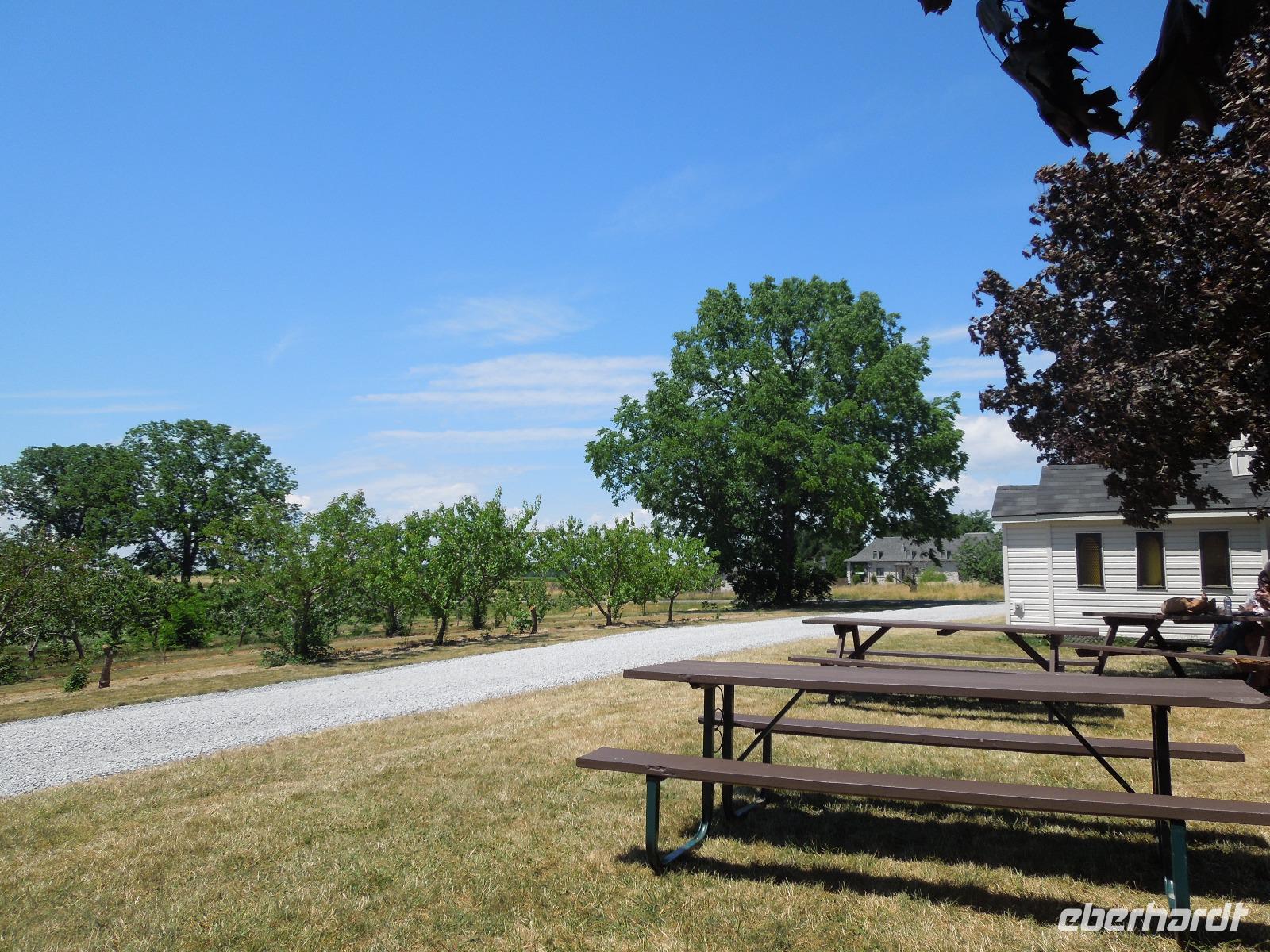 Am heutigen Vormittag fuhren wir etwas eher vom Hotel los, um eventuellen Staus zu entgehen. Zuerst sahen wir bei einer Stadtrundfahrt durch Toronto unter anderem Chinatown, das Geschäftsviertel und den CN-Tower, der 553 Meter hoch und Wahrzeichen der Stadt ist. Am St. Lawrence Market hielten wir an, um ein paar gute Fotos vom CN-Tower zu bekommen und uns das bunte Treiben in der Markthalle anzusehen. Hier gab es einfach alles an Lebensmitteln, was man sich vorstellen konnte und das auch noch ganz frisch: Fisch, Fleisch, Obst, Gemüse, Käse, Backwaren. Im Anschluss daran fuhren wir weiter zum kleinen Künstlerort Niagara-on-the-lake. Hier machten wir eine größere Pause, um uns den Ort anzusehen und vielleicht ein paar kleine Souvenirs zu kaufen oder einen Kaffee zu trinken. Unsere Mittagspause war wenige Zeit später an einem Laden, wo man frisches Obst, Sandwiches und Eis kaufen konnte. Wir saßen draußen an Holztischen und haben das gekaufte Obst teilweise gleich gegessen. Gesättigt ging es dann weiter zu den Niagarafällen, die die Wasserfälle des Niagara-Flusses sind und sich an der Grenze zwischen dem US-amerikanischen Bundesstaat New York und der kanadischen Provinz Ontario befinden. Nach kurzer Wartezeit standen wir auch schon alle auf dem Boot von Hornblower Niagara Cruises und hatten große rote Regencapes an. Wir fuhren direkt auf die Wasserfälle zu. Am Anfang konnte man noch ein paar Fotos machen, aber dann wurden wir durch die Gischt der Wasserfälle ganz nass gespritzt. Man konnte kaum noch etwas sehen, aber es war ein einmaliges Erlebnis. Nach der Bootsfahrt liefen wir auf einem Weg oberhalb der Wasserfälle wieder zurück zum Bus. Unterwegs hatte man die Möglichkeit viele tolle Fotos zu schießen oder die spektakulärenWasserfälle einfach eine Weile auf sich wirken zu lassen. Auf der zweistündigen Fahrt wieder zurück nach Toronto erzählte uns Barbara noch ein paar interessante Geschichten über die Wasserfälle und zeigte einen kleinen Film über die großartige kanadische Landschaft. Der heutige Tag war leider schon unser letzter Tag im Osten Kanadas. Am Abend blieb noch einige Zeit für eigene Unternehmungen in Toronto. Die Fahrt auf den CN-Tower war leider nicht möglich, da durch das verlängerte Wochenende die Wartezeit bei über eineinhalb Stunden lag.