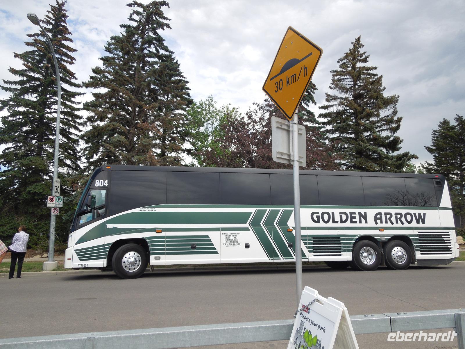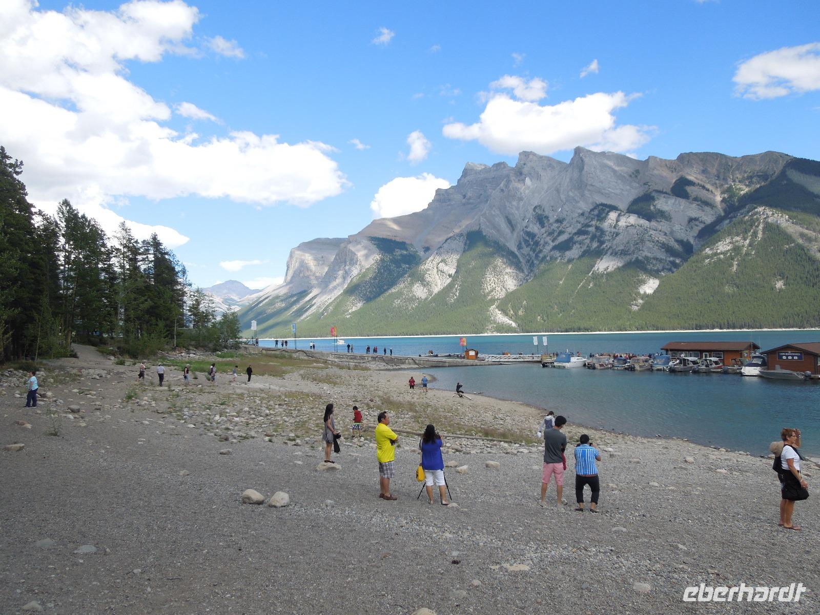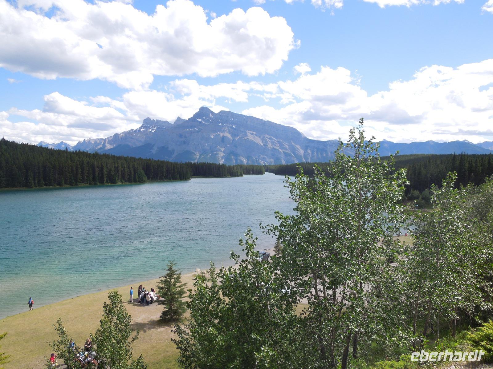 Nach dem Check-out und dem Beladen des Busses verabschiedeten wir uns von unserer super Reiseleiterin Barbara und unserer herzlichen Busfahrerin Sylvie. Der Abschied fiel allen ein bisschen schwer. Unser Flieger von Toronto nach Calgary ging pünktlich und dank des guten Wetters hatte man eine fantastische Sicht auf die tolle und abwechslungsreiche Landschaft Kanadas. Wir sahen viele Seen und sogar die Rocky Mountains. Natürlich auch viele grüne bewaldete Flächen. Bereits im Flieger stellten wir unsere Uhren um weitere zwei Stunden zurück. Nach der Landung empfing uns Gudrun, die örtliche Reiseleiterin für den Westen Kanadas. Wir holten unsere Koffer vom Gepäckband und brachten sie zu Kong, unserem Busfahrer für den Westen. Bei einer Stadtrundfahrt durch Calgary bestaunten wir unter anderem die berühmte Stampede und dem Olympia Platz. Calgary ist mit ihren über eine Millionen Einwohnern die größte Stadt Albertas. 1988 trug Calgary als erste kanadische Stat die olympischen Winterspiele aus. Auf dem Weg zu den Olympischen Skischanzen, machten wir einen kleinen Fotostopp, wo man eine beeindruckende Aussicht auf die Stadt hatte. Anschließend fuhren wir nach Banff zu unserem Hotel. Dabei ging es durch den Banff-Nationalpark, der über 6.000 Quadratkilometer Fläche hat und zweitältester Nationalpark der Welt ist. Wir hielten jeweils für einen kleinen Fotostopp am Two Jack Lake und Minnewanka Lake. Bereits hier machten wir die ersten Bekanntschaften mit der wilden Tierwelt Kanadas. So sahen wir ein Erdhörnchen und ein Streifenhörnchen. In Banff angekommen, checkten wir ins Hotel ein und uns blieb ein bisschen Zeit um uns frisch zu machen. Banff ist eine idyllische Kleinstadt, die am Osthang der Rocky Mountains liegt. Danach schlenderten wir gemeinsam mit Gudrun zum Abendessen in ein nahegelegenes Restaurant. Später blieb noch Zeit um einen kleinen Spaziergang durch den Ort zu machen oder einkaufen zu gehen. So endete der erste Tag im Westen Kanadas auch schon.