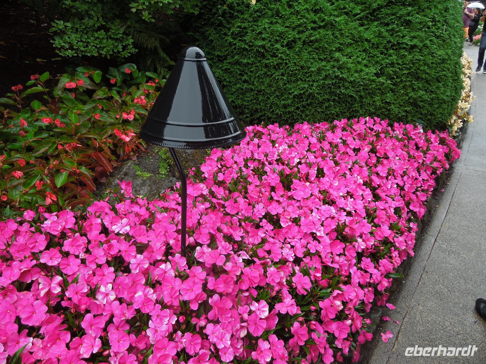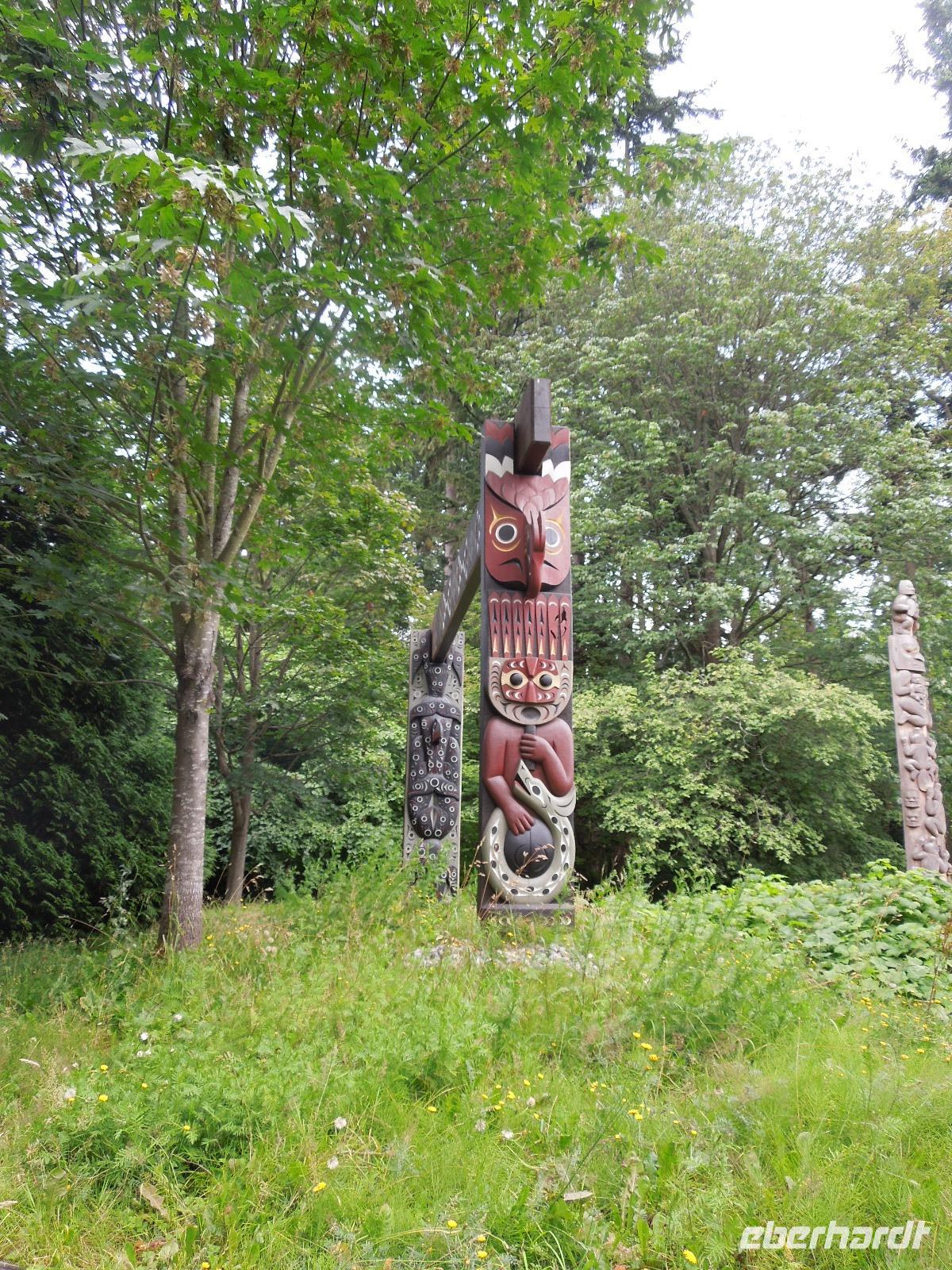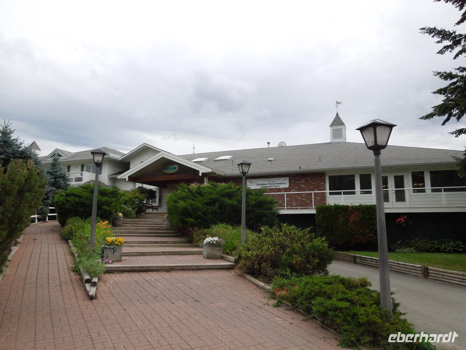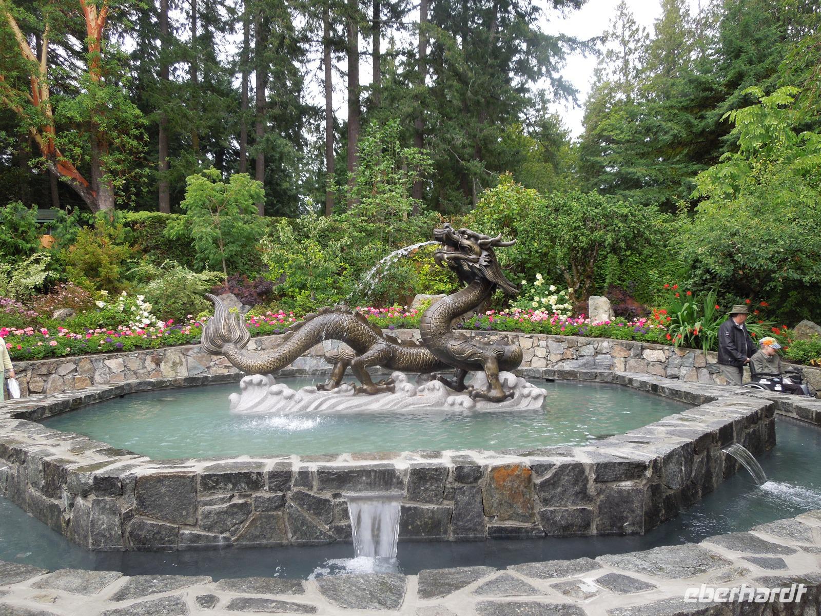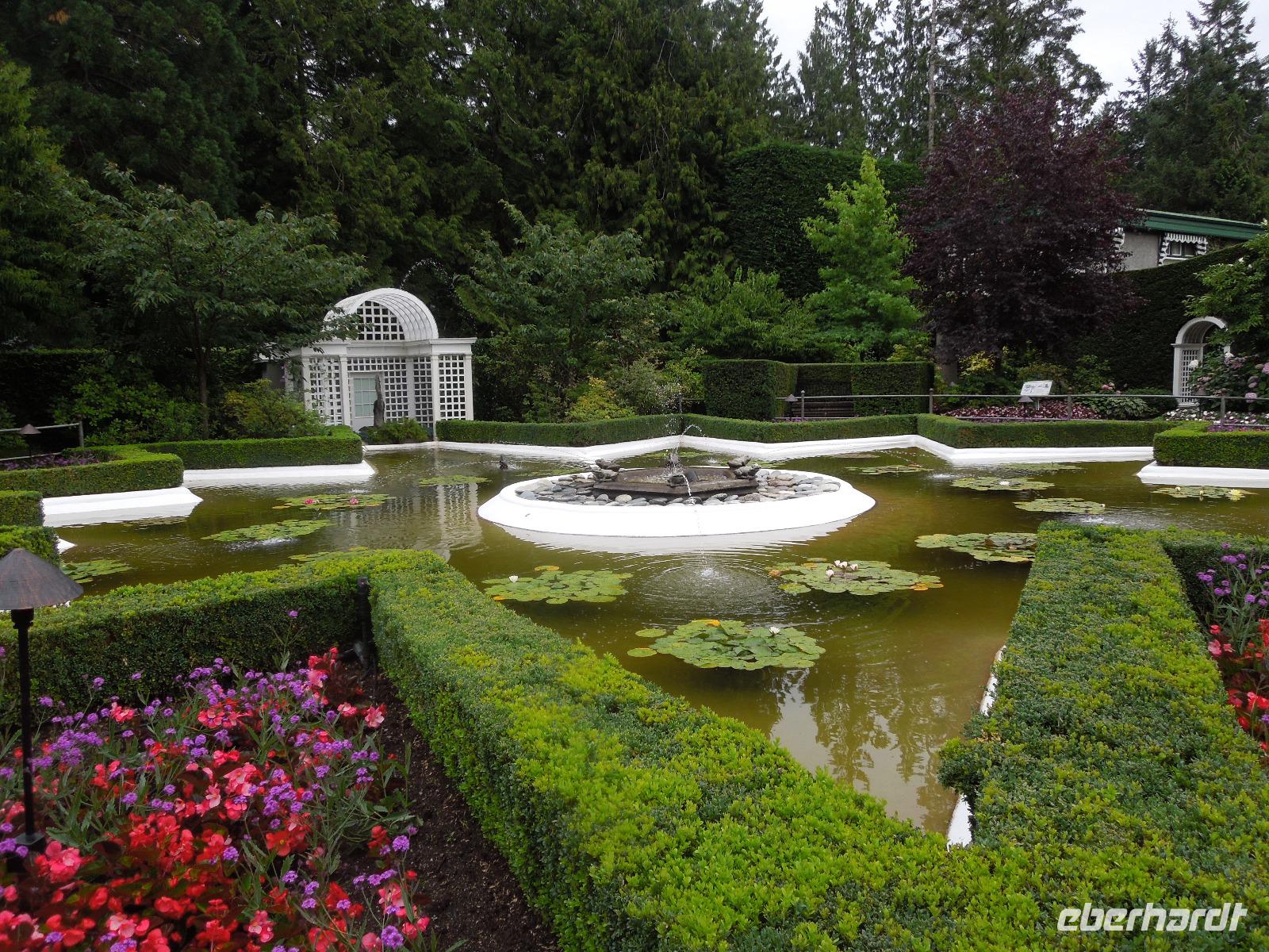 An diesem verregneten Morgen war Victoria auf Vancouver Island unser Ziel. Auf der Busfahrt und dann nochmal eineinhalb Stunden Fährüberfahrt zogen Vancouver und die wunderbare Landschaft British Columbias an uns vorbei. Während der Zeit auf der Fähre hatte man die Möglichkeit die vorbeiziehenden kleinen Inseln und Landstriche zu beobachten oder ein paar tolle Fotos zu schießen. Als wir in Victoria ankamen, hatte es bereits aufgehört zu regnen. Zuerst fuhren wir zur Fisherman's Wharf, um uns umzusehen und eventuell eine Kleinigkeit zu essen. Hier trafen wir auch auf zwei schwimmende Robben, die darauf warteten, dass man sie fütterte. Aber das war natürlich nicht gestattet. Anschließend sahen wir bei einer Stadtrundfahrt unter anderem Chinatown, die Pazifikküste, das Parlamentsgebäude und den Hafen. Victoria ist die Hauptstadt British Columbias und liegt an der Südspitze von Vancouver Island in der Bucht des Pazifiks. Man bezeichnet sie als die britischste Stadt von Kanada, erkennbar zum Beispiel an der Architektur, den roten Doppeldeckerbussen und dem Namen Victoria. Sie hat ihren Ursprung in einem 1843 errichteten Handelsposten der Hudson's Bay Company. Nach der Stadtrundfahrt hatten wir Zeit, um die charmante Stadt eigenständig zu erkunden und eventuell noch das ein oder andere letzte Souvenir zu kaufen. Wir flanierten die Hauptstraße bis zum Hafen runter, wo ein paar Straßenkünstler ihr Können darboten. Danach fuhren wir zu den bekannten Butchart Gardens, ein 22 Hektar großer, privater Blumengarten. Der erste Garten wurde 1904 von Jennie Butchart angelegt. Sie beschloss, den ehemaligen Steinbruch zu verschönern, der durch das Zementgeschäft Ihres Ehemannes entstanden war. Einst nicht viel mehr als ein paar Zuckererbsen und Rosen, ist der Versunkene Garten heute eine der Hauptattraktionen der Anlage. Leider regnete es eine ganze Weile, sodass wir hauptsächlich Regenbilder von den schönen und vielfältigen Pflanzen bekamen. Nach einem erlebnisreichen Tag fuhren wir wieder zurück zu unserem Hotel in Vancouver.
