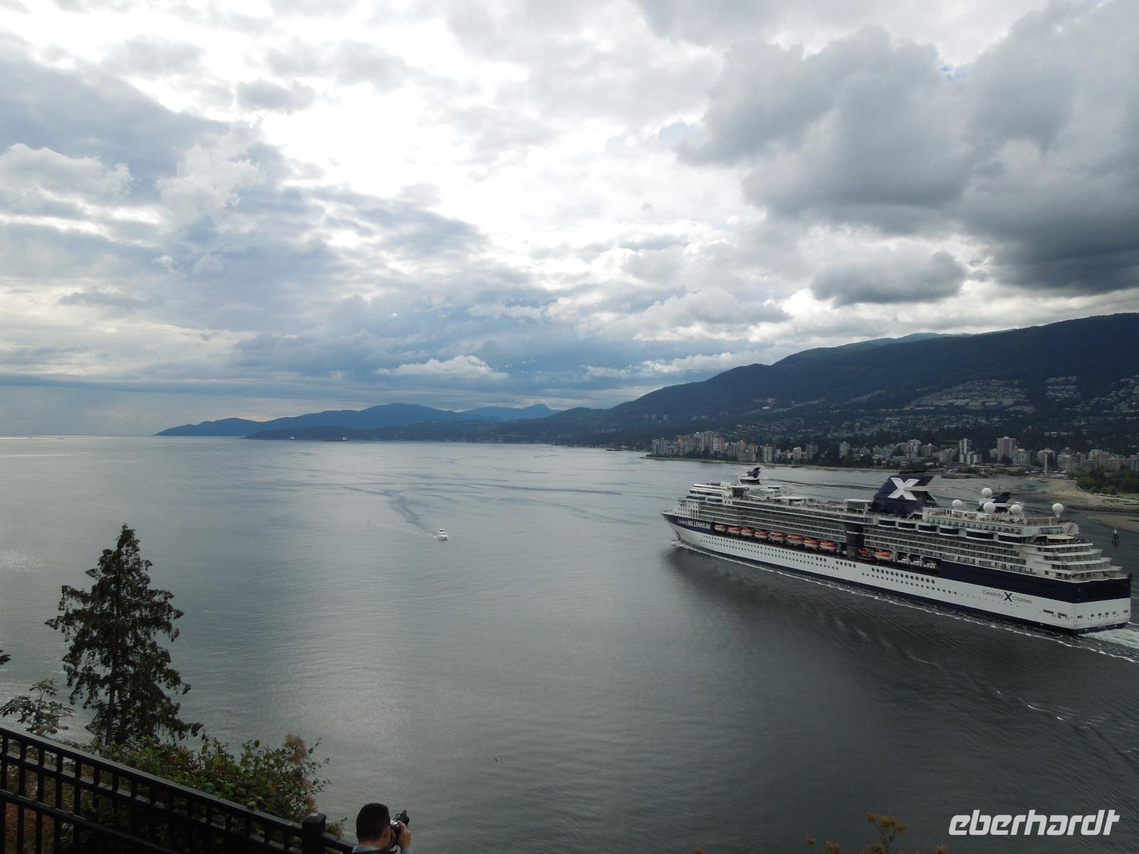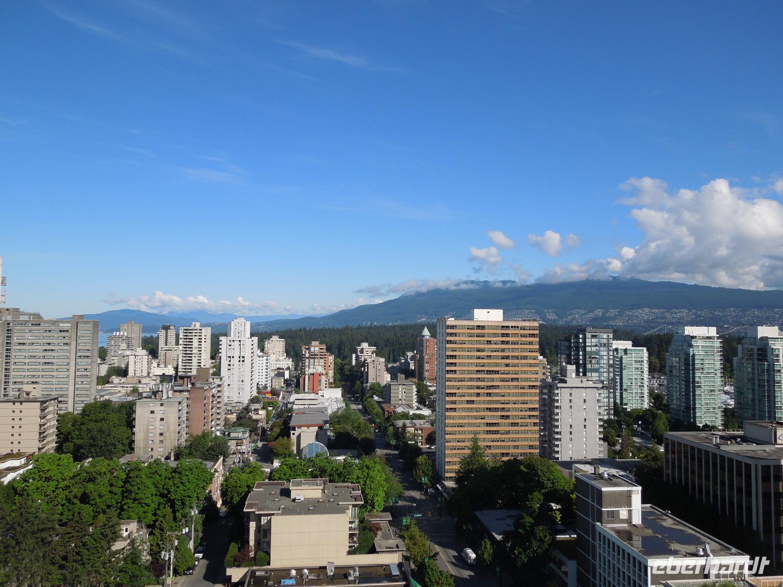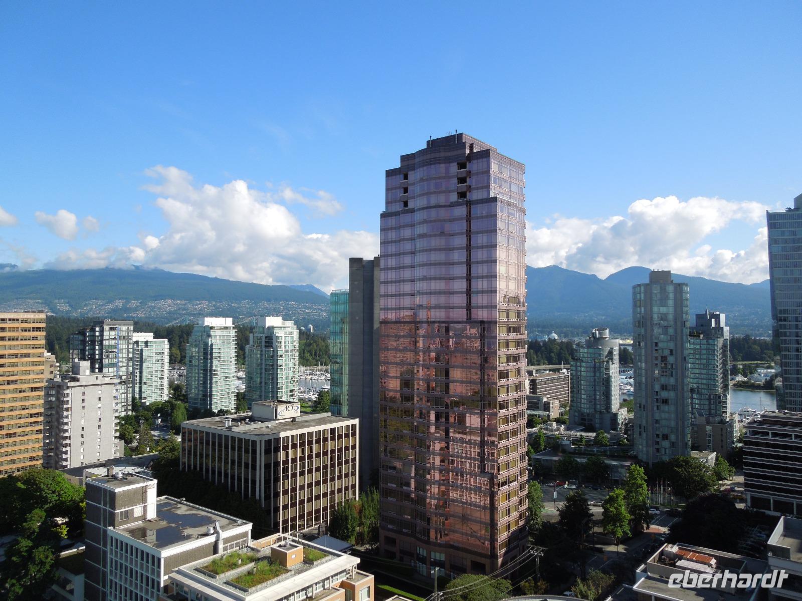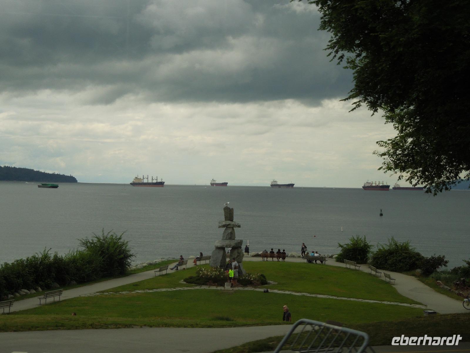 Nach dem gemeinsamen Frühstück stiegen wir mit gepackten Koffern in den Bus und fuhren vorbei an Kamloops nach Vancouver. Kamloops wurde 1812 als Handelsposten der Hudson's Bay Company gegründet.Unterwegs machten wir eine kleine Pause in Hope, einer am Zusammenfluss von Fraser und Coquihalla River, am Ende eines Engpasses liegende Kleinstadt. Anschließend fuhren wir durch das Fraser Valley. Gudrun erzählte uns auf der Fahrt sehr viel über Totempfähle und einige Indianer-Geschichten. Totempfähle wurden und werden aus unterschiedlichen Gründen errichtet. Sie erinnern an Verstorbene, beherbergen gelegentlich die sterblichen Überreste einzelner Personen und erzählen die Geschichte einer Familie oder repräsentieren die Stellung einer Familie innerhalb der Gemeinschaft. Gegen Mittag kamen wir in Vancouver an. Die Stadt Vancouver veranstaltete 2010 die Olympischen Winterspiele. Unsere Mittagspause machten wir auf Granville Island, welches eine kleine Halbinsel sowie Einkaufs- und Kulturviertel Vancouvers ist. Granville Island liegt im Meeresarm False Creek. Es gab es viele kleine Geschäfte, Restaurants und eine große Markthalle, in der alles Mögliche, wie z.B. Obst, Fisch oder Käse angeboten wurde. Im Anschluss daran erkundeten wir die Stadt mit dem Bus. In Gastown hielten wir, um die berühmte Dampfuhr, das berühmteste Wahrzeichen des Stadtteils, zu sehen. Gastown ist ein historisches Viertel, das seinen Namen von einem britischen Siedler erhielt. Wir liefen bis zum Canada Place, das ein markantes Gebäude im Zentrum der kanadischen Stadt Vancouver ist, am Ufer des Burrard Inlet. Es beherbergt das Messe- und Kongresszentrum, ein Pan Hotel und das weltweit erste IMAX-Kino. Darüber hinaus ist es Anlegestelle der meisten ab Vancouver verkehrenden Kreuzfahrtschiffe. Wenig später hielten wir am Stanley Park. Der größte Stadtpark Kanadas befindet sich direkt neben der Innenstadt Vancouvers. Wir genossen die Aussicht. Es lief auch gerade zufällig ein Schiff aus dem Hafen aus. Im Stanley Park mussten wir uns leider auch schon von unserer tollen Reiseleiterin Gudrun und unserem lustigen Busfahrer Kong verabschieden. Auch hier fiel der Abschied nach den erlebten Tagen nicht leicht. Später am Abend kamen wir im Hotel an und wenige Zeit danach nahmen wir unser Abendessen im Drehrestaurant des Hotels ein. Man hatte von hier oben einen atemberaubenden Blick über die Stadt.