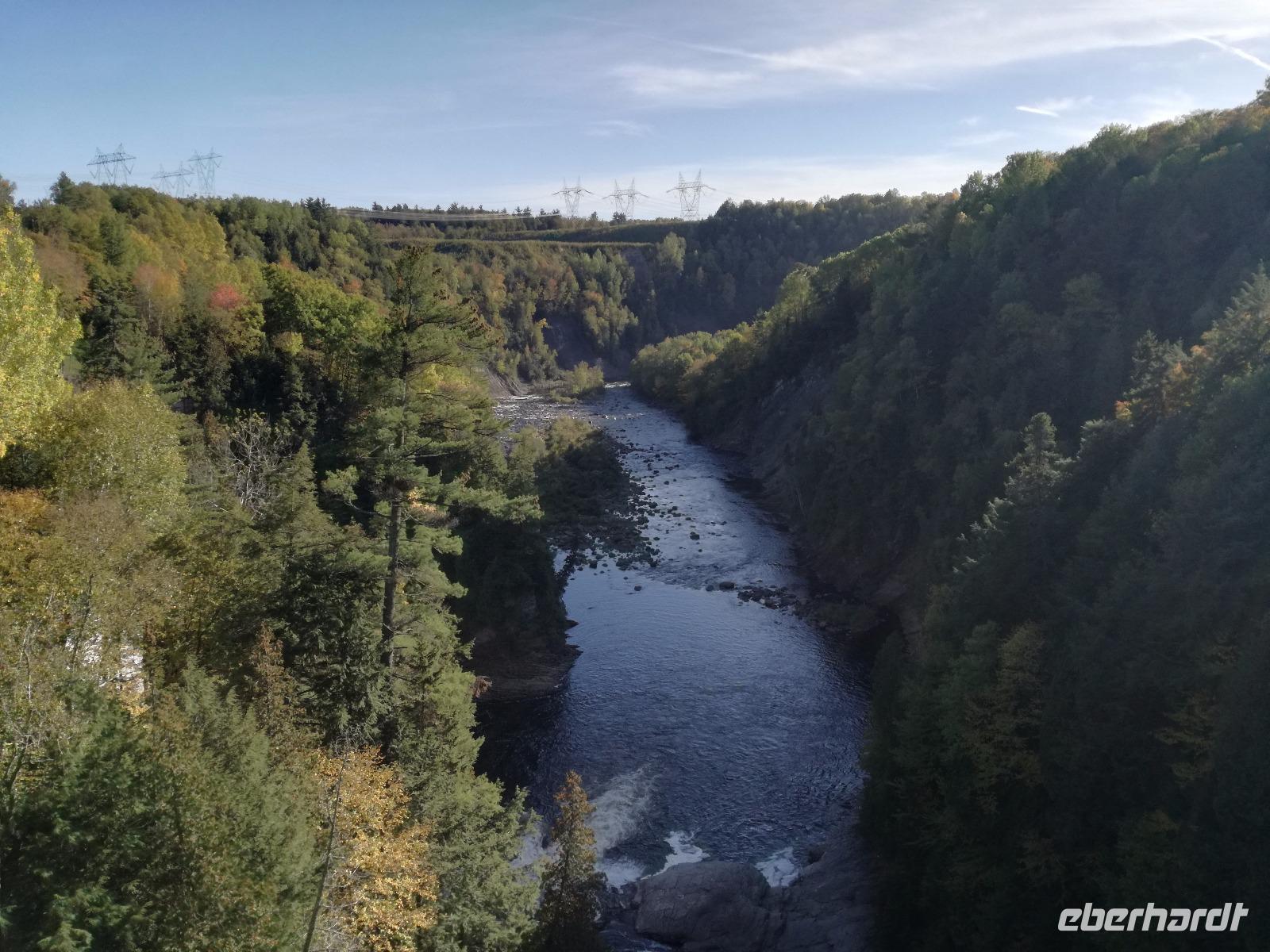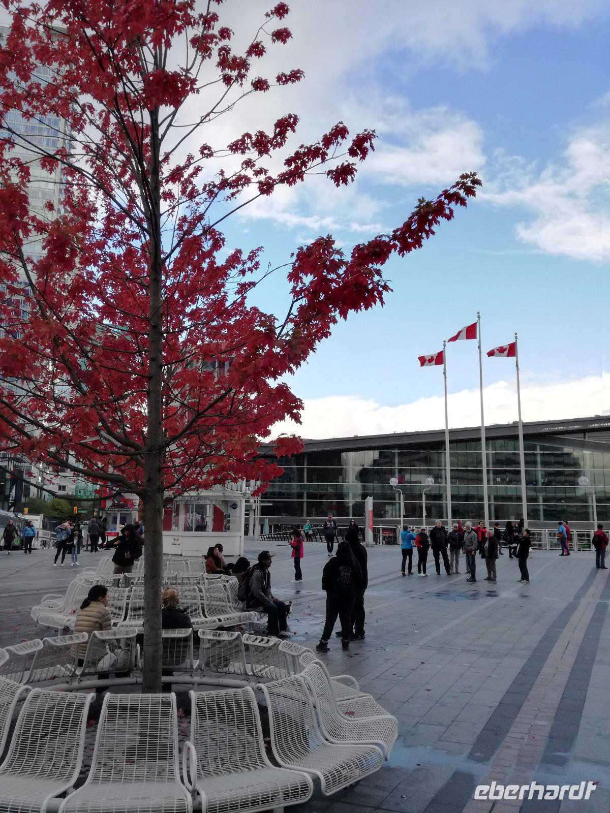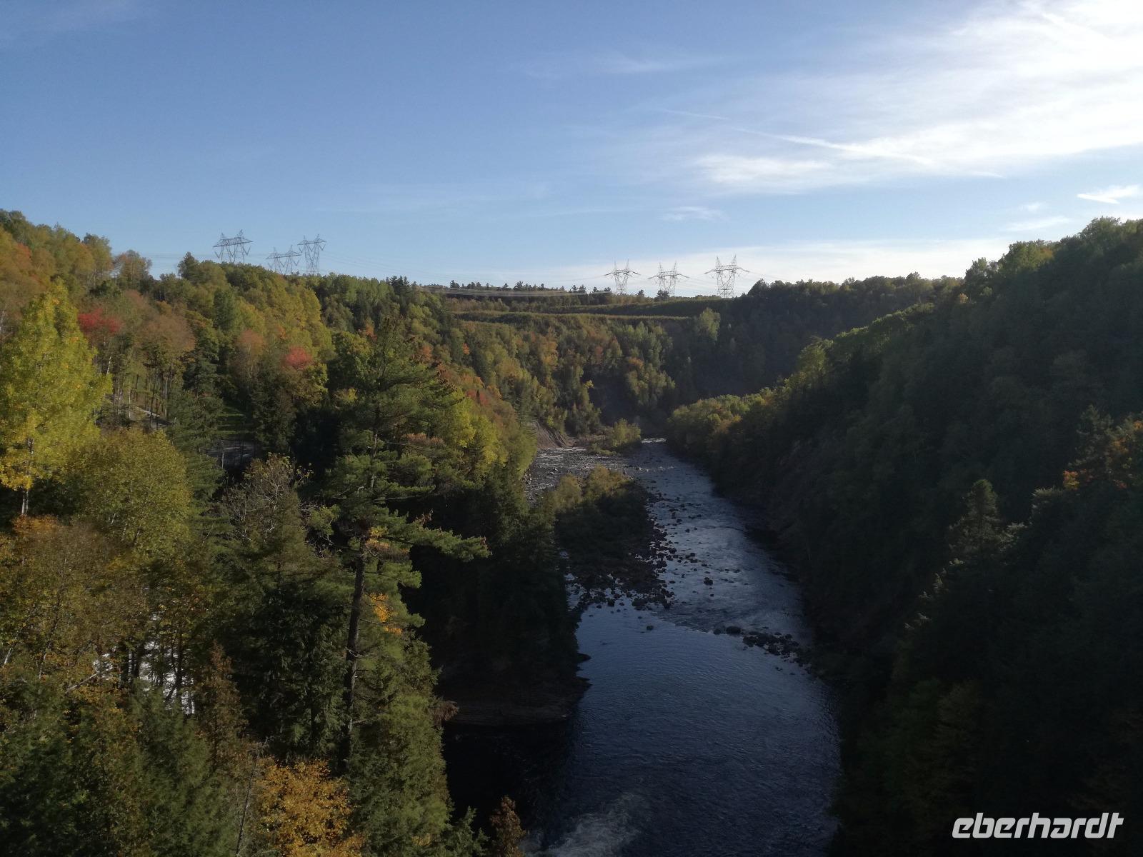 Am heutigen Tag stand die Metropole Toronto auf dem Programm. Da unser Hotel sehr zentral gelegen war, fuhren wir zuerst etwas durch die Stadt und Magarith erklärte uns einiges über die Großstadt. Danach wollte uns ihren Lieblingsplatz zeigen. Wir stoppten in einer mit lauter kleinen Häuserchen, Boutiquen, Cafés und Geschäfte. Diese ruhige Oase in der Stadt war ein wunderbarer Kontrast zu der umtriebigen Metropole. Unseren nächsten Stopp legten wir beim Rathaus der Stadt ein. Auf dem zentralen Platz vom Rathaus hatte man einen wunderschönen Ausblick auf die Skyline der Stadt. Zudem konnte man sich mit dem bekannten Toronto-Schild ablichten lassen. Nachdem wir ausreichend Zeit für Bilder erhalten hatten, gingen wir ins Rathaus. Bei einem 3-D-Nachbau der Stadt zeigte uns Magarith die Besonderheiten der Stadt und erklärte uns die einzelnen Bezirke. Weiter ging es mit dem Bus zum nächsten Höhepunkt der Stadt. Bei der Markthalle machten wir einen weiteren Fotostopp. Von hier aus hatten wir einen wunderbaren Blick auf der Flat Iron Building und den CN-Tower. Dieser war auch unser nächstes Ziel. Mit dem Aufzug fuhren wir in nur wenigen Sekunden auf einer Höhe von 357 Metern. Der Ausblick über die Stadt war atemberaubend und wir waren alle sehr beeindruckt. Aber wir wollten mehr. Mit einem weiteren Aufzug fuhren wir weitere 90 Meter hoch, da die höchste Aussichtplattform liegt auf 447 Metern. Insgesamt ist der CN-Tower mit 553,33 m der höchste Turm Kanadas. Nach einer Stunde war es jedoch Zeit und wir fuhren mit den schnellsten Aufzug Kanadas zurück in den Eingangsbereich. Dies sollte jedoch nicht der einzige Superlativ des Tages bleiben, denn unsere Reise führte uns nach Niagara. Gegen Nachmittag schlenderten wir zunächst durch Niagara on the Lake. Diese verschlafen Städtchen lud uns zum Verweilen ein und wir nutzten die Zeit, um ein Eis zu essen oder um ein Souvenir zu kaufen. Im Anschluss ging es dann zu den bekanntesten Wasserfällen der Welt. Hier stand eine Bootsfahrt auf dem Programm. Wir bekamen alle ein rotes Wassercape und starteten auf der kanadischen Seite mit Blick auf die amerikanischen Fälle. Was zunächst nach einer trockenen Fahrt aussah, entpuppte sich unter den kanadischen Fällen als nasse Angelegenheit. Nun wussten wir auch, warum wir die roten Capes erhalten hatten. Jedoch war dies ein einmaliger Augenblick unter der tobenden Wassermassen und wir hatten alle sichtlich Spaß. Nach der Bootsfahrt schlenderten wir über die Promenade zurück zum Bus und schossen etliche Bilder von den gigantischen Wasserfällen. Der Bus fuhr uns in nur wenigen Minuten in unser Hotel. Am Abend nutzten wir die Gelegenheit, um im Städtchen Abend zu essen und nochmal die beleuchteten Fälle bei Nacht zu sehen.