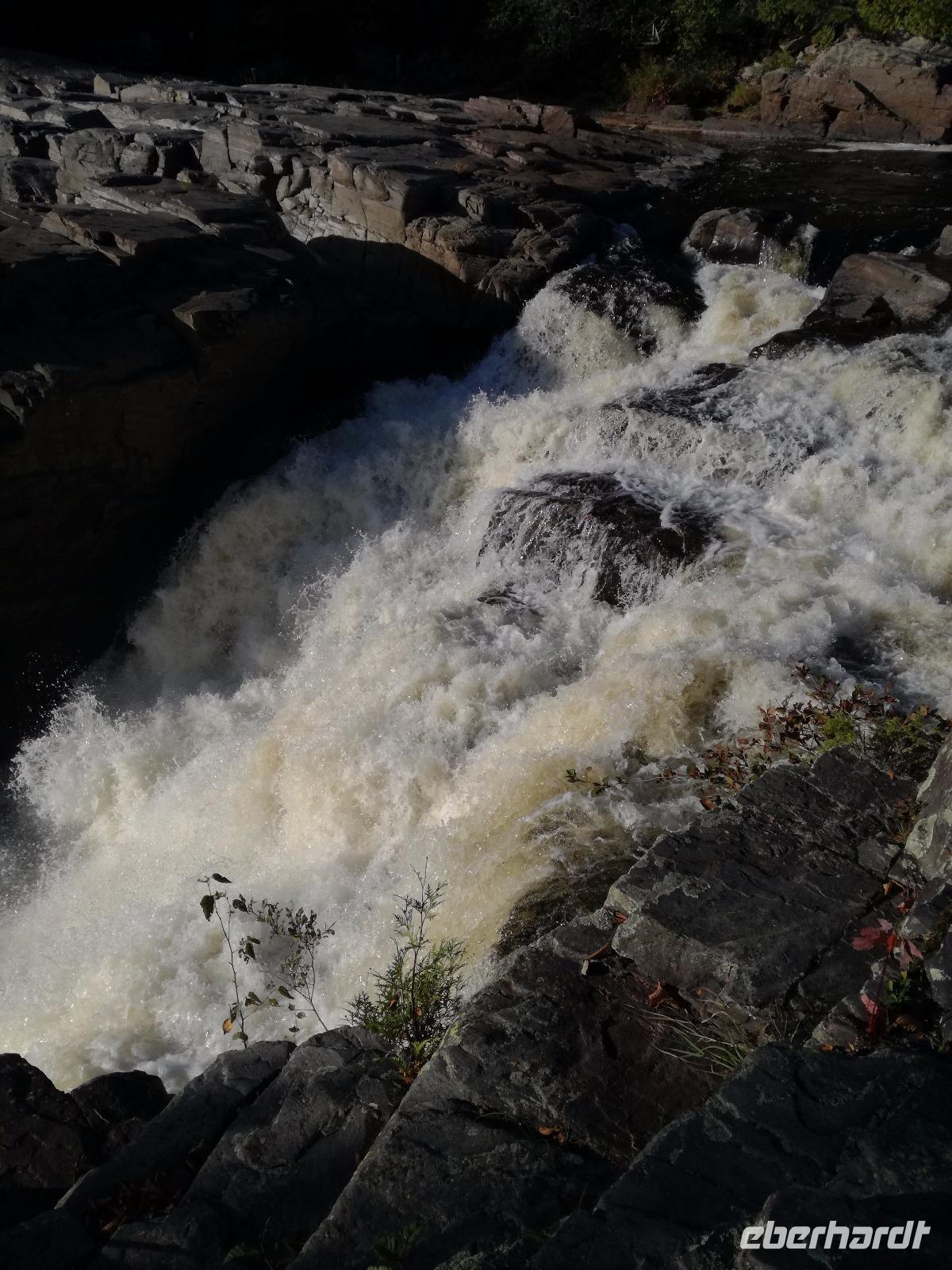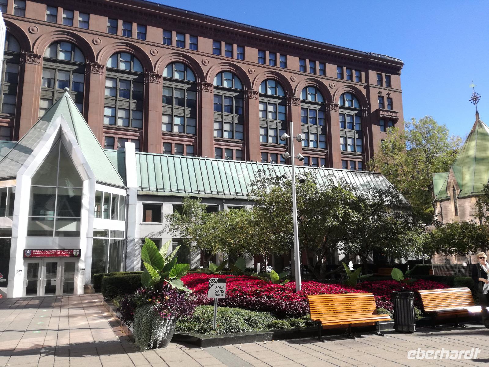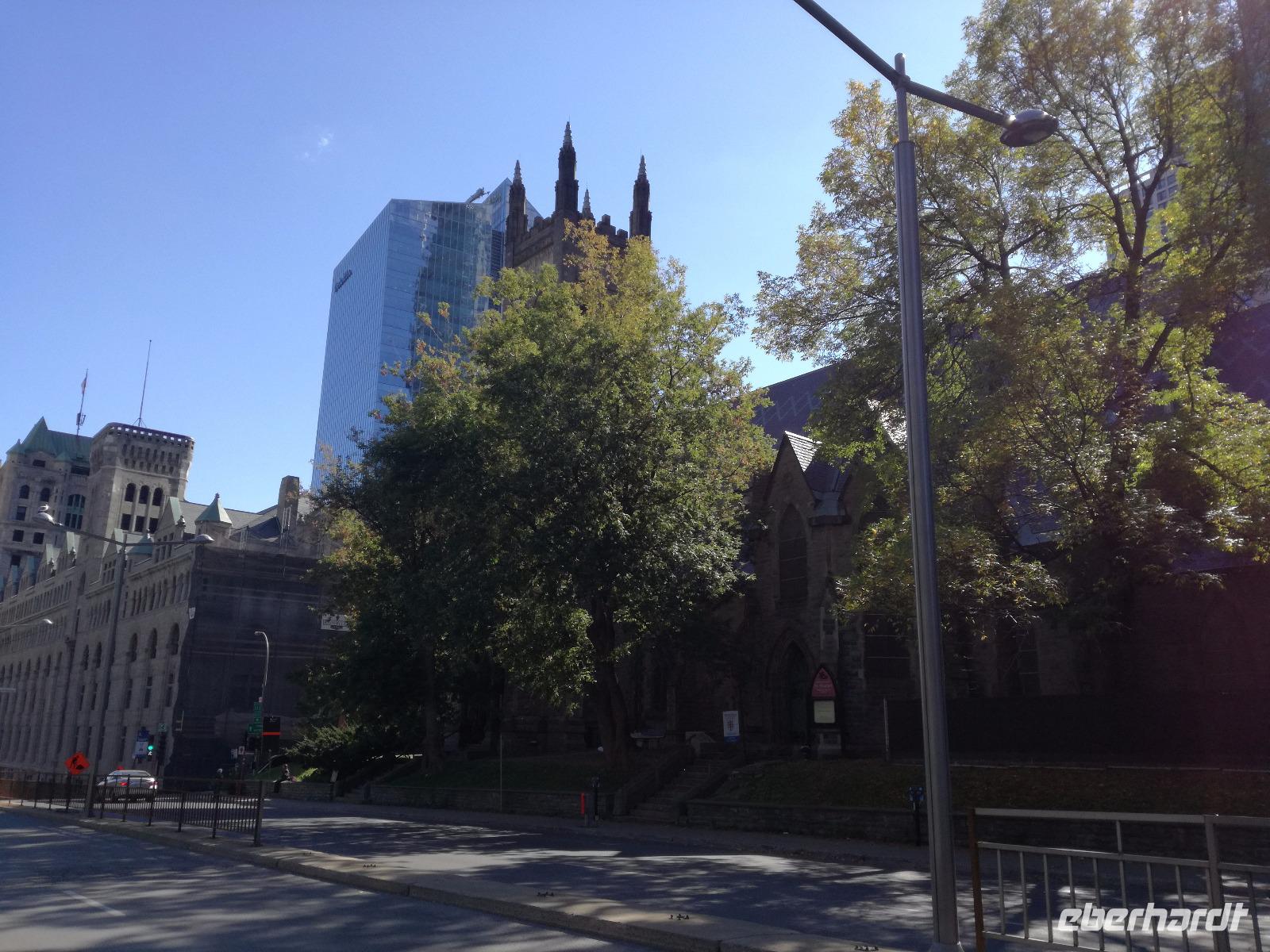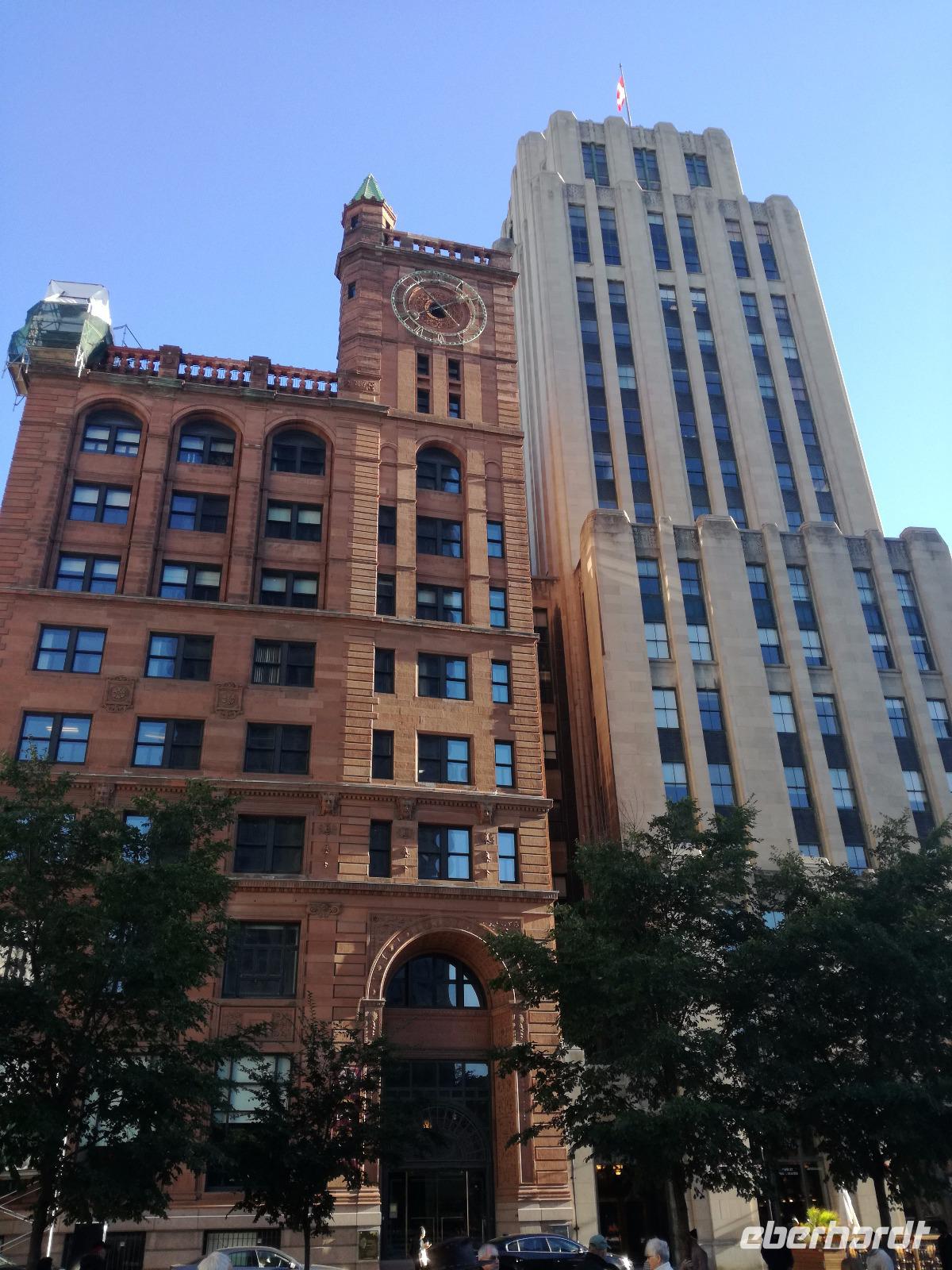 Am heutigen Tag stand die Metropole Toronto auf dem Programm. Da unser Hotel sehr zentral gelegen war, fuhren wir zuerst etwas durch die Stadt und Magarith erklärte uns einiges über die Großstadt. Danach wollte uns ihren Lieblingsplatz zeigen. Wir stoppten in einer mit lauter kleinen Häuserchen, Boutiquen, Cafés und Geschäfte. Diese ruhige Oase in der Stadt war ein wunderbarer Kontrast zu der umtriebigen Metropole. Unseren nächsten Stopp legten wir beim Rathaus der Stadt ein. Auf dem zentralen Platz vom Rathaus hatte man einen wunderschönen Ausblick auf die Skyline der Stadt. Zudem konnte man sich mit dem bekannten Toronto-Schild ablichten lassen. Nachdem wir ausreichend Zeit für Bilder erhalten hatten, gingen wir ins Rathaus. Bei einem 3-D-Nachbau der Stadt zeigte uns Magarith die Besonderheiten der Stadt und erklärte uns die einzelnen Bezirke. Weiter ging es mit dem Bus zum nächsten Höhepunkt der Stadt. Bei der Markthalle machten wir einen weiteren Fotostopp. Von hier aus hatten wir einen wunderbaren Blick auf der Flat Iron Building und den CN-Tower. Dieser war auch unser nächstes Ziel. Mit dem Aufzug fuhren wir in nur wenigen Sekunden auf einer Höhe von 357 Metern. Der Ausblick über die Stadt war atemberaubend und wir waren alle sehr beeindruckt. Aber wir wollten mehr. Mit einem weiteren Aufzug fuhren wir weitere 90 Meter hoch, da die höchste Aussichtplattform liegt auf 447 Metern. Insgesamt ist der CN-Tower mit 553,33 m der höchste Turm Kanadas. Nach einer Stunde war es jedoch Zeit und wir fuhren mit den schnellsten Aufzug Kanadas zurück in den Eingangsbereich. Dies sollte jedoch nicht der einzige Superlativ des Tages bleiben, denn unsere Reise führte uns nach Niagara. Gegen Nachmittag schlenderten wir zunächst durch Niagara on the Lake. Diese verschlafen Städtchen lud uns zum Verweilen ein und wir nutzten die Zeit, um ein Eis zu essen oder um ein Souvenir zu kaufen. Im Anschluss ging es dann zu den bekanntesten Wasserfällen der Welt. Hier stand eine Bootsfahrt auf dem Programm. Wir bekamen alle ein rotes Wassercape und starteten auf der kanadischen Seite mit Blick auf die amerikanischen Fälle. Was zunächst nach einer trockenen Fahrt aussah, entpuppte sich unter den kanadischen Fällen als nasse Angelegenheit. Nun wussten wir auch, warum wir die roten Capes erhalten hatten. Jedoch war dies ein einmaliger Augenblick unter der tobenden Wassermassen und wir hatten alle sichtlich Spaß. Nach der Bootsfahrt schlenderten wir über die Promenade zurück zum Bus und schossen etliche Bilder von den gigantischen Wasserfällen. Der Bus fuhr uns in nur wenigen Minuten in unser Hotel. Am Abend nutzten wir die Gelegenheit, um im Städtchen Abend zu essen und nochmal die beleuchteten Fälle bei Nacht zu sehen.