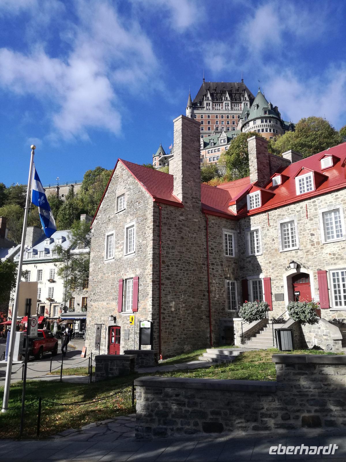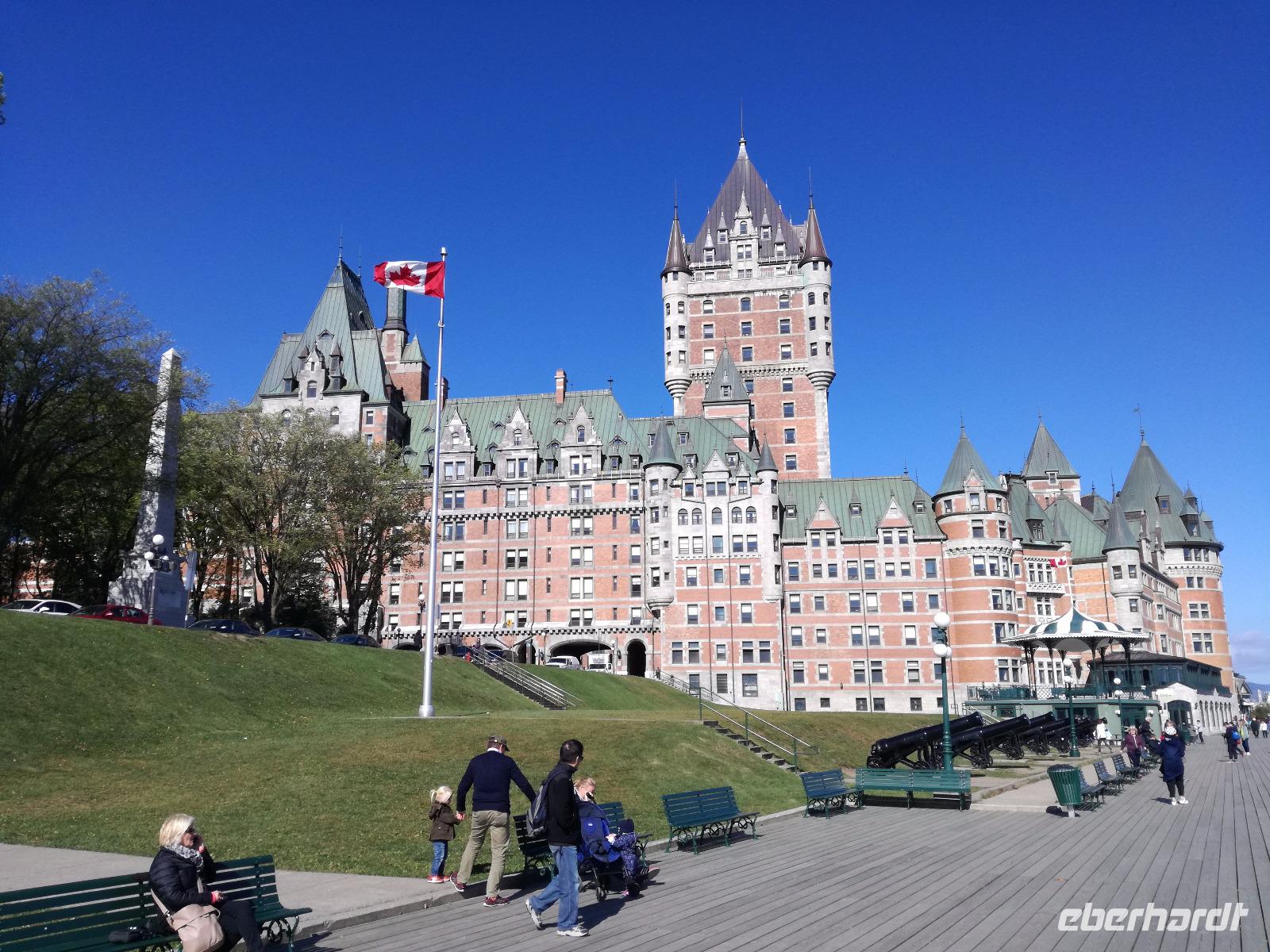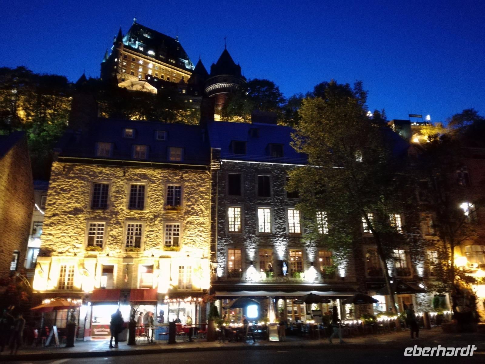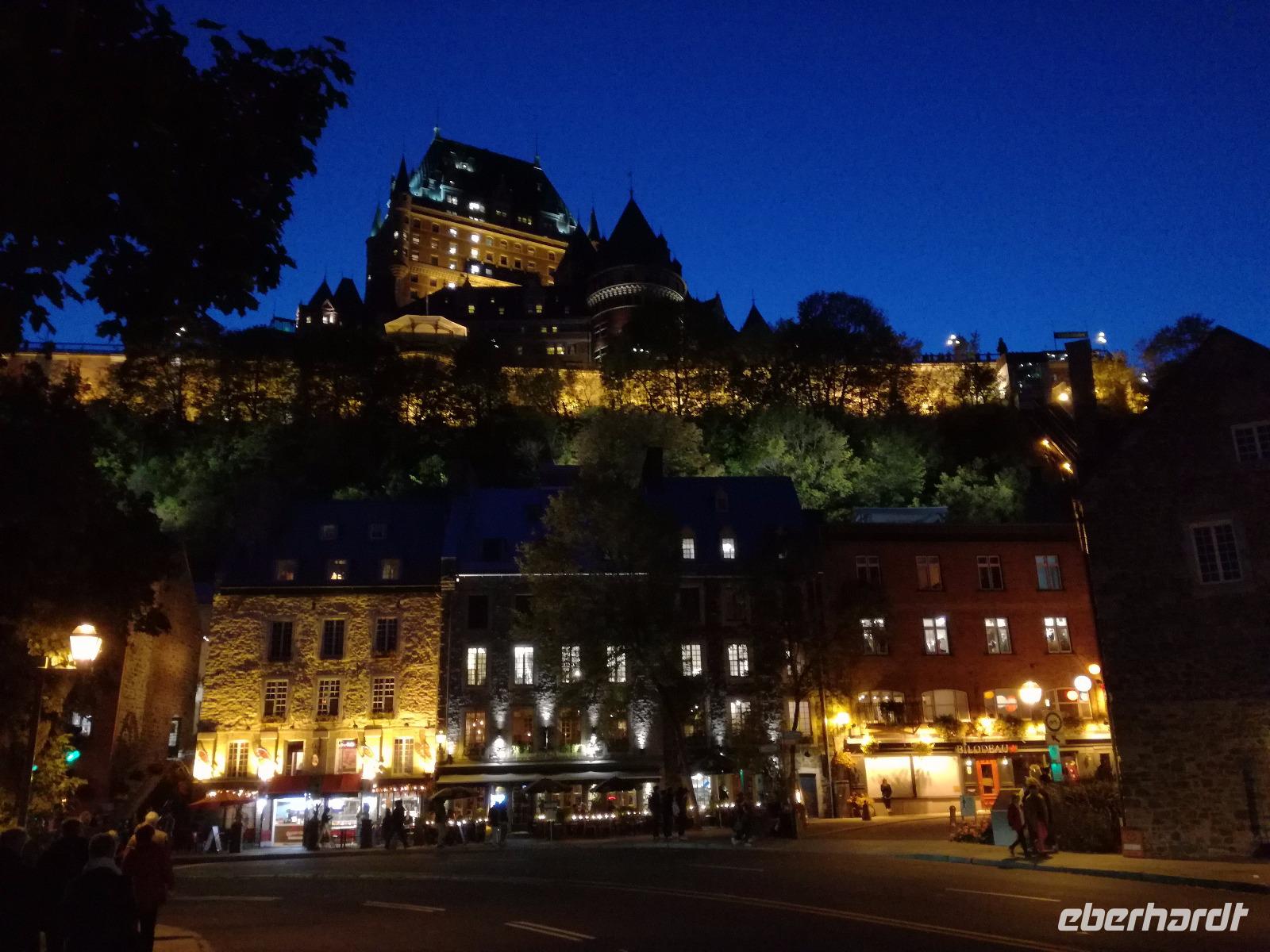 Die zweitgrößte Stadt des Landes stand heute auf unserer Agenda. Nach einem ausführlichen Frühstück lernten wir Celine kennen. Celine lebt schon seit mehreren Jahren in Montreal und wollte uns heute Ihre Stadt bei einer Stadtführung näher bringen. Unser erster Halt war die Basilika Notre Dame. Celine erklärte uns die Geschichte und Besonderheiten der größten Kanadischen Kirche. Eintreten durften wir allerdings noch nicht, da noch eine Messe abgehalten wurde. Wir geduldeten uns etwas und erkundeten erstmal zu Fuß die Altstadt und schlenderten bis zum Rathaus von Montreal. Unser nächster Halt war die Unterstadt Ville Souterraine, wo wir gemeinsam durch schlendern konnten. Celine zeigt uns Fotos während der Bauarbeiten und wir waren sehr beeindruckt über dieses Großprojekt. Dort stiegen wir wieder in unseren Bus und fuhren über die Insel St. Helene über das ehemalige Expo Gelände. Heutzutage beinhaltet der ehemalige Pavillon der USA eine Ausstellung zur Biosphäre der 5 Großen Seen und des St. Lorenz Stroms. Nach einem Fotostopp auf der Insel mit Blick auf die Stadt und dem Hafengelände stiegen wir wieder in den Bus. Den nächsten Halt machten wir am Aussichtspunkt Mount Royal. Bei wunderschönem Wetter konnten wir die Großstadt erblicken und erkannten in der Ferne die Skisprungschanze der Stadt Montreal. Im Anschluss fuhren wir durch das Hafengebiet zurück ins Stadtzentrum. Nachdem wir uns von unserer tollen Stadtführerin Celine verabschiedet hatten, erhielten wir etwas Zeit zum Bummeln oder zum Mittagessen. Nach der Pause trafen wir uns wieder bei der Basilika Notre Dame. Da die Messe beendet war, konnten wir auch die Basilika von innen begutachten. Die 1829 erbaute Basilika ist das bedeutendste Wahrzeichen der Stadt und die größte Kirche des Landes. Neben bezaubernden Holzschnitzereien von Victor Bourgeau, bestaunten wir auch den beeindruckenden Altar, der im Jahr 1982 von Papst Johannes Paul II in den Status Basilika Minor berufenen Kathedrale. Doch nun war es Zeit dieser schönen Stadt den Rücken zu kehren. Doch zuvor fuhren wir noch zum Olympia Gelände und machten einen Fotostopp bei der 1939 erbauten Olympiaschanze, wo sich einst Helmut Recknagel 1960 die olympische Goldmedaille sicherte. Anschließend fuhren wir in Richtung Nordosten in die Stadt Quebec. Nachdem wir im Hotel einchecken konnten, brachen wir abends in Richtung Altstadt von Quebec auf. Kurz konnten wir die Altstadt im Abendlicht kennenlernen. Die kleinen Gassen waren sehr schön geschmückt und das Fairmont Hotel grandios beleuchtet. Im Restaurant Cote á Cotes Resto nahmen wir unser leckeres Abendessen ein und ließen unseren ersten Tag in Kanada ausklingen.