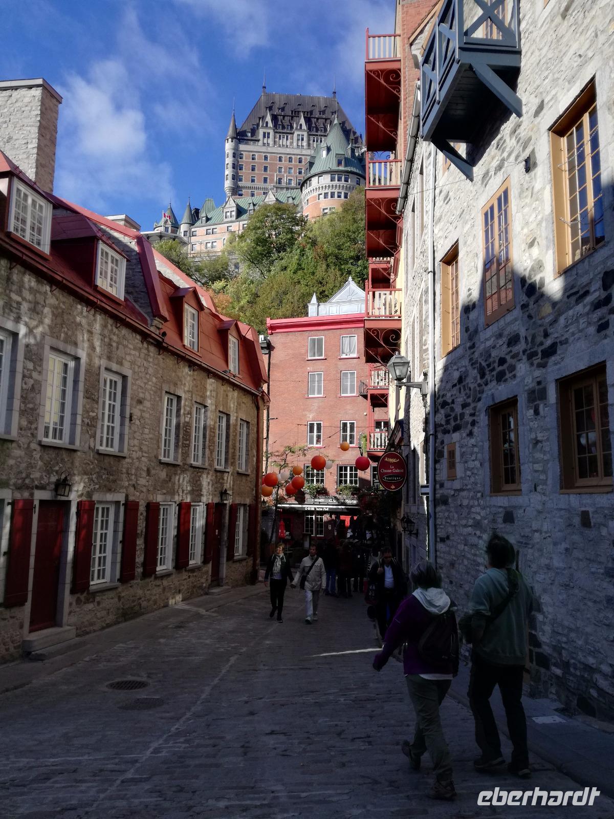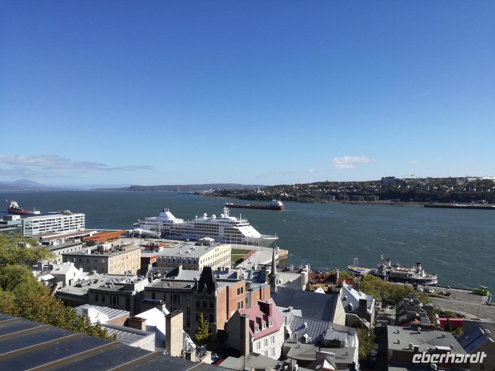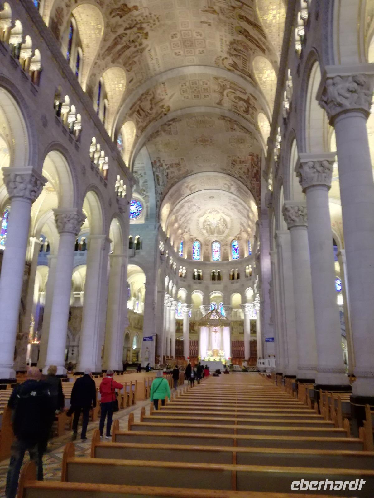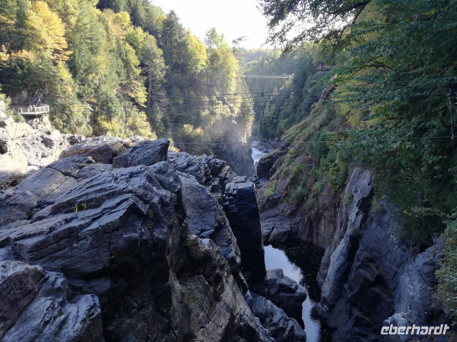Die zweitgrößte Stadt des Landes stand heute auf unserer Agenda. Nach einem ausführlichen Frühstück lernten wir Celine kennen. Celine lebt schon seit mehreren Jahren in Montreal und wollte uns heute Ihre Stadt bei einer Stadtführung näher bringen. Unser erster Halt war die Basilika Notre Dame. Celine erklärte uns die Geschichte und Besonderheiten der größten Kanadischen Kirche. Eintreten durften wir allerdings noch nicht, da noch eine Messe abgehalten wurde. Wir geduldeten uns etwas und erkundeten erstmal zu Fuß die Altstadt und schlenderten bis zum Rathaus von Montreal. Unser nächster Halt war die Unterstadt Ville Souterraine, wo wir gemeinsam durch schlendern konnten. Celine zeigt uns Fotos während der Bauarbeiten und wir waren sehr beeindruckt über dieses Großprojekt. Dort stiegen wir wieder in unseren Bus und fuhren über die Insel St. Helene über das ehemalige Expo Gelände. Heutzutage beinhaltet der ehemalige Pavillon der USA eine Ausstellung zur Biosphäre der 5 Großen Seen und des St. Lorenz Stroms. Nach einem Fotostopp auf der Insel mit Blick auf die Stadt und dem Hafengelände stiegen wir wieder in den Bus. Den nächsten Halt machten wir am Aussichtspunkt Mount Royal. Bei wunderschönem Wetter konnten wir die Großstadt erblicken und erkannten in der Ferne die Skisprungschanze der Stadt Montreal. Im Anschluss fuhren wir durch das Hafengebiet zurück ins Stadtzentrum. Nachdem wir uns von unserer tollen Stadtführerin Celine verabschiedet hatten, erhielten wir etwas Zeit zum Bummeln oder zum Mittagessen. Nach der Pause trafen wir uns wieder bei der Basilika Notre Dame. Da die Messe beendet war, konnten wir auch die Basilika von innen begutachten. Die 1829 erbaute Basilika ist das bedeutendste Wahrzeichen der Stadt und die größte Kirche des Landes. Neben bezaubernden Holzschnitzereien von Victor Bourgeau, bestaunten wir auch den beeindruckenden Altar, der im Jahr 1982 von Papst Johannes Paul II in den Status Basilika Minor berufenen Kathedrale. Doch nun war es Zeit dieser schönen Stadt den Rücken zu kehren. Doch zuvor fuhren wir noch zum Olympia Gelände und machten einen Fotostopp bei der 1939 erbauten Olympiaschanze, wo sich einst Helmut Recknagel 1960 die olympische Goldmedaille sicherte. Anschließend fuhren wir in Richtung Nordosten in die Stadt Quebec. Nachdem wir im Hotel einchecken konnten, brachen wir abends in Richtung Altstadt von Quebec auf. Kurz konnten wir die Altstadt im Abendlicht kennenlernen. Die kleinen Gassen waren sehr schön geschmückt und das Fairmont Hotel grandios beleuchtet. Im Restaurant Cote á Cotes Resto nahmen wir unser leckeres Abendessen ein und ließen unseren ersten Tag in Kanada ausklingen.
