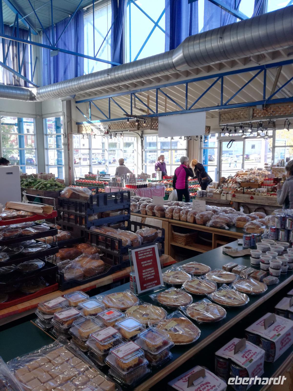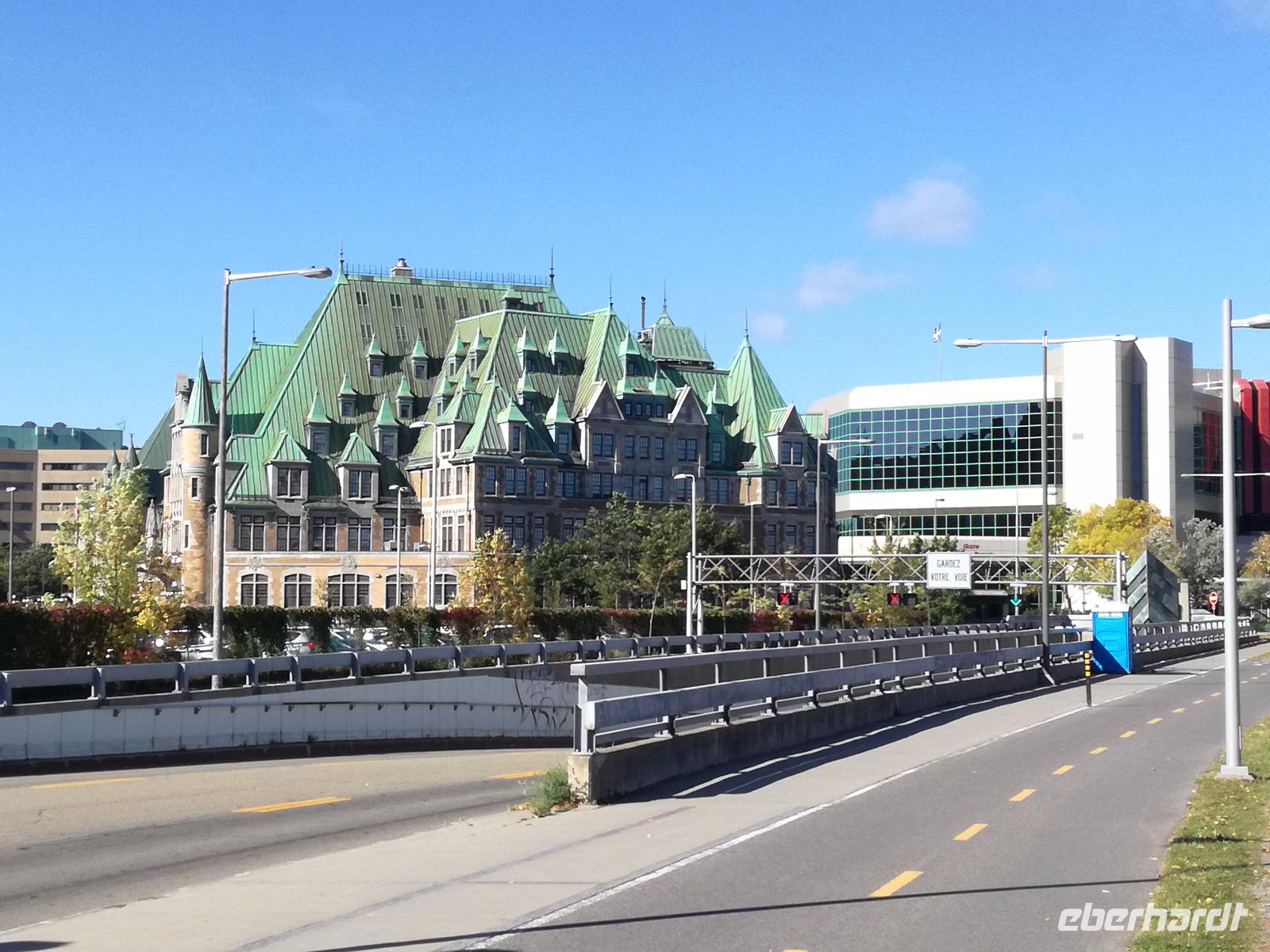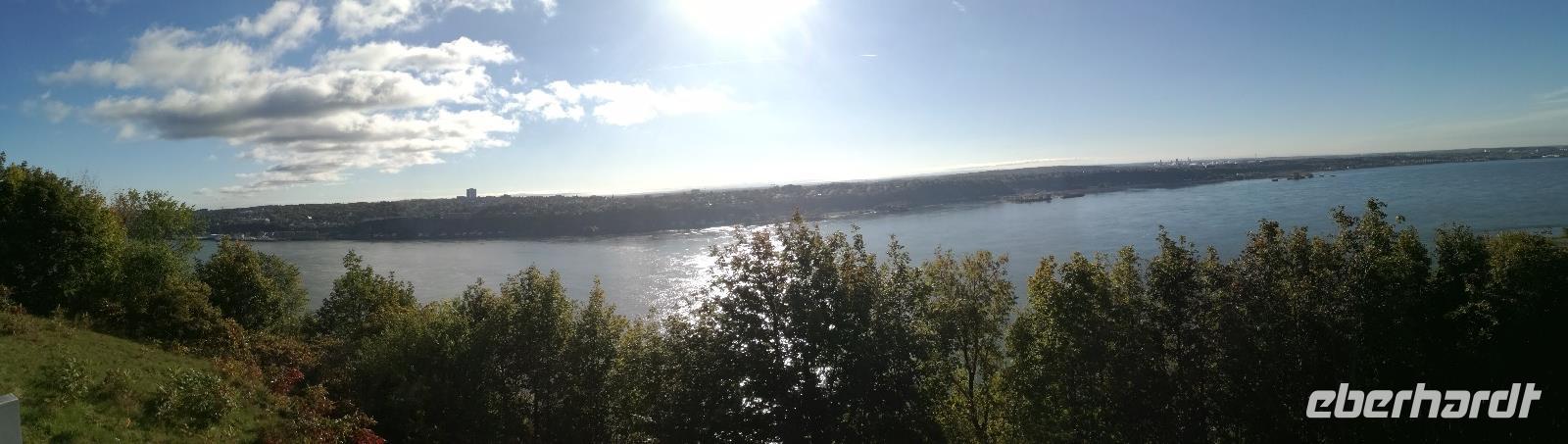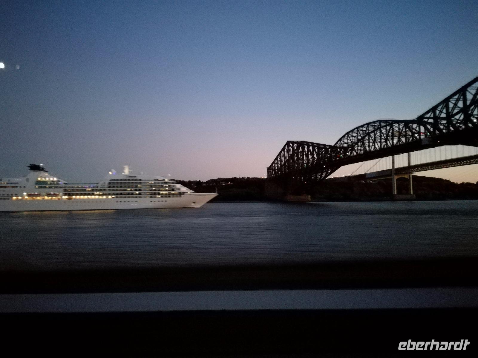 Die zweitgrößte Stadt des Landes stand heute auf unserer Agenda. Nach einem ausführlichen Frühstück lernten wir Celine kennen. Celine lebt schon seit mehreren Jahren in Montreal und wollte uns heute Ihre Stadt bei einer Stadtführung näher bringen. Unser erster Halt war die Basilika Notre Dame. Celine erklärte uns die Geschichte und Besonderheiten der größten Kanadischen Kirche. Eintreten durften wir allerdings noch nicht, da noch eine Messe abgehalten wurde. Wir geduldeten uns etwas und erkundeten erstmal zu Fuß die Altstadt und schlenderten bis zum Rathaus von Montreal. Unser nächster Halt war die Unterstadt Ville Souterraine, wo wir gemeinsam durch schlendern konnten. Celine zeigt uns Fotos während der Bauarbeiten und wir waren sehr beeindruckt über dieses Großprojekt. Dort stiegen wir wieder in unseren Bus und fuhren über die Insel St. Helene über das ehemalige Expo Gelände. Heutzutage beinhaltet der ehemalige Pavillon der USA eine Ausstellung zur Biosphäre der 5 Großen Seen und des St. Lorenz Stroms. Nach einem Fotostopp auf der Insel mit Blick auf die Stadt und dem Hafengelände stiegen wir wieder in den Bus. Den nächsten Halt machten wir am Aussichtspunkt Mount Royal. Bei wunderschönem Wetter konnten wir die Großstadt erblicken und erkannten in der Ferne die Skisprungschanze der Stadt Montreal. Im Anschluss fuhren wir durch das Hafengebiet zurück ins Stadtzentrum. Nachdem wir uns von unserer tollen Stadtführerin Celine verabschiedet hatten, erhielten wir etwas Zeit zum Bummeln oder zum Mittagessen. Nach der Pause trafen wir uns wieder bei der Basilika Notre Dame. Da die Messe beendet war, konnten wir auch die Basilika von innen begutachten. Die 1829 erbaute Basilika ist das bedeutendste Wahrzeichen der Stadt und die größte Kirche des Landes. Neben bezaubernden Holzschnitzereien von Victor Bourgeau, bestaunten wir auch den beeindruckenden Altar, der im Jahr 1982 von Papst Johannes Paul II in den Status Basilika Minor berufenen Kathedrale. Doch nun war es Zeit dieser schönen Stadt den Rücken zu kehren. Doch zuvor fuhren wir noch zum Olympia Gelände und machten einen Fotostopp bei der 1939 erbauten Olympiaschanze, wo sich einst Helmut Recknagel 1960 die olympische Goldmedaille sicherte. Anschließend fuhren wir in Richtung Nordosten in die Stadt Quebec. Nachdem wir im Hotel einchecken konnten, brachen wir abends in Richtung Altstadt von Quebec auf. Kurz konnten wir die Altstadt im Abendlicht kennenlernen. Die kleinen Gassen waren sehr schön geschmückt und das Fairmont Hotel grandios beleuchtet. Im Restaurant Cote á Cotes Resto nahmen wir unser leckeres Abendessen ein und ließen unseren ersten Tag in Kanada ausklingen.