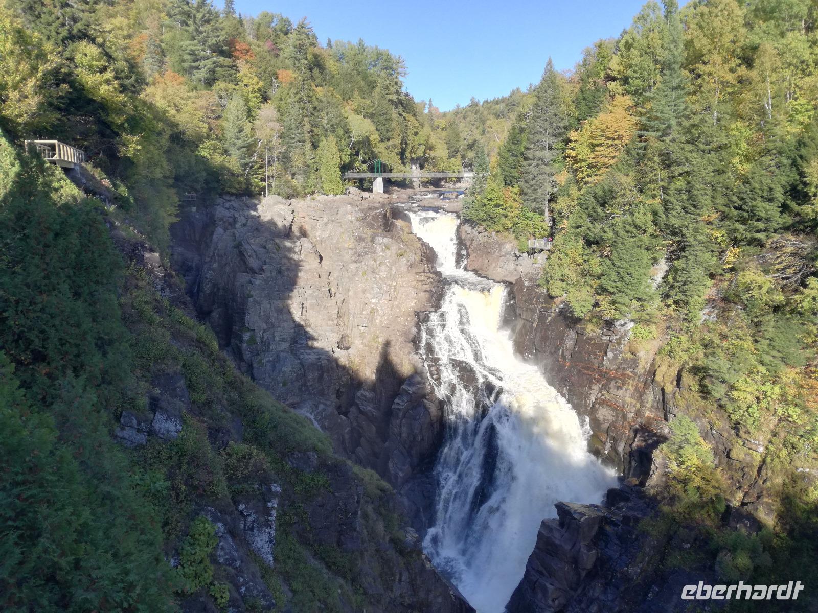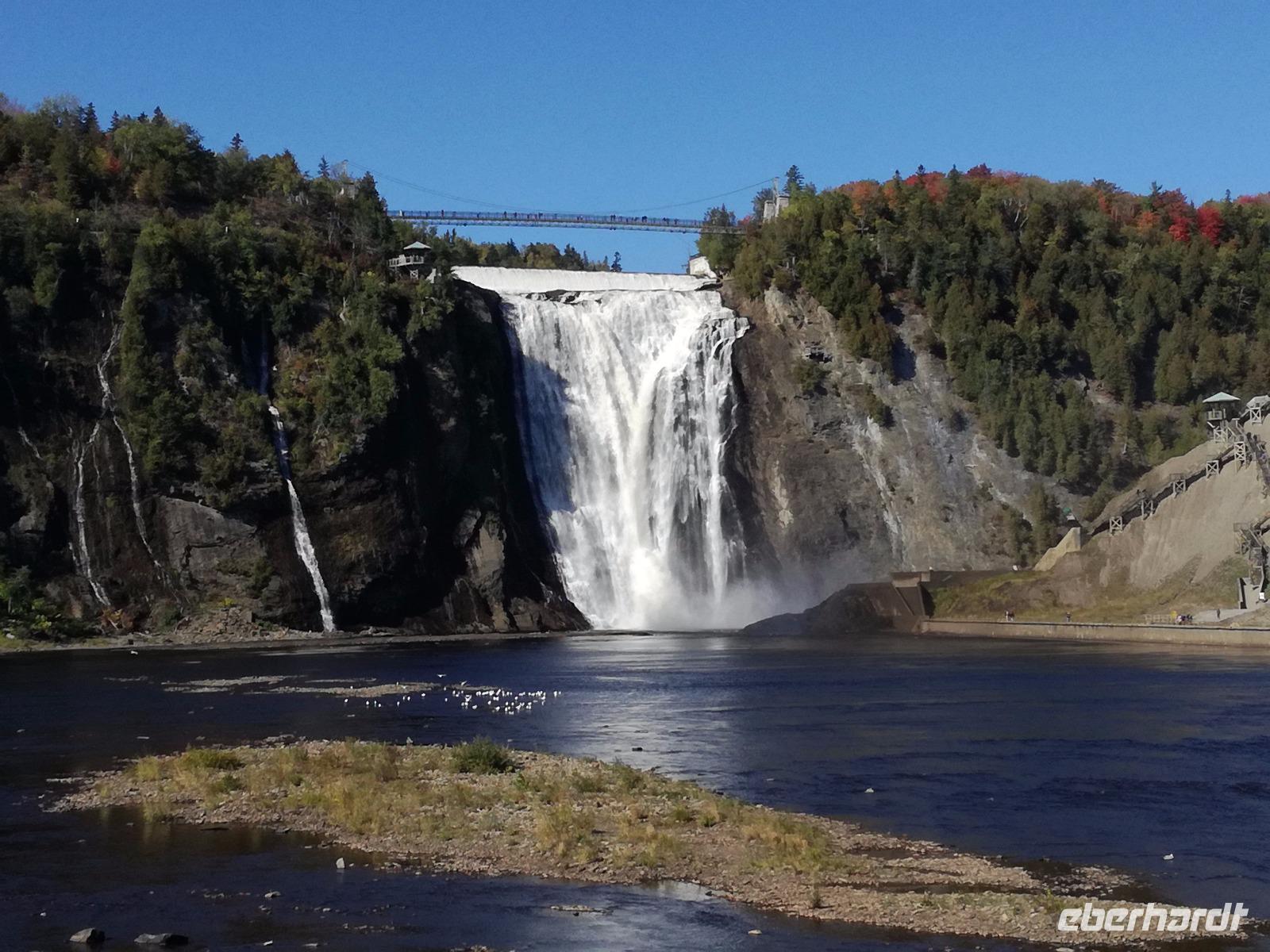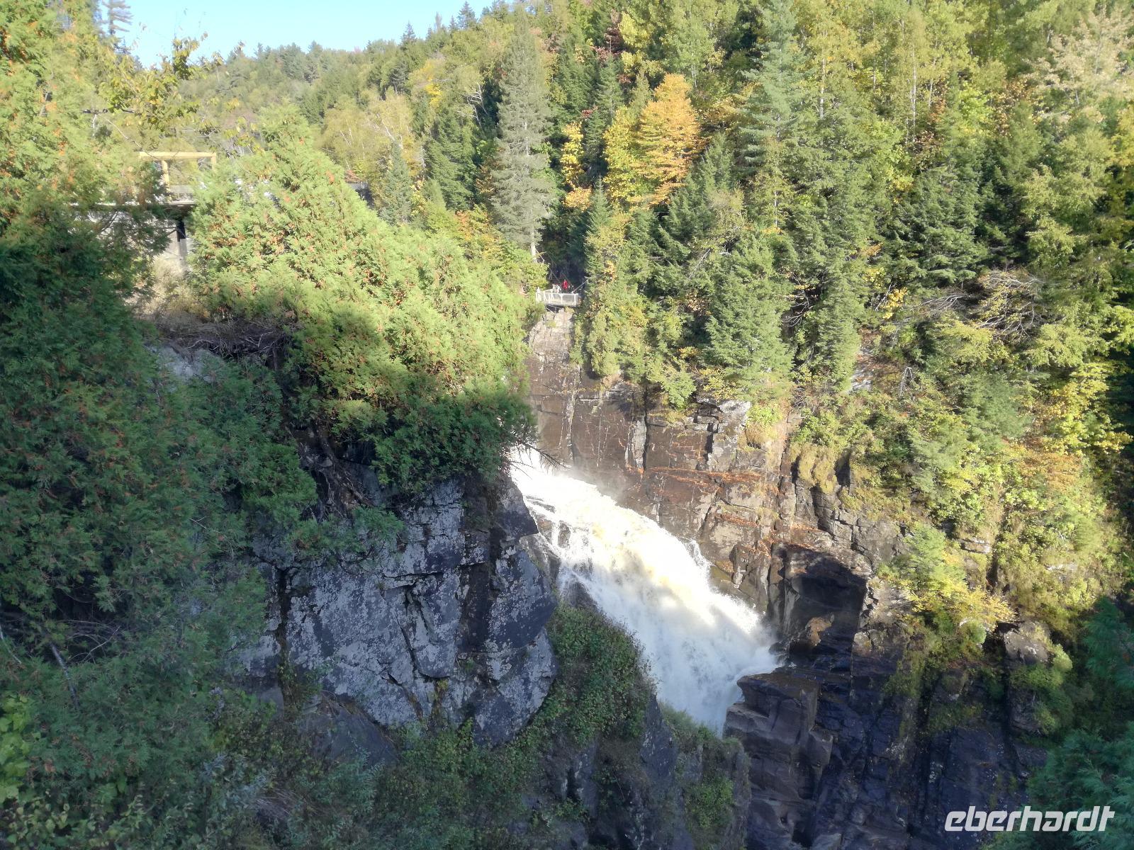 Nach einen gemeinsamen Frühstück fuhren wir in die entzückende Stadt Quebec. Am Manege Millitaire trafen wir unsere Stadtführerin Dorle. Neben dem Manege Millitaire liegt der Parc Bastion de la Reine. Ganz in der Nähe der Zitadelle fand die entscheidende Schlacht zwischen den Engländern und Franzosen statt. Diese Schlacht, in der die beide Generäle starben, dauernde allerdings nur ca. 20 Minuten und war der Ende der Schlacht um Quebec. Bei einem schönen Fotostopp lernten wir die Stadt von oben kennen, ehe wir uns in Richtung untere Altstadt begaben. Bei einem Spaziergang durch die Gasse lernten wir einiges über die Geschichte der Stadt und bewunderten die fantastischen Wandmalereien und das Chateau Frontenac, das hoch oben über die Stadt thront. Wir beschlossen nicht die steile Halsbrechertreppe zu laufen, sondern mit dem Bus weiterzufahren. Den Namen verdankt die Treppe seinen schmalen Stufen, auf der früher die Rinder leicht stolperten und sich den Hals brachen. Weiter führte uns unsere Route durch den Regierungsbezirk bis zur Markthalle. Hier schlenderten wir hindurch und versorgten uns mit leckeren Obst von der Ile d´Orleans. In der oberen Altstadt angekommen begann unsere Freizeit. Einige Gäste spazierten über die Terrasse Dufferin und besuchten das Chateau Frontenac, das mittlerweile zur Fairmont Gruppe gehört. Andere hingegen nutzen die freie Zeit für ein leckeres Mittagessen und einen Bummel durch die obere Altstadt und der Kunstpassage. Nach dem längeren Aufenthalt in Quebec fuhren wir entlang am St. Lorenz-Strom zu den Montmorency Wasserfällen. Beim im normannischen Stil erbauten Bellanger-Girardin-Haus verließen wir unseren Bus. Wir spazierten bis zu den Wasserfällen und erhielten einen wunderschönen Blick über das Tal bis zum St. Lorenz Strom und auf den Wasserfall, der sogar 30 Meter höher als die Niagara-Fälle ist. Nach dem kurzen Spaziergang am Wasserfall, führte uns unsere Route in den berühmten Wallfahrtsort Beaupre. Dort besichtigten wir die bekannte Kathedrale Sainte-Anne-de-Beaupre. Jährlich machen hier ca. eine halbe Millionen Pilger Halt, um den bedeutesten Wallfahrtsort Nordamerikas zu besuchen. Die Basilika wurde 1932 neu aufgebaut, nachdem sie 10 Jahre vorher durch ein Feuer zerstört wurde. Unser Abendessen soll heute in einer Sugar Shack Hütte stattfinden. Doch bevor wir die Hütte erreichten, machten wir einen Stopp am wunderschön gelegenen Lac Beauport. Bei kalten 2 Grad entdecken wir eine Wassersportlerin im See und bestaunten die zahlreichen Villen rund um den See. Bei der Ahornsirup-Hütte angelangt, begann Magarith uns einiges Wissenswertes über die Gewinnung und Verarbeitung des Ahornsirups zu berichten. Im Anschluss durften wir die leckeren Köstlichkeiten, die mit Ahornsirup verfeinert wurden bei Live-Musik probieren und den Abend in Ruhe ausklingen lassen.