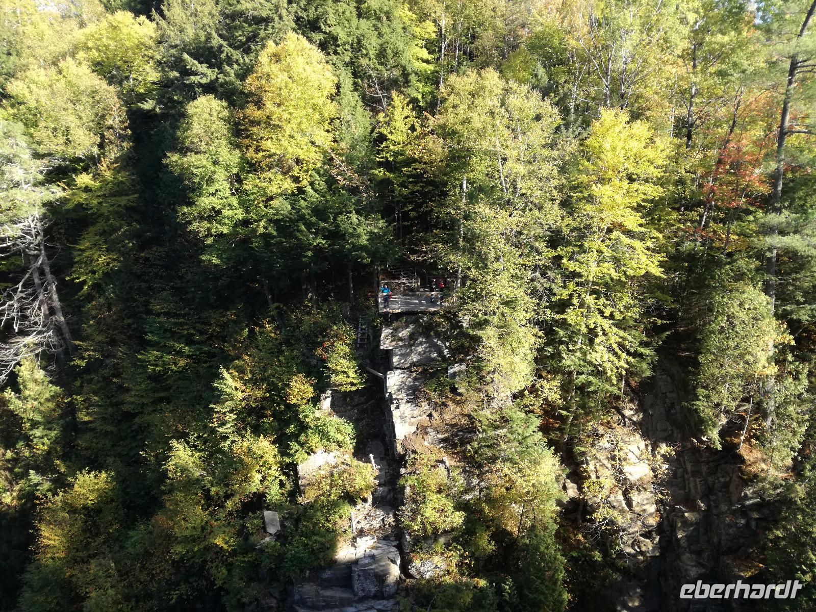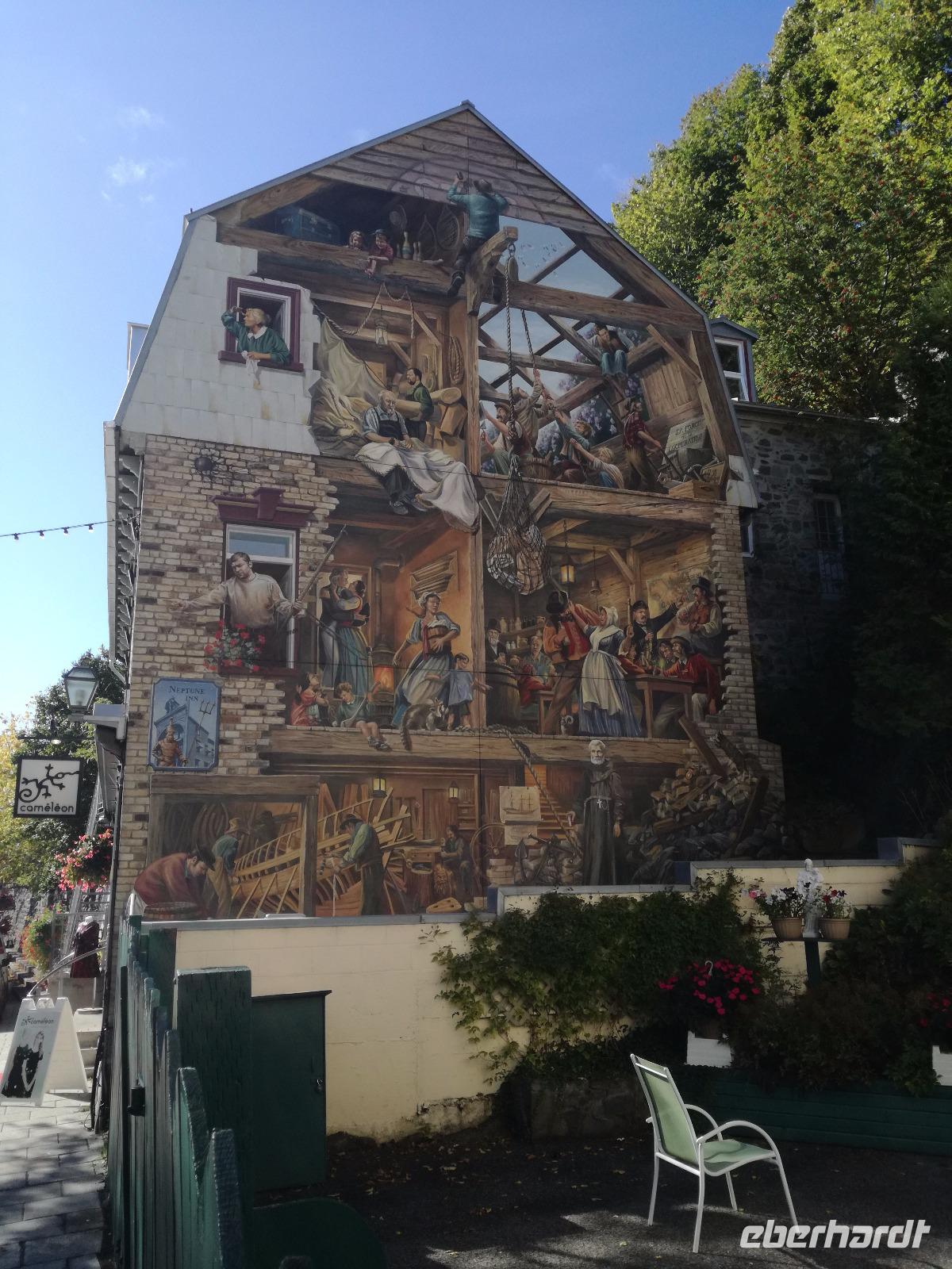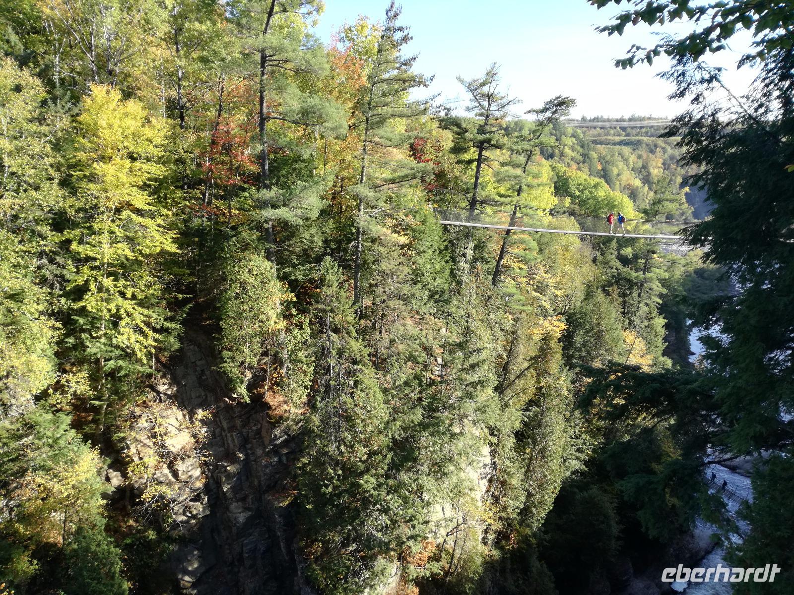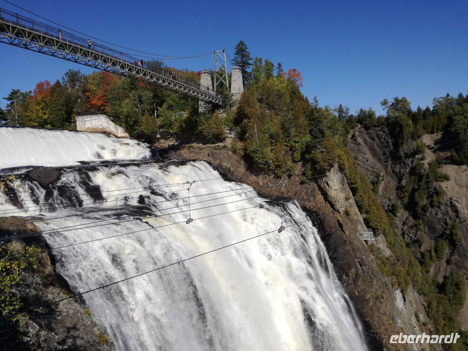 Nach einen gemeinsamen Frühstück fuhren wir in die entzückende Stadt Quebec. Am Manege Millitaire trafen wir unsere Stadtführerin Dorle. Neben dem Manege Millitaire liegt der Parc Bastion de la Reine. Ganz in der Nähe der Zitadelle fand die entscheidende Schlacht zwischen den Engländern und Franzosen statt. Diese Schlacht, in der die beide Generäle starben, dauernde allerdings nur ca. 20 Minuten und war der Ende der Schlacht um Quebec. Bei einem schönen Fotostopp lernten wir die Stadt von oben kennen, ehe wir uns in Richtung untere Altstadt begaben. Bei einem Spaziergang durch die Gasse lernten wir einiges über die Geschichte der Stadt und bewunderten die fantastischen Wandmalereien und das Chateau Frontenac, das hoch oben über die Stadt thront. Wir beschlossen nicht die steile Halsbrechertreppe zu laufen, sondern mit dem Bus weiterzufahren. Den Namen verdankt die Treppe seinen schmalen Stufen, auf der früher die Rinder leicht stolperten und sich den Hals brachen. Weiter führte uns unsere Route durch den Regierungsbezirk bis zur Markthalle. Hier schlenderten wir hindurch und versorgten uns mit leckeren Obst von der Ile d´Orleans. In der oberen Altstadt angekommen begann unsere Freizeit. Einige Gäste spazierten über die Terrasse Dufferin und besuchten das Chateau Frontenac, das mittlerweile zur Fairmont Gruppe gehört. Andere hingegen nutzen die freie Zeit für ein leckeres Mittagessen und einen Bummel durch die obere Altstadt und der Kunstpassage. Nach dem längeren Aufenthalt in Quebec fuhren wir entlang am St. Lorenz-Strom zu den Montmorency Wasserfällen. Beim im normannischen Stil erbauten Bellanger-Girardin-Haus verließen wir unseren Bus. Wir spazierten bis zu den Wasserfällen und erhielten einen wunderschönen Blick über das Tal bis zum St. Lorenz Strom und auf den Wasserfall, der sogar 30 Meter höher als die Niagara-Fälle ist. Nach dem kurzen Spaziergang am Wasserfall, führte uns unsere Route in den berühmten Wallfahrtsort Beaupre. Dort besichtigten wir die bekannte Kathedrale Sainte-Anne-de-Beaupre. Jährlich machen hier ca. eine halbe Millionen Pilger Halt, um den bedeutesten Wallfahrtsort Nordamerikas zu besuchen. Die Basilika wurde 1932 neu aufgebaut, nachdem sie 10 Jahre vorher durch ein Feuer zerstört wurde. Unser Abendessen soll heute in einer Sugar Shack Hütte stattfinden. Doch bevor wir die Hütte erreichten, machten wir einen Stopp am wunderschön gelegenen Lac Beauport. Bei kalten 2 Grad entdecken wir eine Wassersportlerin im See und bestaunten die zahlreichen Villen rund um den See. Bei der Ahornsirup-Hütte angelangt, begann Magarith uns einiges Wissenswertes über die Gewinnung und Verarbeitung des Ahornsirups zu berichten. Im Anschluss durften wir die leckeren Köstlichkeiten, die mit Ahornsirup verfeinert wurden bei Live-Musik probieren und den Abend in Ruhe ausklingen lassen.