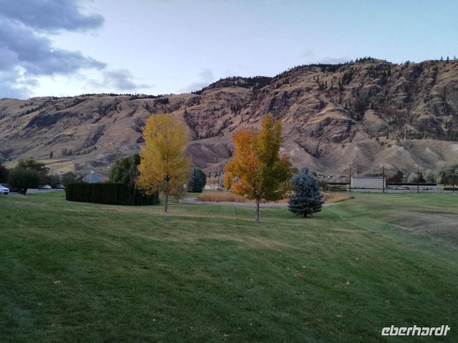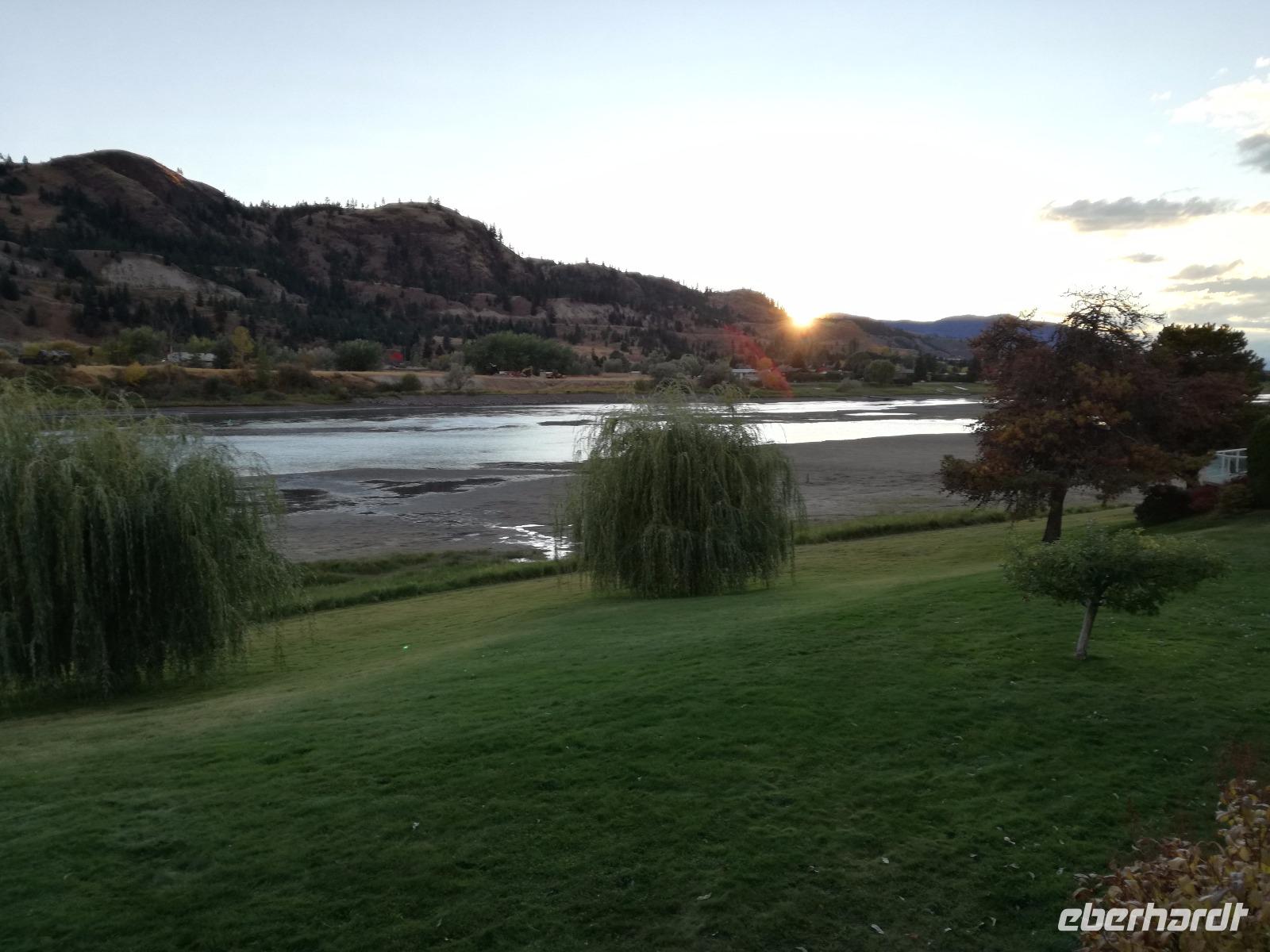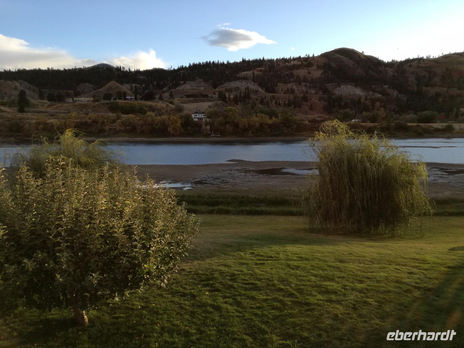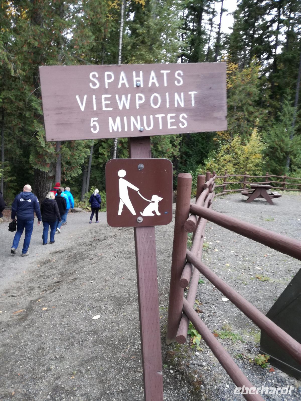 Diesen Morgen hieß es wieder Koffer packen. Wir ließen unsere liebgewonnenen Bungalows hinter uns und fuhren weiter durch den Jasper Nationalpark. Weiterhin auf der Suche nach einem Bären und einer Bärenfamilie. Nach einer kurzen Fahrzeit verließen wir den Jasper Nationalpark und bogen auf die ehemalige Goldgräberroute Yellowhead Parkway. Unser erster Stopp erfolgte kurz vorm Mount Robson Park am Portal Lake an der Grenze der Provinz Alberta und British Columbia. Diese Grenze bedeutete zugleich, dass wir die Uhr um eine weitere Stunde zurück stellen mussten. Leider regnete es hier zum ersten Mal ein wenig, sodass wir schnell zum Mount Robson Park Center weiterfuhren. Leider spielte uns hier Petrus einen Streich und wir konnten den höchsten Berg der kanadischen Rocky Mountains nur erahnen. Nach einer kurzen Pause fuhren wir weiter und auch das Wetter wurde besser. Wir stoppten am Moose Lake für eine weitere kleine Pause bei trockenen Wetter. Langsam wurden wir auch schon wieder hungrig. Bei Clearwater legten wir unsere Mittagpause ein und nahmen wohlverdient unser leckeres Steak in Angriff. Nach dem Essen war ein Verdauungsspaziergang von Nöten. Dieser erfolgte am Spahats Viewport. Von hier oben hatte man einen fantastischen Ausblick auf einem kleinen Wasserfall und die unglaublich Tiefe und Weite der Schlucht. Gegen Nachmittag erreichten wir die Stadt Kamloops. 1812 wurde die Stadt als Handelsposten der Hudson´s Bay Company gegründet. Unser Hotel lag etwas außerhalb der Stadt. Dafür hatte die Ranch 3 Lamas, Schildkröten, Pferde und einen angrenzenden Golfplatz. Nach einem kleinen Snack zum Abend gab es eine kleine Überraschung. Bei einem Lagerfeuer aßen wir gegrillte Marshmallows, Kekse und Schokolade und probierten den heimischen Wein und Whisky mit Ahornsirup. Nach einem gemütlichen Abend gingen wir müde und erschöpft auf unsere Zimmer.