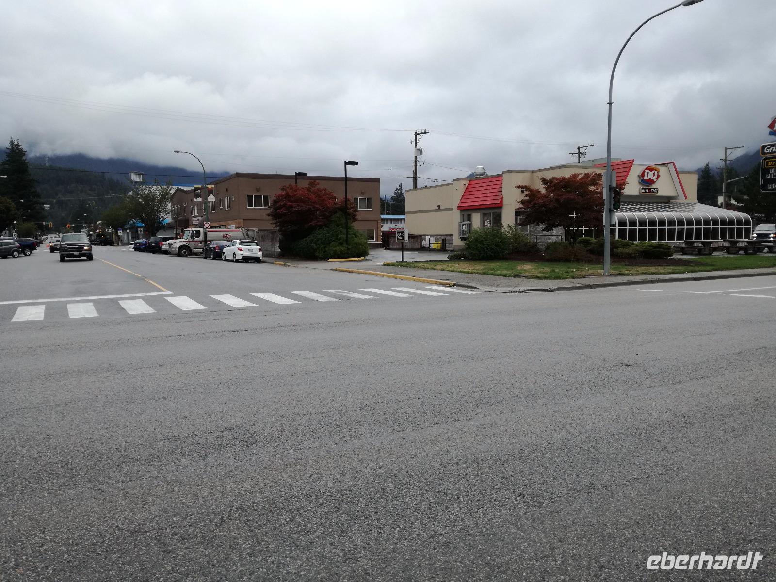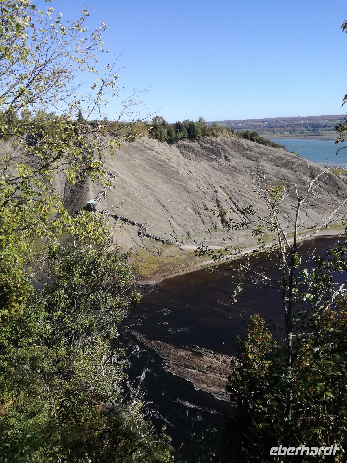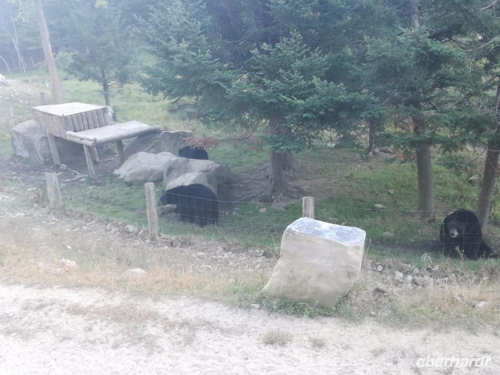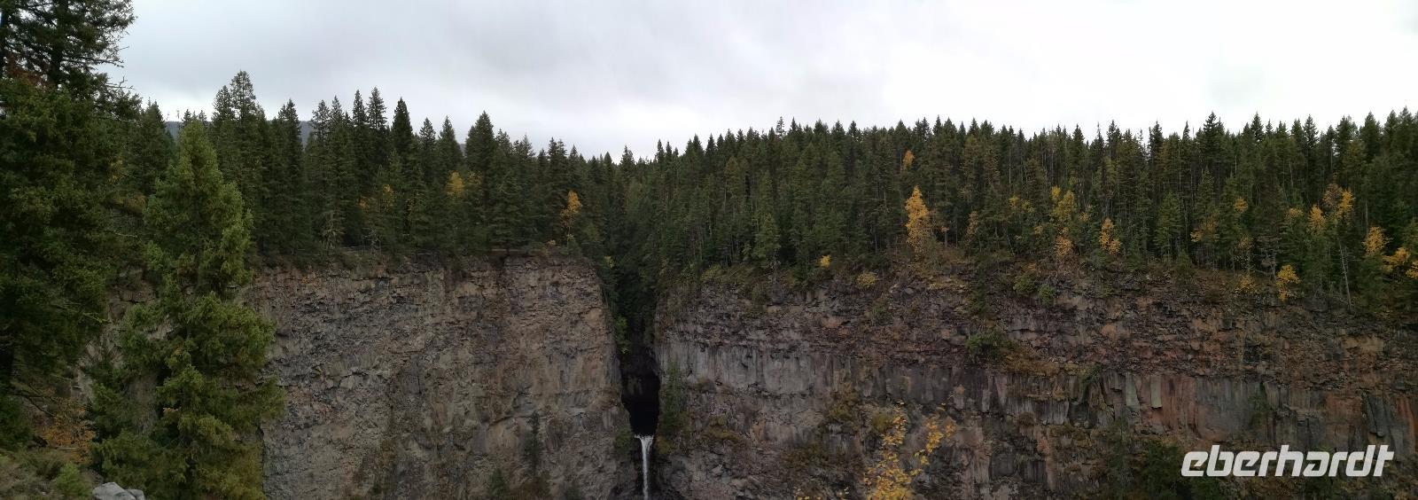 Diesen Morgen hieß es wieder Koffer packen. Wir ließen unsere liebgewonnenen Bungalows hinter uns und fuhren weiter durch den Jasper Nationalpark. Weiterhin auf der Suche nach einem Bären und einer Bärenfamilie. Nach einer kurzen Fahrzeit verließen wir den Jasper Nationalpark und bogen auf die ehemalige Goldgräberroute Yellowhead Parkway. Unser erster Stopp erfolgte kurz vorm Mount Robson Park am Portal Lake an der Grenze der Provinz Alberta und British Columbia. Diese Grenze bedeutete zugleich, dass wir die Uhr um eine weitere Stunde zurück stellen mussten. Leider regnete es hier zum ersten Mal ein wenig, sodass wir schnell zum Mount Robson Park Center weiterfuhren. Leider spielte uns hier Petrus einen Streich und wir konnten den höchsten Berg der kanadischen Rocky Mountains nur erahnen. Nach einer kurzen Pause fuhren wir weiter und auch das Wetter wurde besser. Wir stoppten am Moose Lake für eine weitere kleine Pause bei trockenen Wetter. Langsam wurden wir auch schon wieder hungrig. Bei Clearwater legten wir unsere Mittagpause ein und nahmen wohlverdient unser leckeres Steak in Angriff. Nach dem Essen war ein Verdauungsspaziergang von Nöten. Dieser erfolgte am Spahats Viewport. Von hier oben hatte man einen fantastischen Ausblick auf einem kleinen Wasserfall und die unglaublich Tiefe und Weite der Schlucht. Gegen Nachmittag erreichten wir die Stadt Kamloops. 1812 wurde die Stadt als Handelsposten der Hudson´s Bay Company gegründet. Unser Hotel lag etwas außerhalb der Stadt. Dafür hatte die Ranch 3 Lamas, Schildkröten, Pferde und einen angrenzenden Golfplatz. Nach einem kleinen Snack zum Abend gab es eine kleine Überraschung. Bei einem Lagerfeuer aßen wir gegrillte Marshmallows, Kekse und Schokolade und probierten den heimischen Wein und Whisky mit Ahornsirup. Nach einem gemütlichen Abend gingen wir müde und erschöpft auf unsere Zimmer.