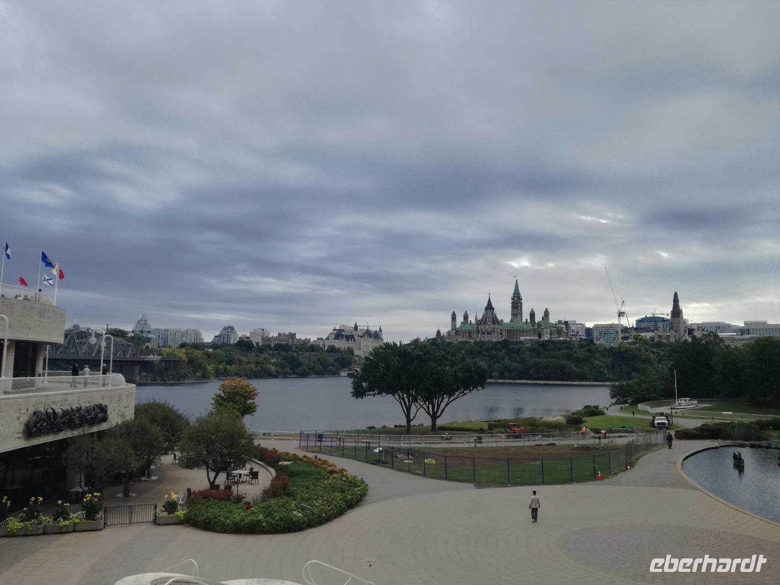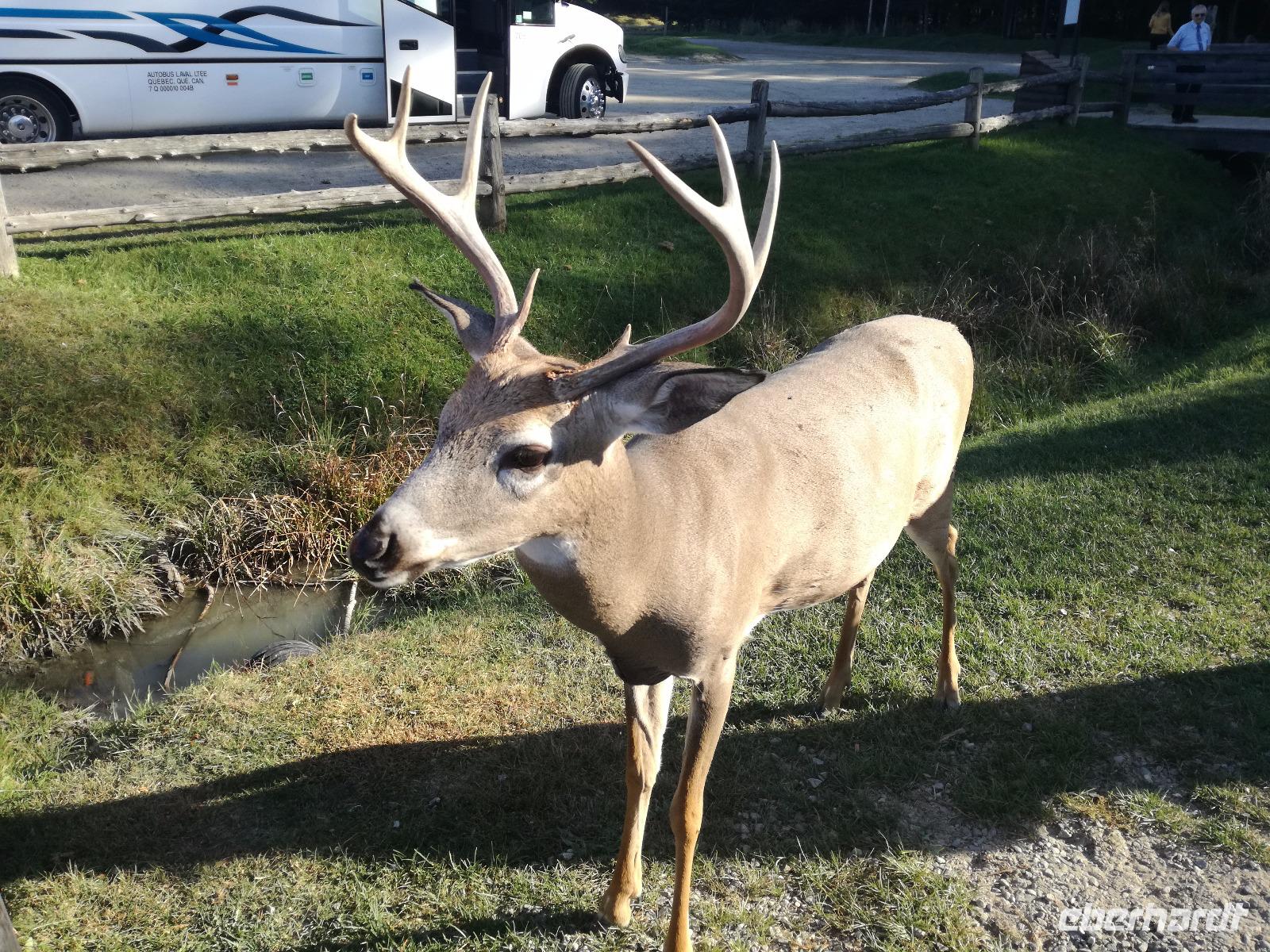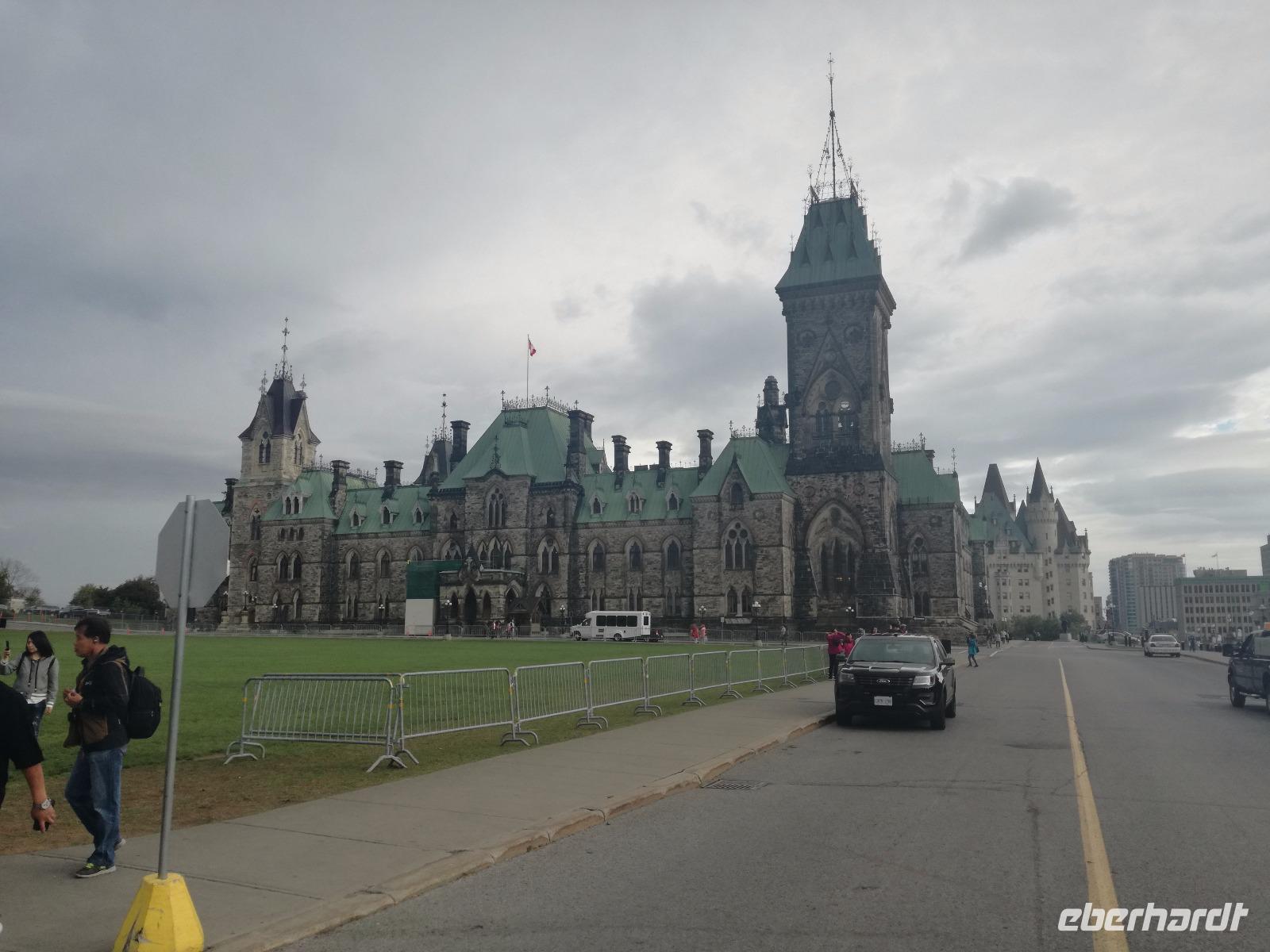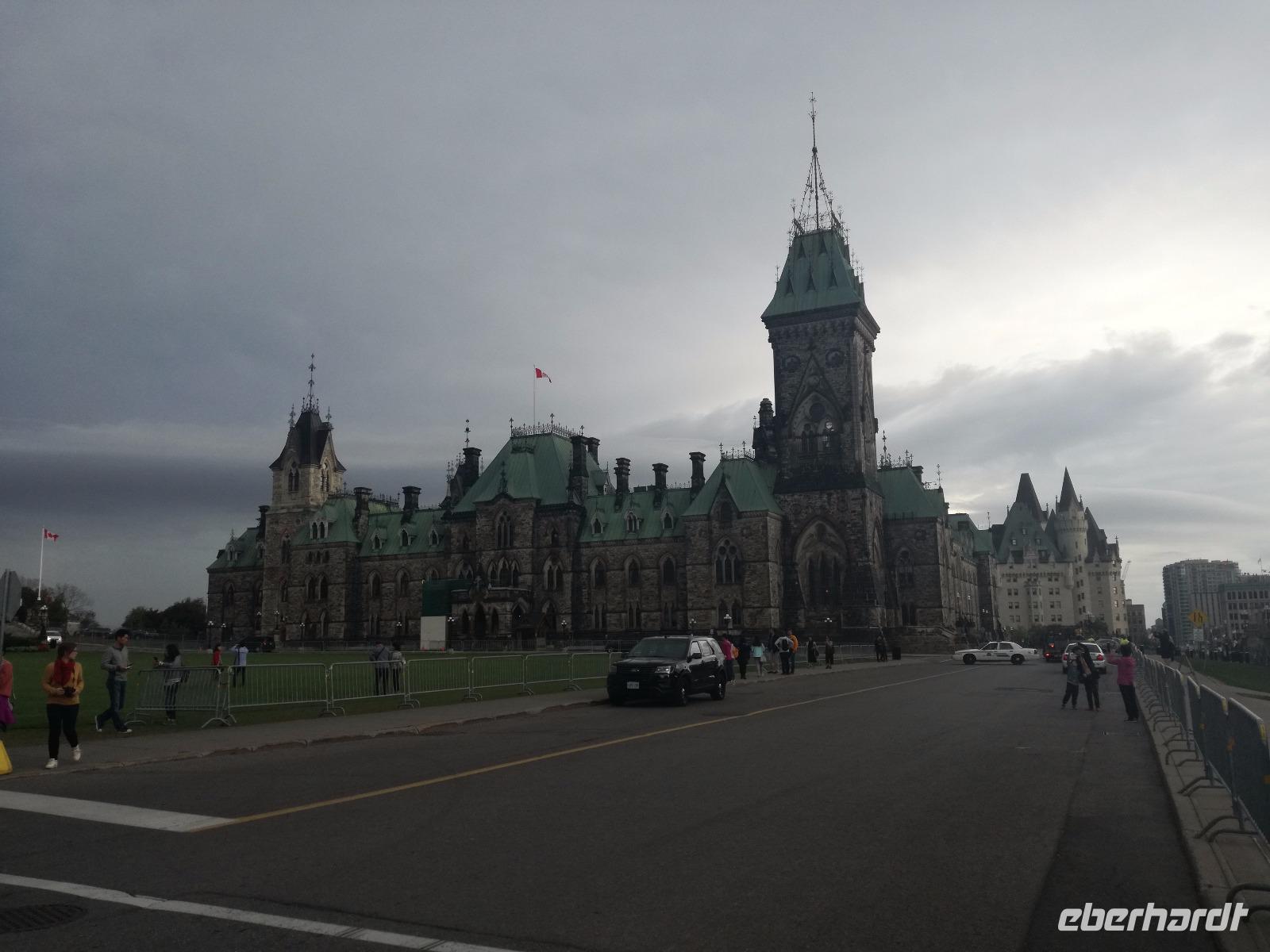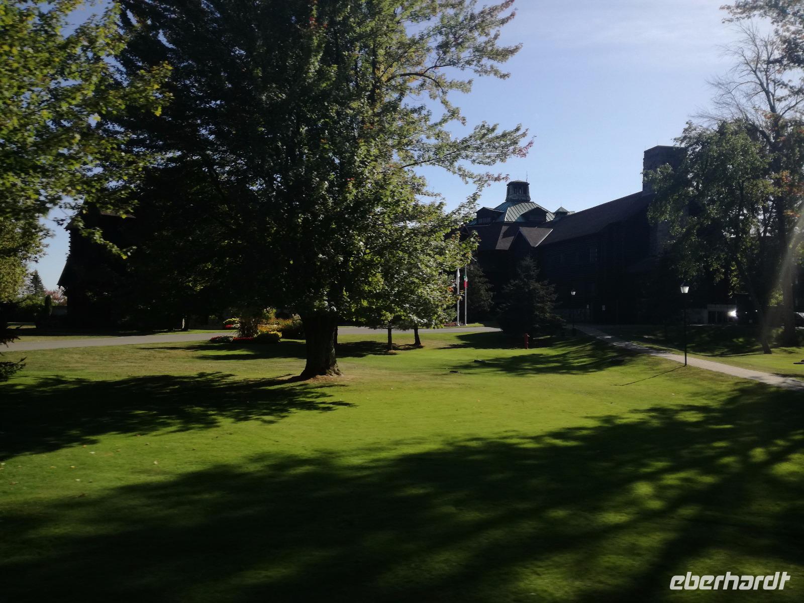 Mit einem leckeren letzten Frühstück in Quebec starteten wir den Tag. Am Morgen war zunächst einmal eine längere Fahrt notwendig. Auf der Fahrt erzählte uns Magarith eine Menge über die hiesige Tierwelt, die wir ja auch am Nachmittag kennenlernen durften. Gegen Mittag erreichten wir das bezaubernde Fairmont Chateau Montebello. Das auf dem über 26 Hektar großen Grundstück erbaute ehemalige Herrenhaus liegt idyllisch am Ottawa Fluss. Früher war das Herrenhaus für die reichen Männer der Gegend als Rückzugsort erbaut. Heute bietet es als Hotel einen Rückzugsort für Besucher aller Welt. Nach einem sehr schmackhaften Mittagessen blieb uns noch ein wenig Zeit, um das Grundstück zu erkunden. Nach der tollen Mittagspause wollten wir endlich die kanadische Tierwelt entdecken. Im Omega Nationalpark besorgten wir uns zunächst ein paar Süßigkeiten für die Tiere. Als erstes kreuzten niedliche Wildschweine unseren Weg. Leider durften wir diese noch nicht füttern. Kurze Zeit später duften wir kurz die Türen unseres Buses aufmachen und die Wapitis am Wegrand mit Möhren füttern. Nach der kleinen Fütterung folgten erneut Wildschweine, Rentiere, Wölfte und Bisons. Besonders die riesigen Bisons flösten uns Respekt ein. Im sogenannten Arktischen Kreis konnten wir anschließend Polarfüchse, Karibus und Moschusochsen sehen, bevor wir in die Fütterungszone gelangten. Hier durften wir wieder Wapitis in freier Wildbahn füttern und streicheln. Ein besonderes Highlight für viele von uns. Nach der Fütterungspause machten wir noch Stopps (allerdings mit geschlossener Tür) bei den Coyoten, Arktischen Wölfen und Bergziegen. Gegen Ende gelangen wir zum Höhepunkt des Parktes. Im Tal der Bären konnten wir endlich die faszinierenden Riesen des Waldes kennenlernen. Bei einem kleinen Halt am Souvenirshop konnten wir uns noch einige Andenken an den Park und an die Tiere kaufen, bevor wir Richtung Ottawa aufbrachen. Als wir endlich die Hauptstadt erreichten, unternahmen wir eine kleine Orientierungsfahrt und checkten im Hotel ein. Gemeinsam unternahm unsere Gruppe einen kleinen Spaziergang zum Byward Market, wo wir noch einen kleinen Snack zu uns nahmen, bevor wir endgültig zurück ins Hotel gingen.