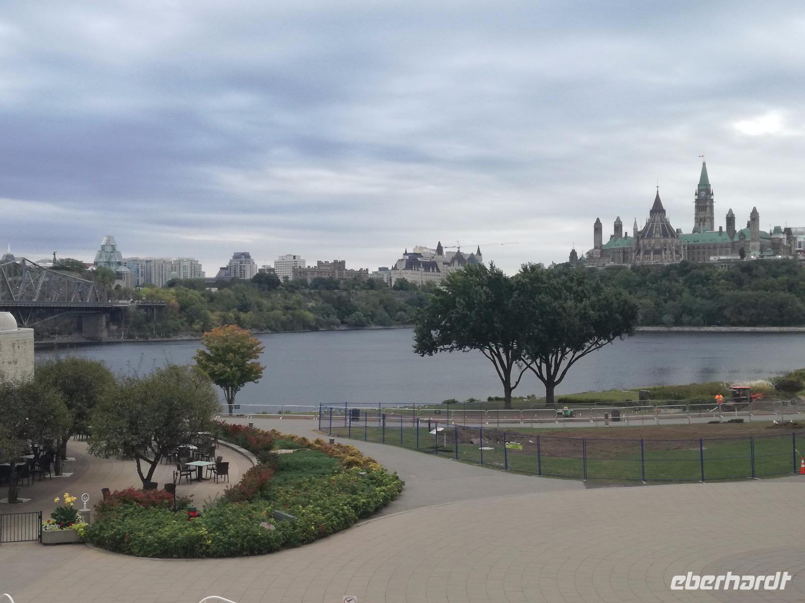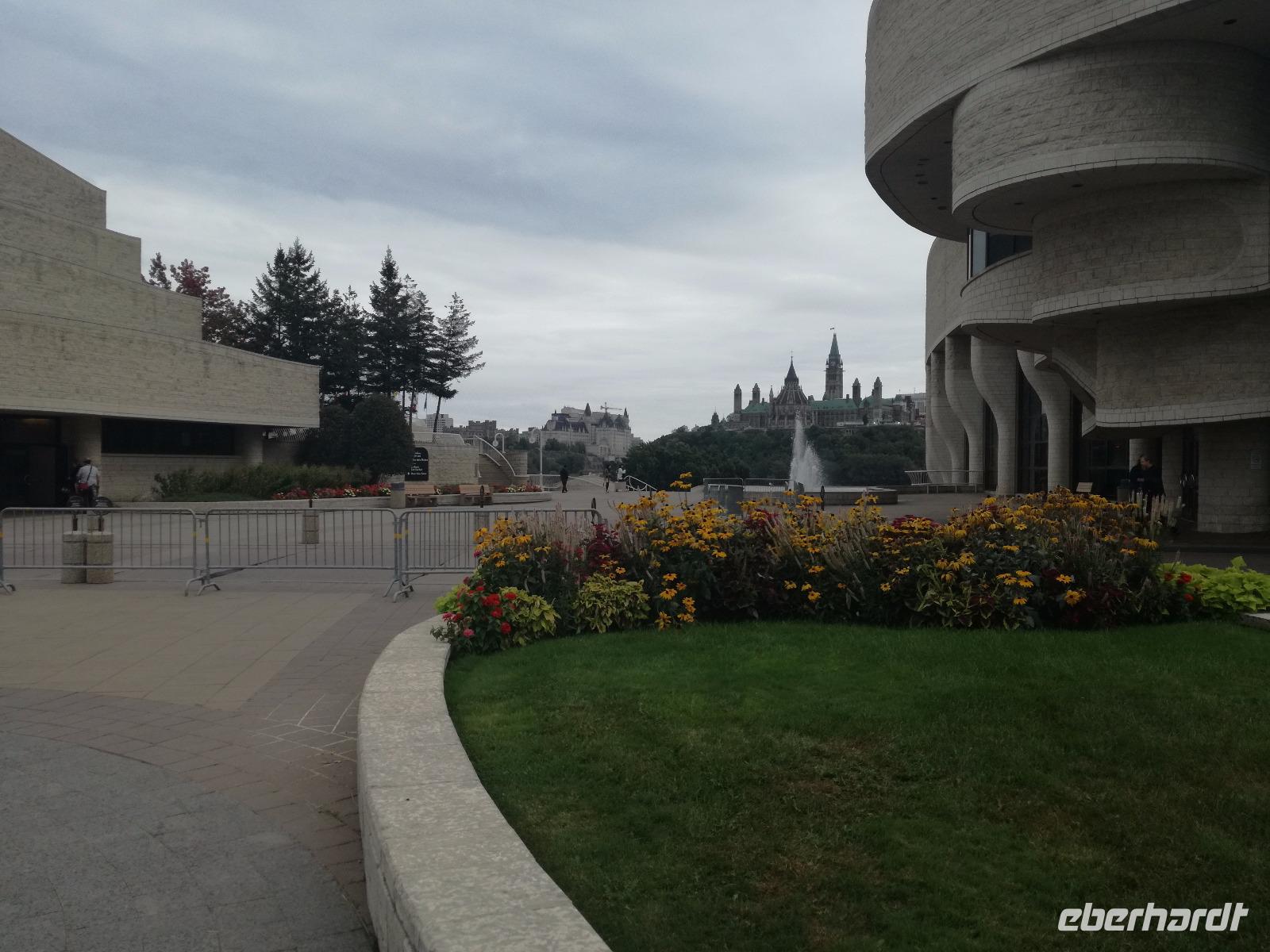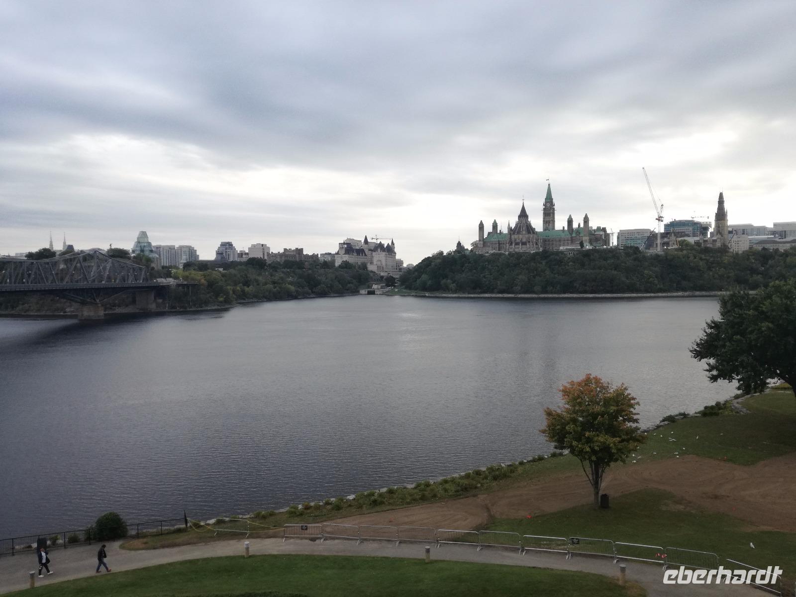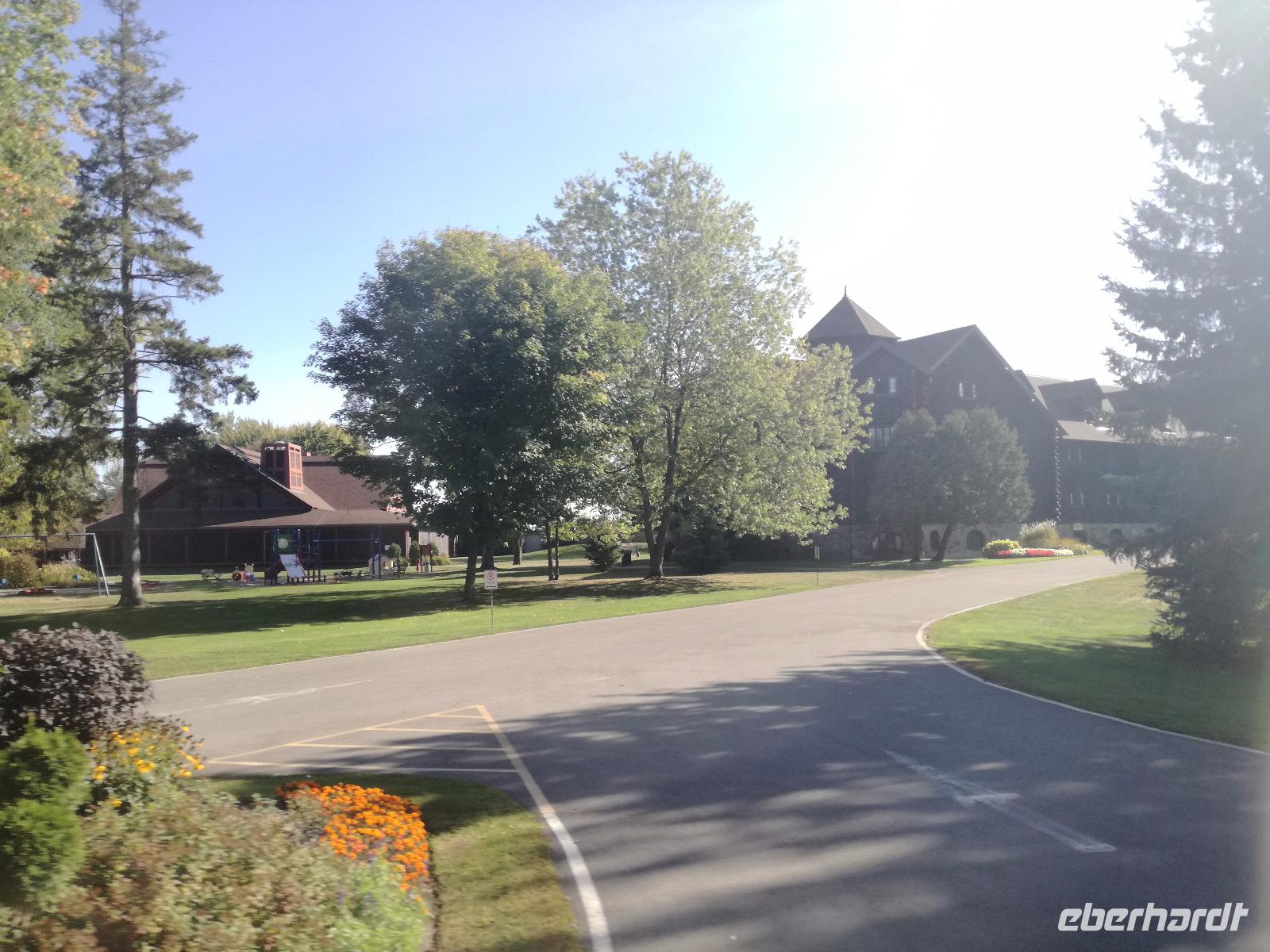 Mit einem leckeren letzten Frühstück in Quebec starteten wir den Tag. Am Morgen war zunächst einmal eine längere Fahrt notwendig. Auf der Fahrt erzählte uns Magarith eine Menge über die hiesige Tierwelt, die wir ja auch am Nachmittag kennenlernen durften. Gegen Mittag erreichten wir das bezaubernde Fairmont Chateau Montebello. Das auf dem über 26 Hektar großen Grundstück erbaute ehemalige Herrenhaus liegt idyllisch am Ottawa Fluss. Früher war das Herrenhaus für die reichen Männer der Gegend als Rückzugsort erbaut. Heute bietet es als Hotel einen Rückzugsort für Besucher aller Welt. Nach einem sehr schmackhaften Mittagessen blieb uns noch ein wenig Zeit, um das Grundstück zu erkunden. Nach der tollen Mittagspause wollten wir endlich die kanadische Tierwelt entdecken. Im Omega Nationalpark besorgten wir uns zunächst ein paar Süßigkeiten für die Tiere. Als erstes kreuzten niedliche Wildschweine unseren Weg. Leider durften wir diese noch nicht füttern. Kurze Zeit später duften wir kurz die Türen unseres Buses aufmachen und die Wapitis am Wegrand mit Möhren füttern. Nach der kleinen Fütterung folgten erneut Wildschweine, Rentiere, Wölfte und Bisons. Besonders die riesigen Bisons flösten uns Respekt ein. Im sogenannten Arktischen Kreis konnten wir anschließend Polarfüchse, Karibus und Moschusochsen sehen, bevor wir in die Fütterungszone gelangten. Hier durften wir wieder Wapitis in freier Wildbahn füttern und streicheln. Ein besonderes Highlight für viele von uns. Nach der Fütterungspause machten wir noch Stopps (allerdings mit geschlossener Tür) bei den Coyoten, Arktischen Wölfen und Bergziegen. Gegen Ende gelangen wir zum Höhepunkt des Parktes. Im Tal der Bären konnten wir endlich die faszinierenden Riesen des Waldes kennenlernen. Bei einem kleinen Halt am Souvenirshop konnten wir uns noch einige Andenken an den Park und an die Tiere kaufen, bevor wir Richtung Ottawa aufbrachen. Als wir endlich die Hauptstadt erreichten, unternahmen wir eine kleine Orientierungsfahrt und checkten im Hotel ein. Gemeinsam unternahm unsere Gruppe einen kleinen Spaziergang zum Byward Market, wo wir noch einen kleinen Snack zu uns nahmen, bevor wir endgültig zurück ins Hotel gingen.