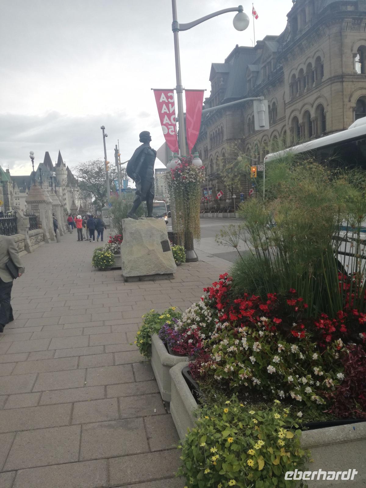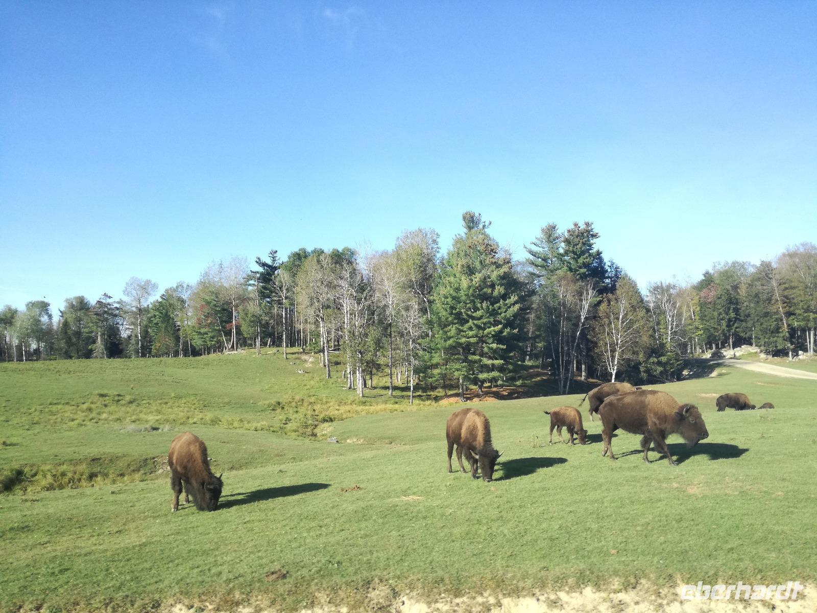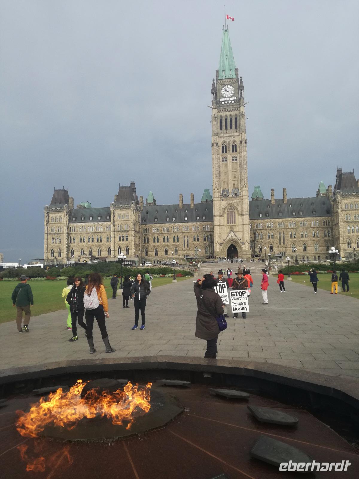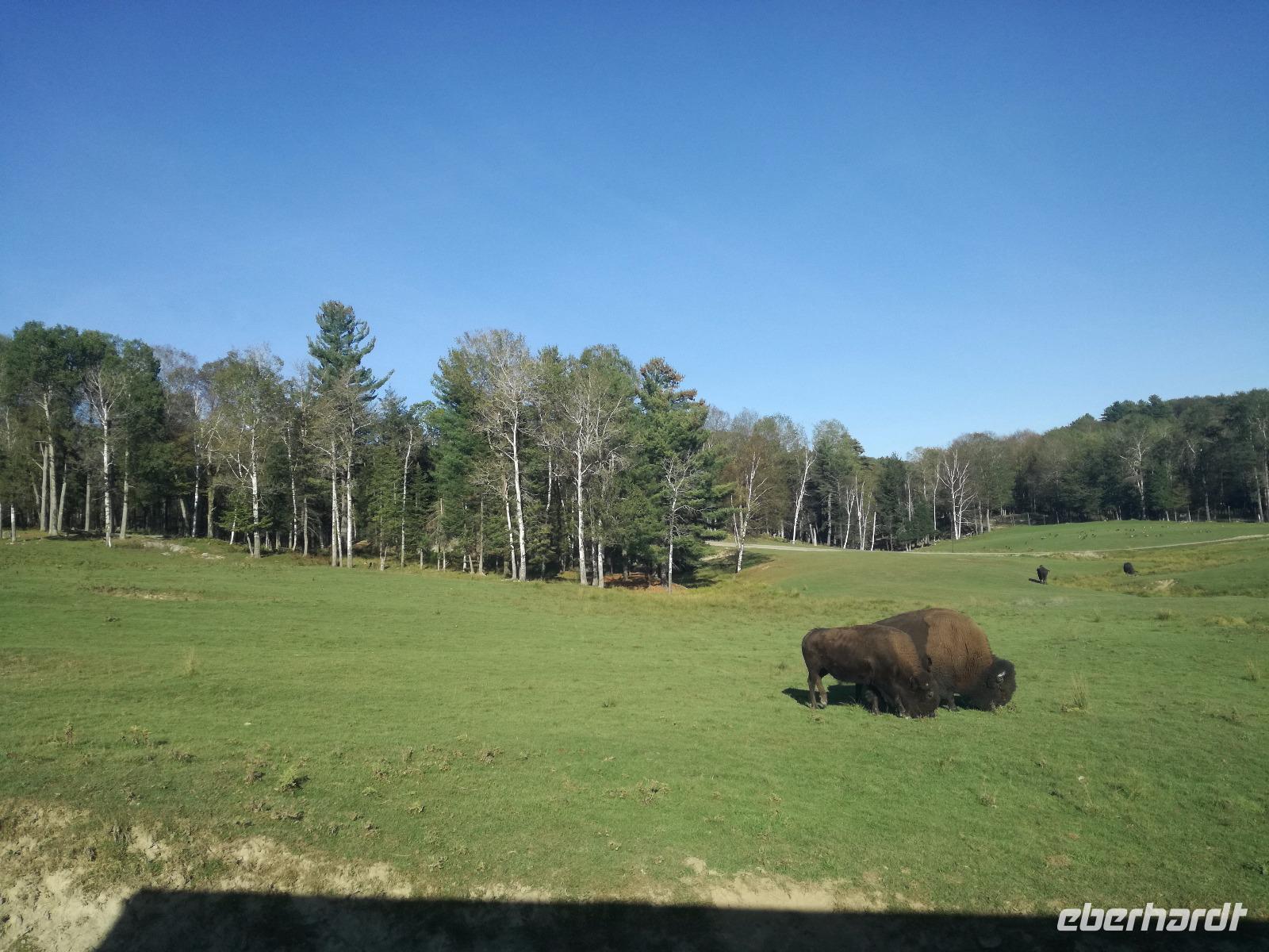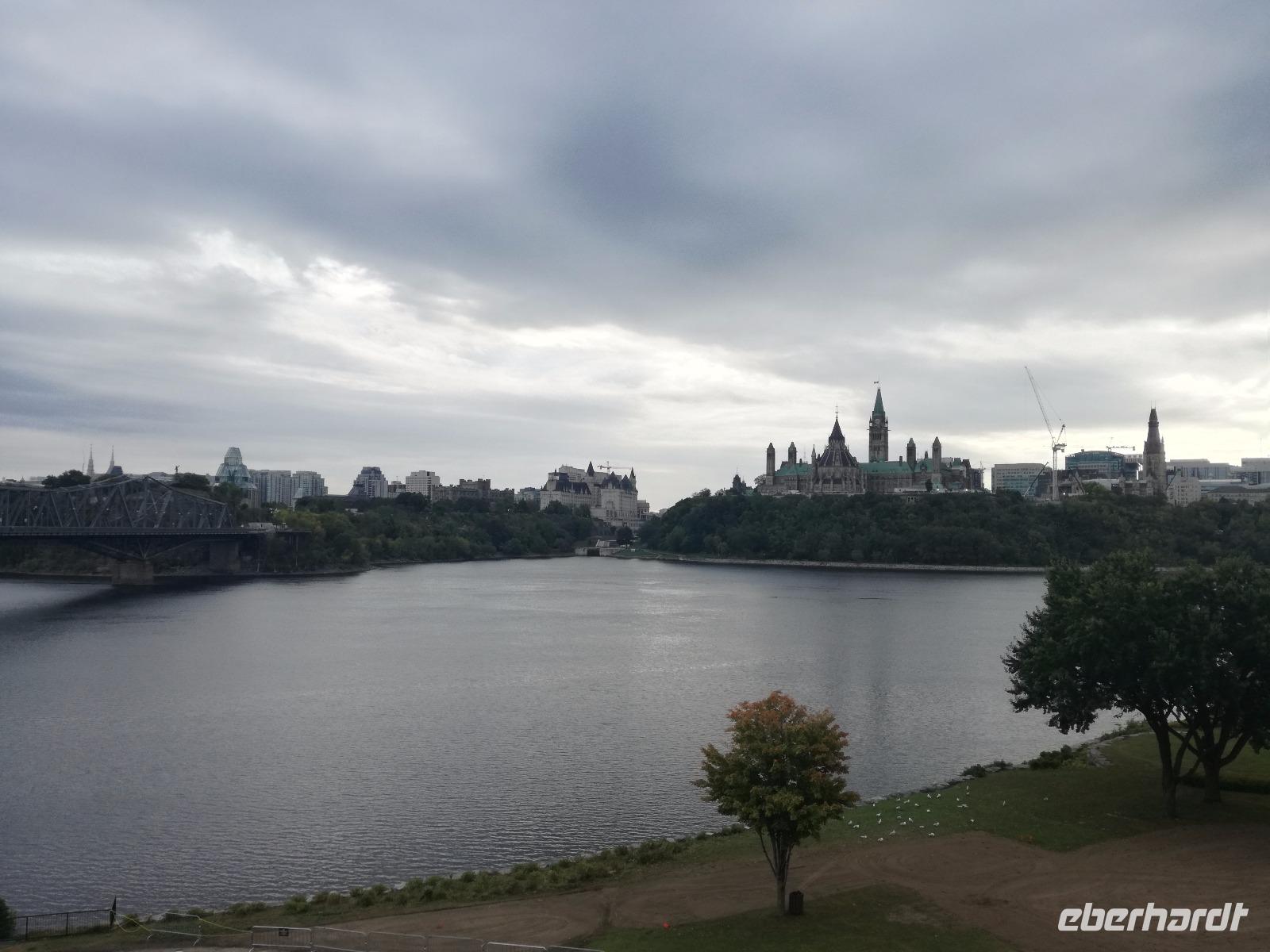 Mit einem leckeren letzten Frühstück in Quebec starteten wir den Tag. Am Morgen war zunächst einmal eine längere Fahrt notwendig. Auf der Fahrt erzählte uns Magarith eine Menge über die hiesige Tierwelt, die wir ja auch am Nachmittag kennenlernen durften. Gegen Mittag erreichten wir das bezaubernde Fairmont Chateau Montebello. Das auf dem über 26 Hektar großen Grundstück erbaute ehemalige Herrenhaus liegt idyllisch am Ottawa Fluss. Früher war das Herrenhaus für die reichen Männer der Gegend als Rückzugsort erbaut. Heute bietet es als Hotel einen Rückzugsort für Besucher aller Welt. Nach einem sehr schmackhaften Mittagessen blieb uns noch ein wenig Zeit, um das Grundstück zu erkunden. Nach der tollen Mittagspause wollten wir endlich die kanadische Tierwelt entdecken. Im Omega Nationalpark besorgten wir uns zunächst ein paar Süßigkeiten für die Tiere. Als erstes kreuzten niedliche Wildschweine unseren Weg. Leider durften wir diese noch nicht füttern. Kurze Zeit später duften wir kurz die Türen unseres Buses aufmachen und die Wapitis am Wegrand mit Möhren füttern. Nach der kleinen Fütterung folgten erneut Wildschweine, Rentiere, Wölfte und Bisons. Besonders die riesigen Bisons flösten uns Respekt ein. Im sogenannten Arktischen Kreis konnten wir anschließend Polarfüchse, Karibus und Moschusochsen sehen, bevor wir in die Fütterungszone gelangten. Hier durften wir wieder Wapitis in freier Wildbahn füttern und streicheln. Ein besonderes Highlight für viele von uns. Nach der Fütterungspause machten wir noch Stopps (allerdings mit geschlossener Tür) bei den Coyoten, Arktischen Wölfen und Bergziegen. Gegen Ende gelangen wir zum Höhepunkt des Parktes. Im Tal der Bären konnten wir endlich die faszinierenden Riesen des Waldes kennenlernen. Bei einem kleinen Halt am Souvenirshop konnten wir uns noch einige Andenken an den Park und an die Tiere kaufen, bevor wir Richtung Ottawa aufbrachen. Als wir endlich die Hauptstadt erreichten, unternahmen wir eine kleine Orientierungsfahrt und checkten im Hotel ein. Gemeinsam unternahm unsere Gruppe einen kleinen Spaziergang zum Byward Market, wo wir noch einen kleinen Snack zu uns nahmen, bevor wir endgültig zurück ins Hotel gingen.